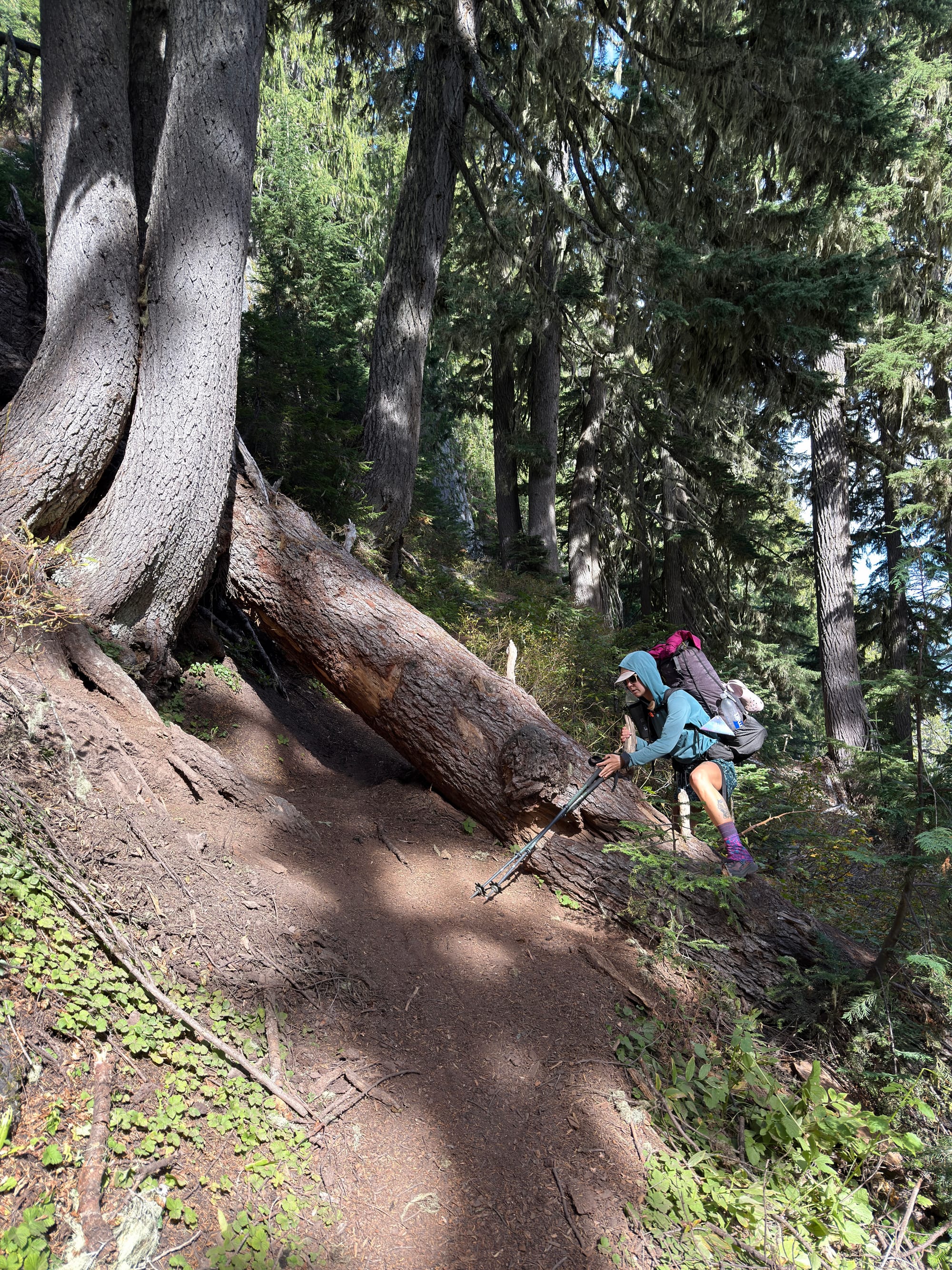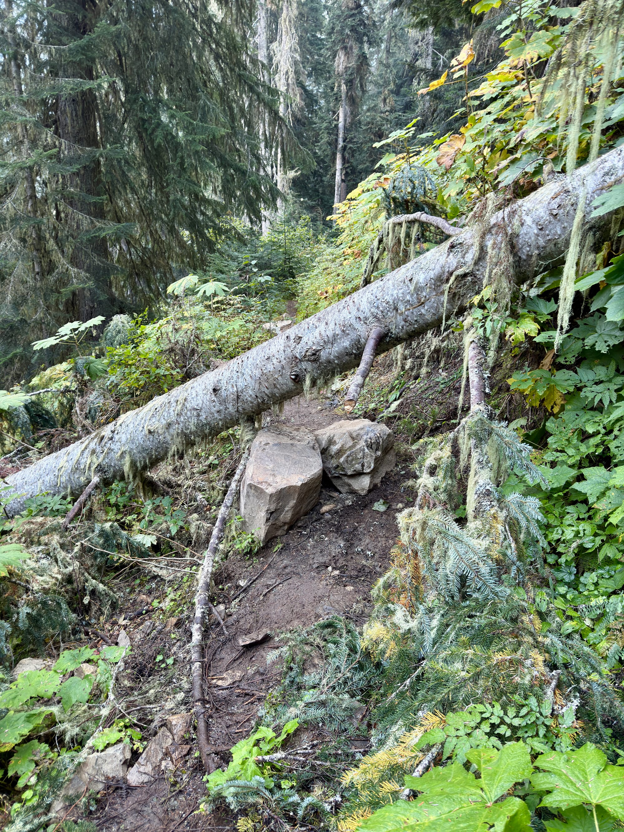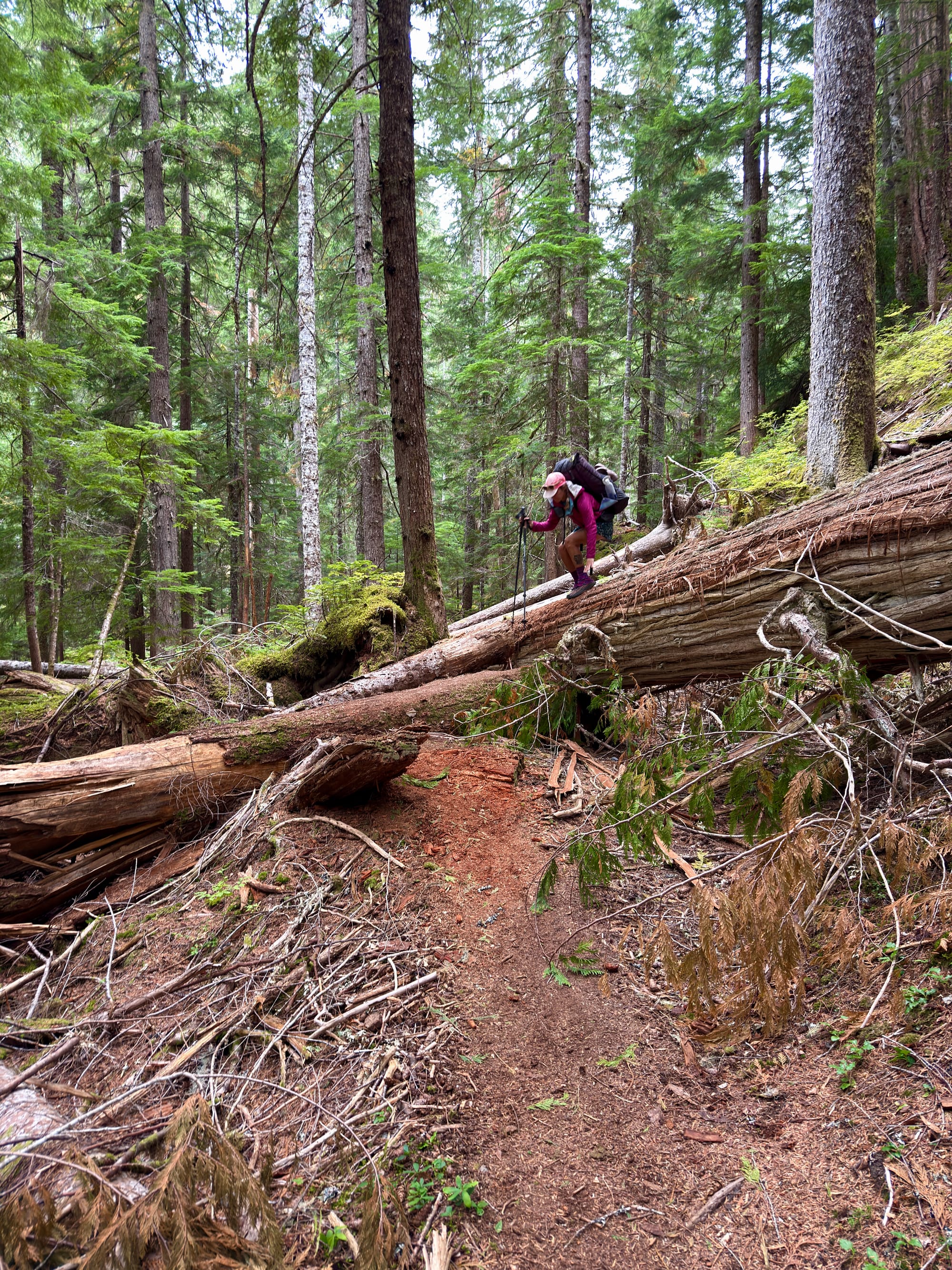 The afternoon heading down towards the Suiattle River was an obstacle course, and probably the second worst stretch of trail we’ve encountered over 2500+ miles.