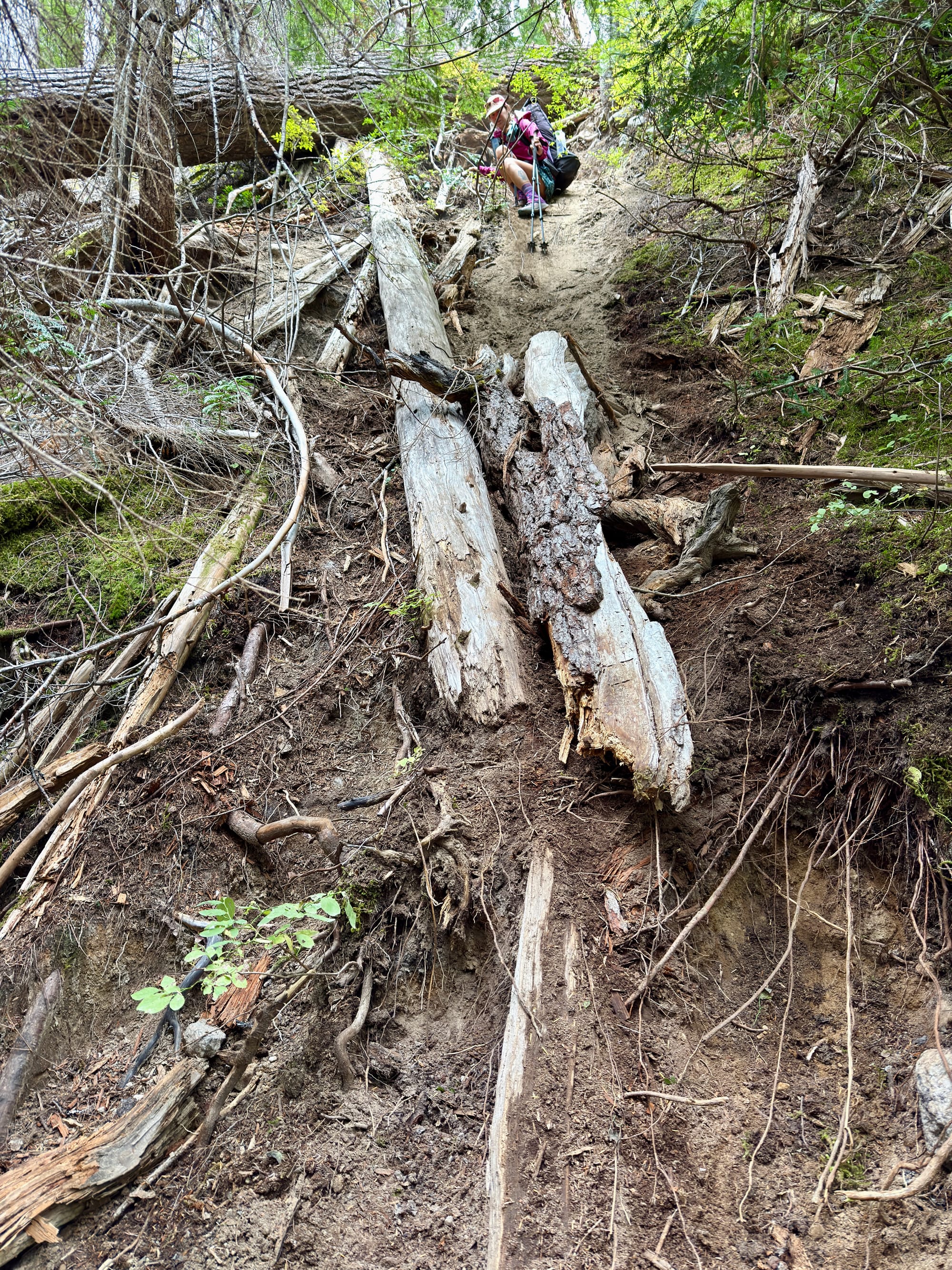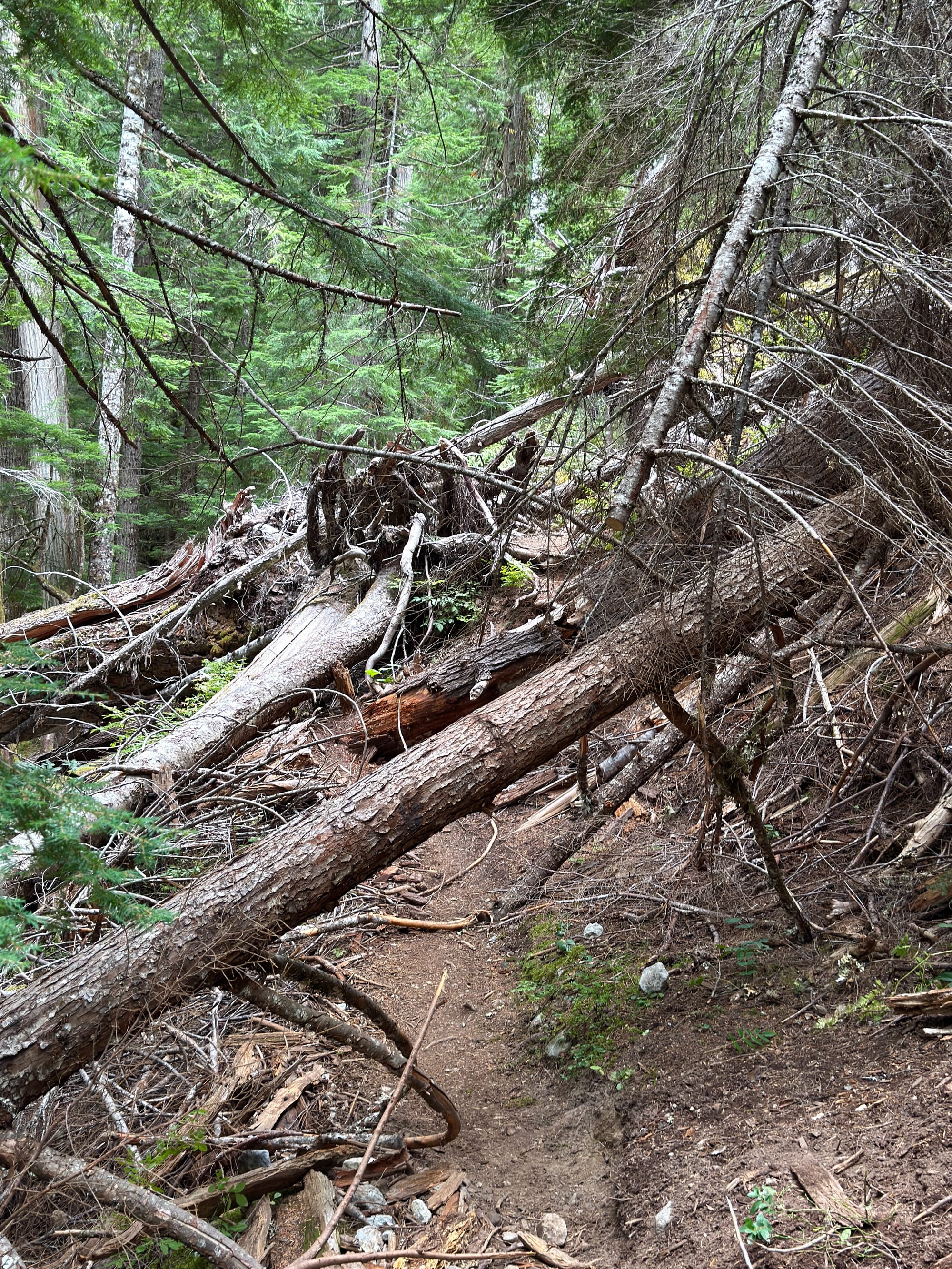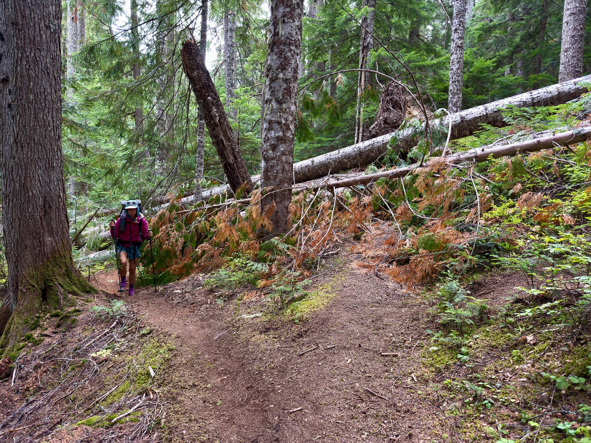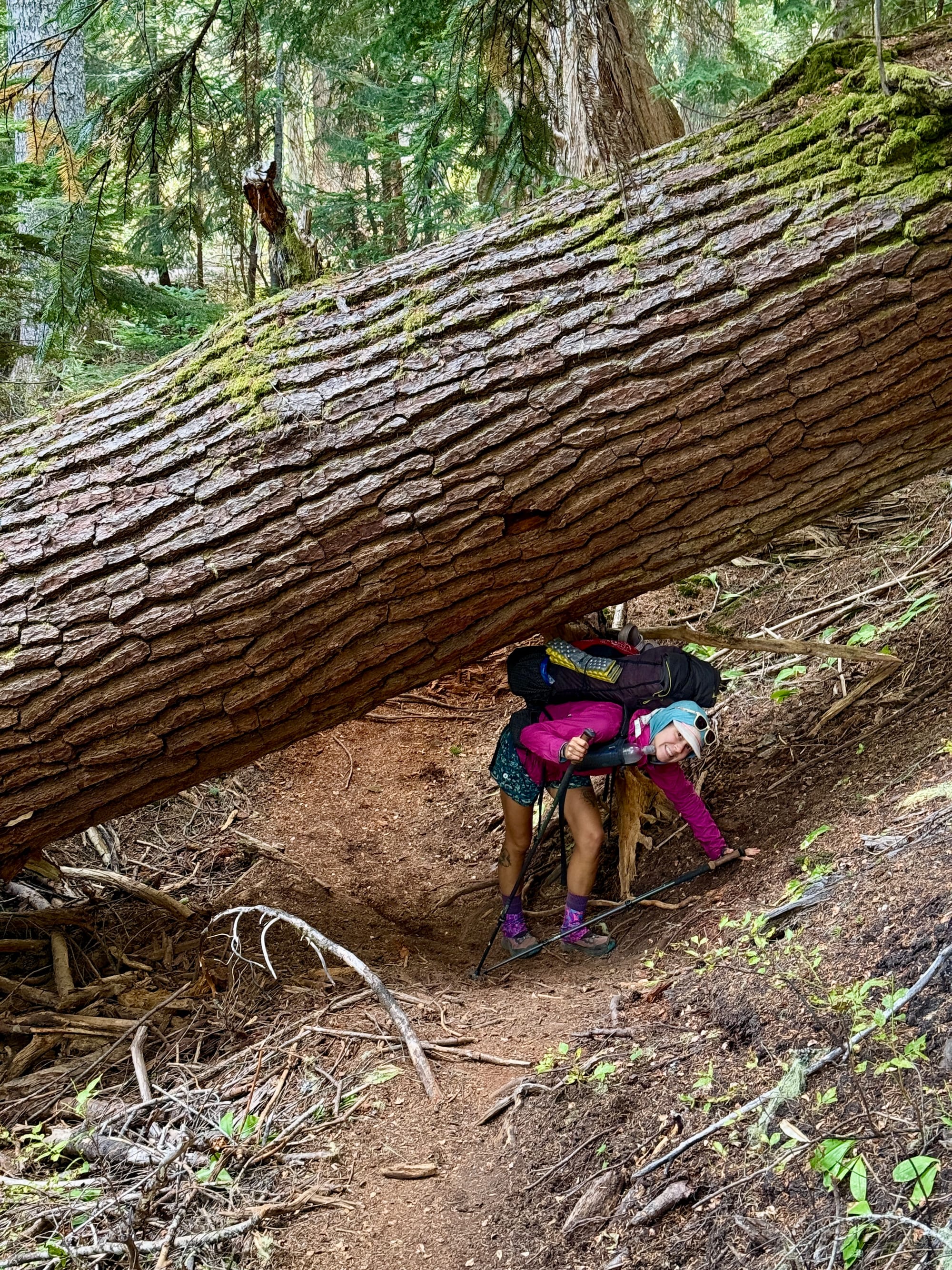 The afternoon heading down towards the Suiattle River was an obstacle course, and probably the second worst stretch of trail we’ve encountered over 2500+ miles.