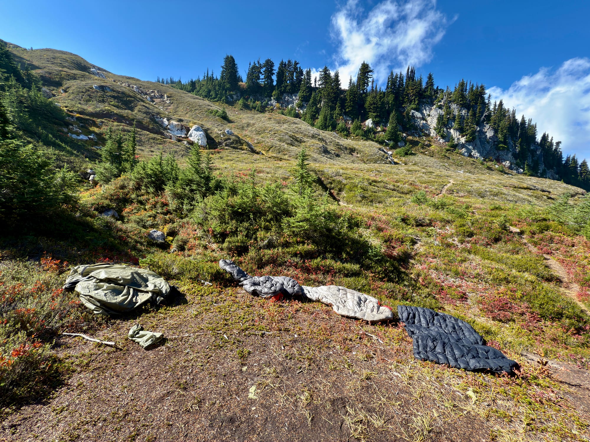 We hiked up into some sunshine and used the opportunity to dry out all of our gear while having lunch.