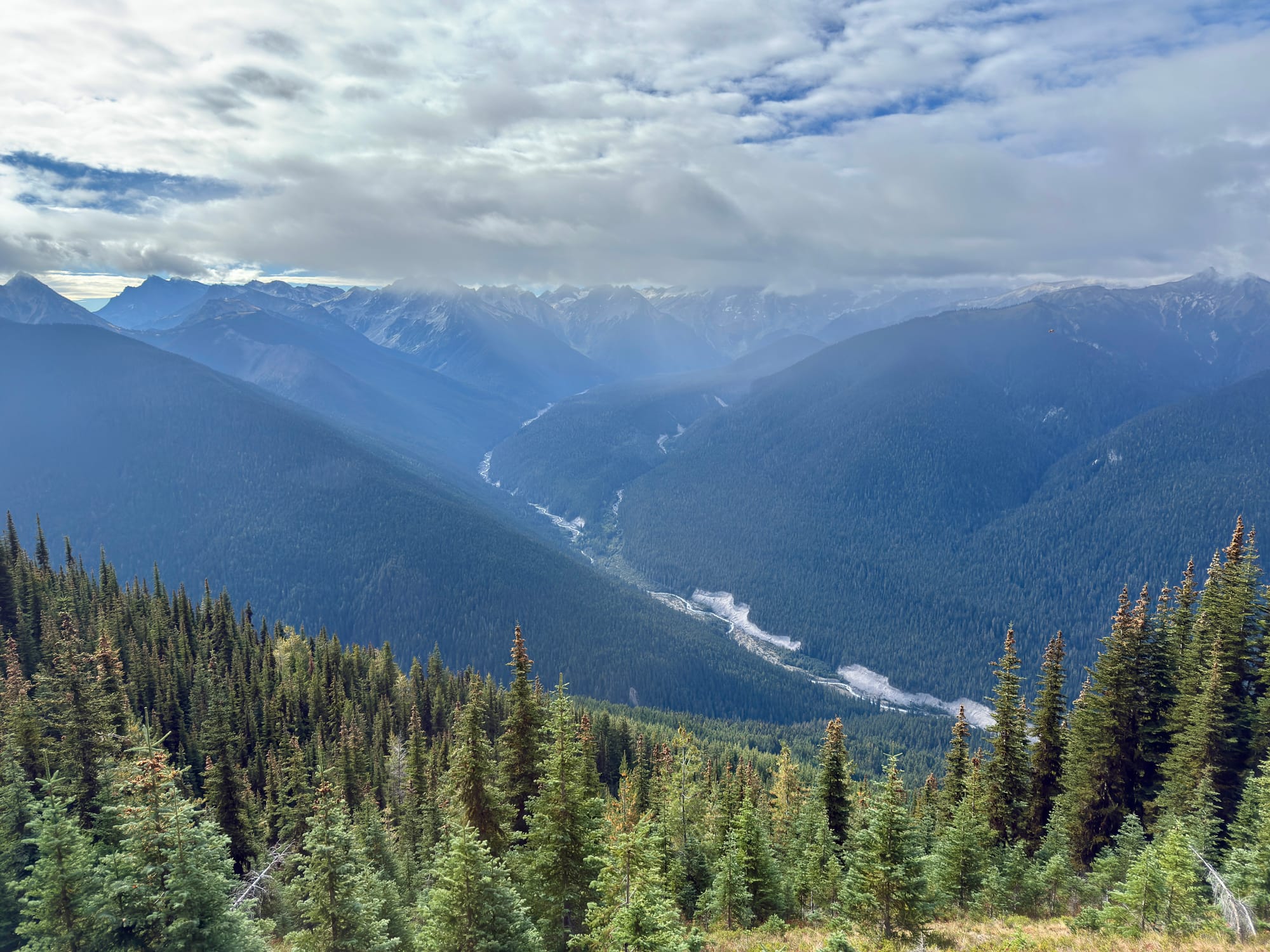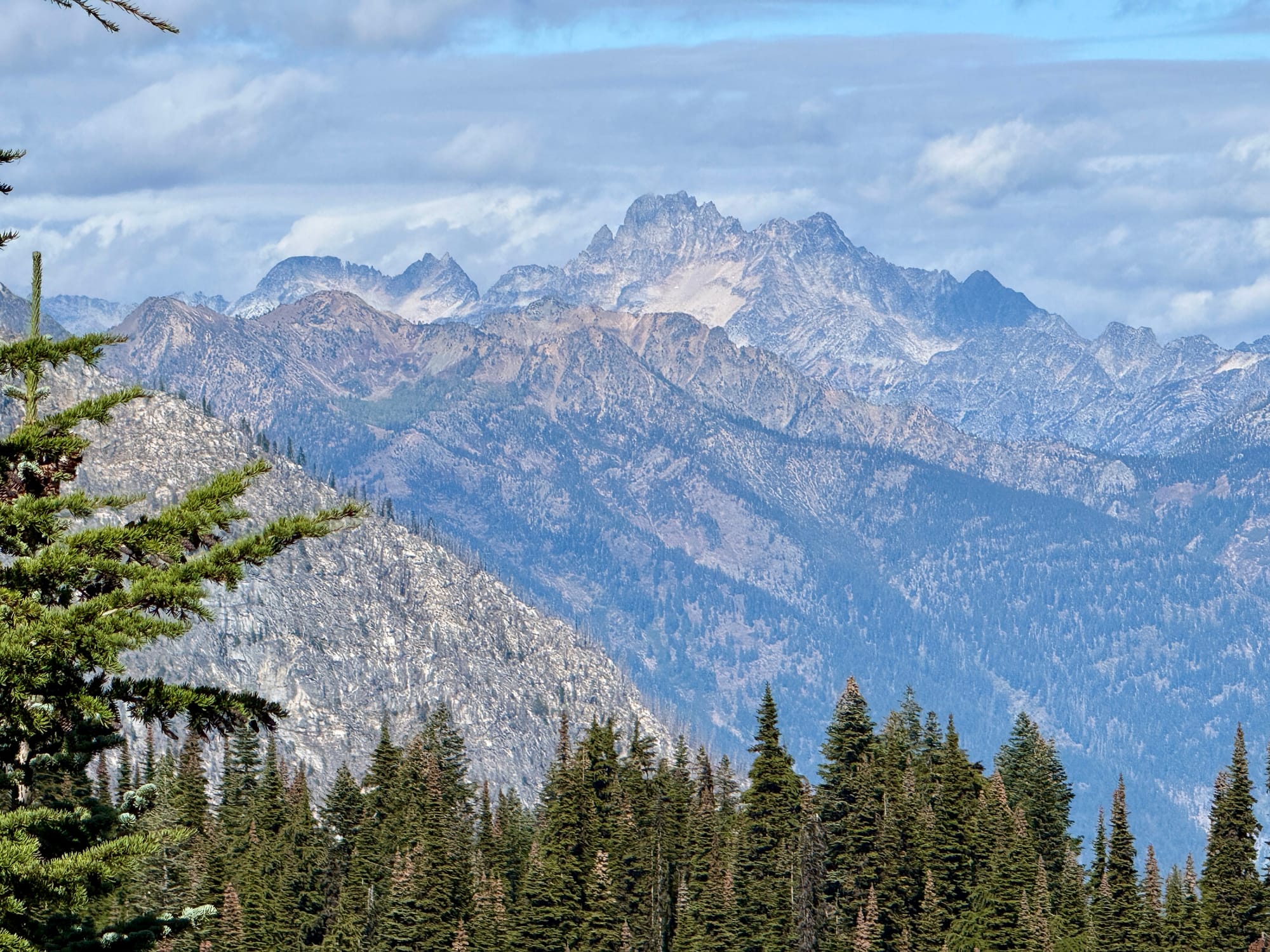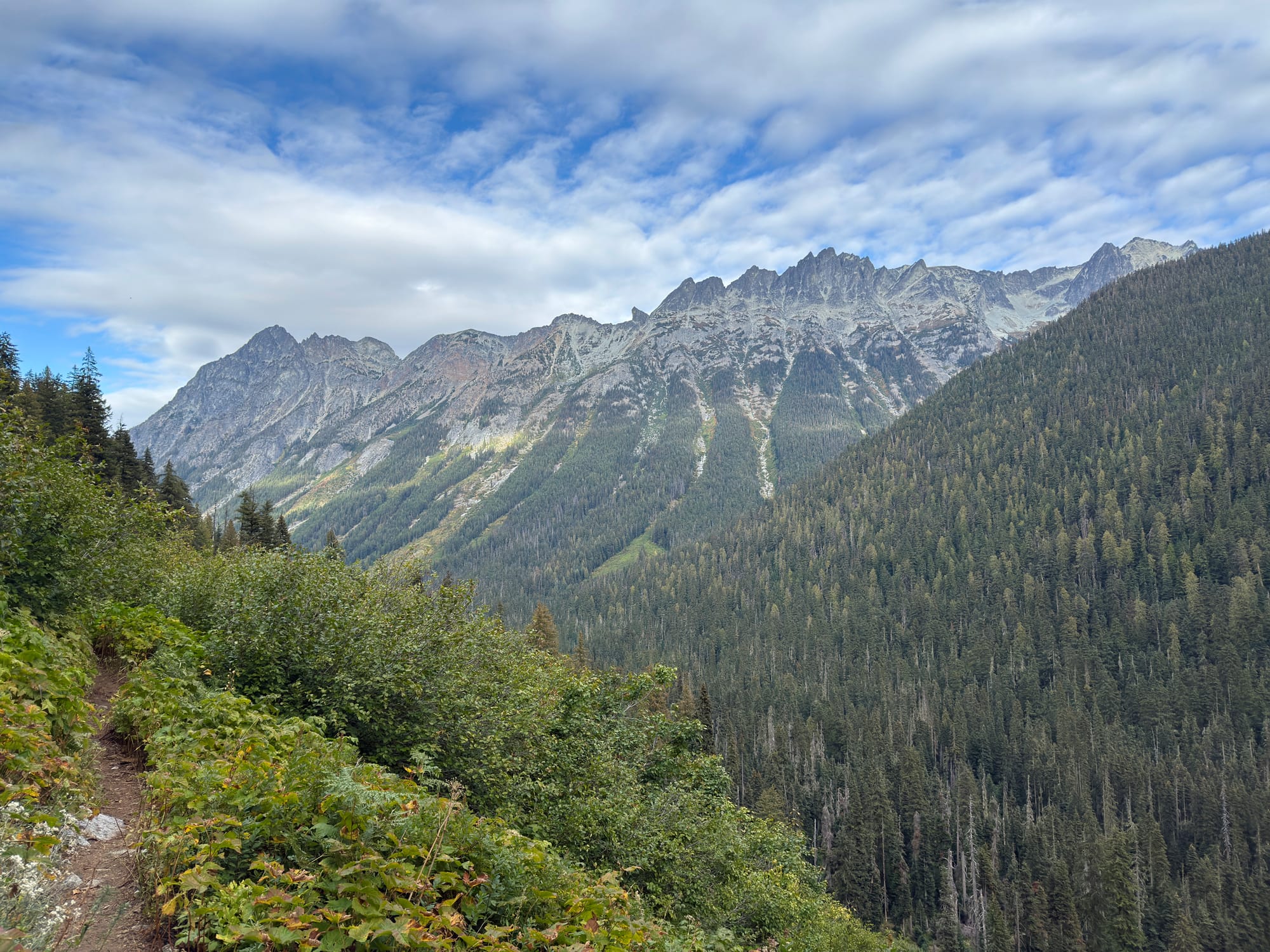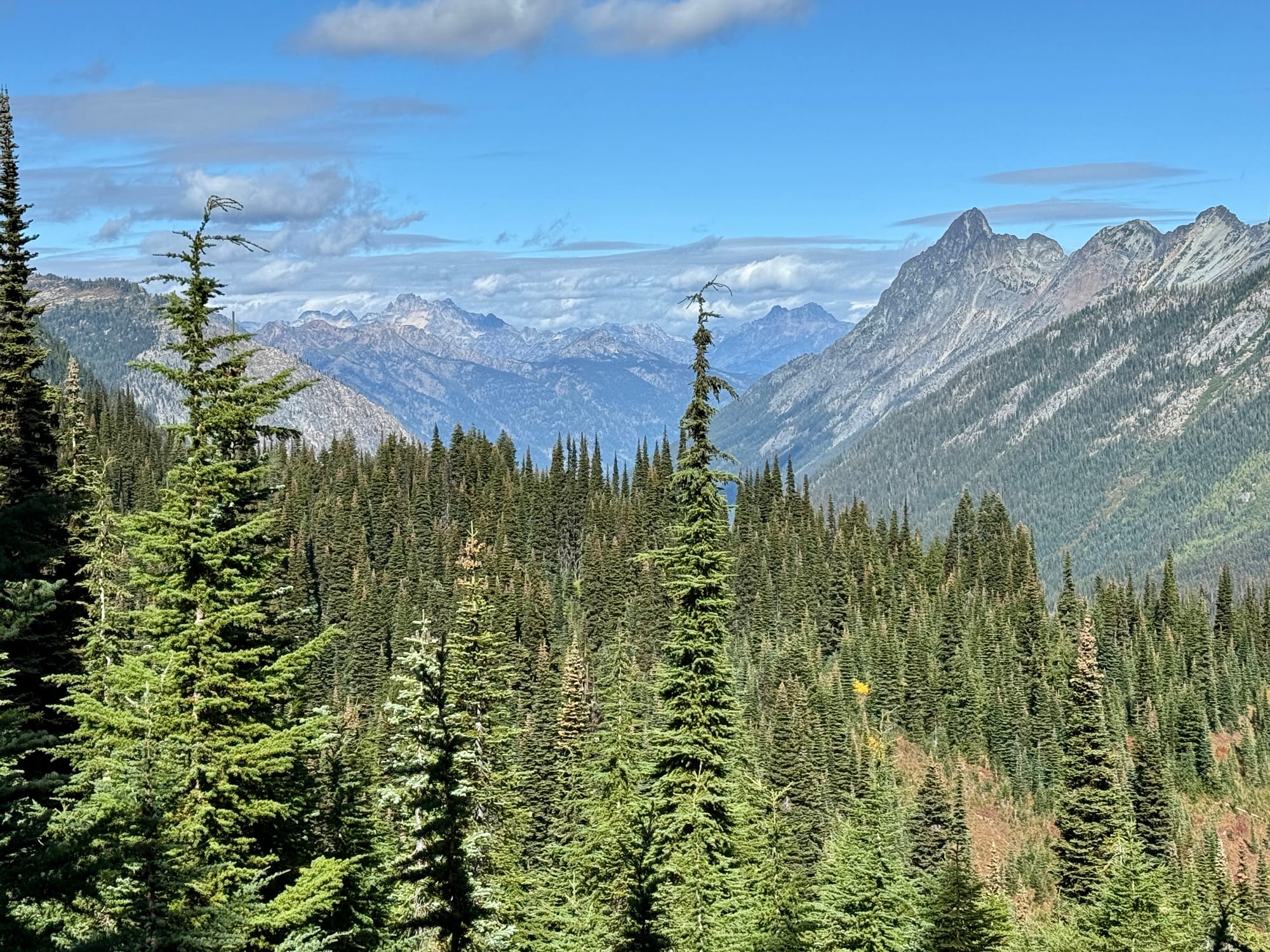 Views from the crest of Suiattle Pass looking North. Mountains ahead, to the surprise of no one.