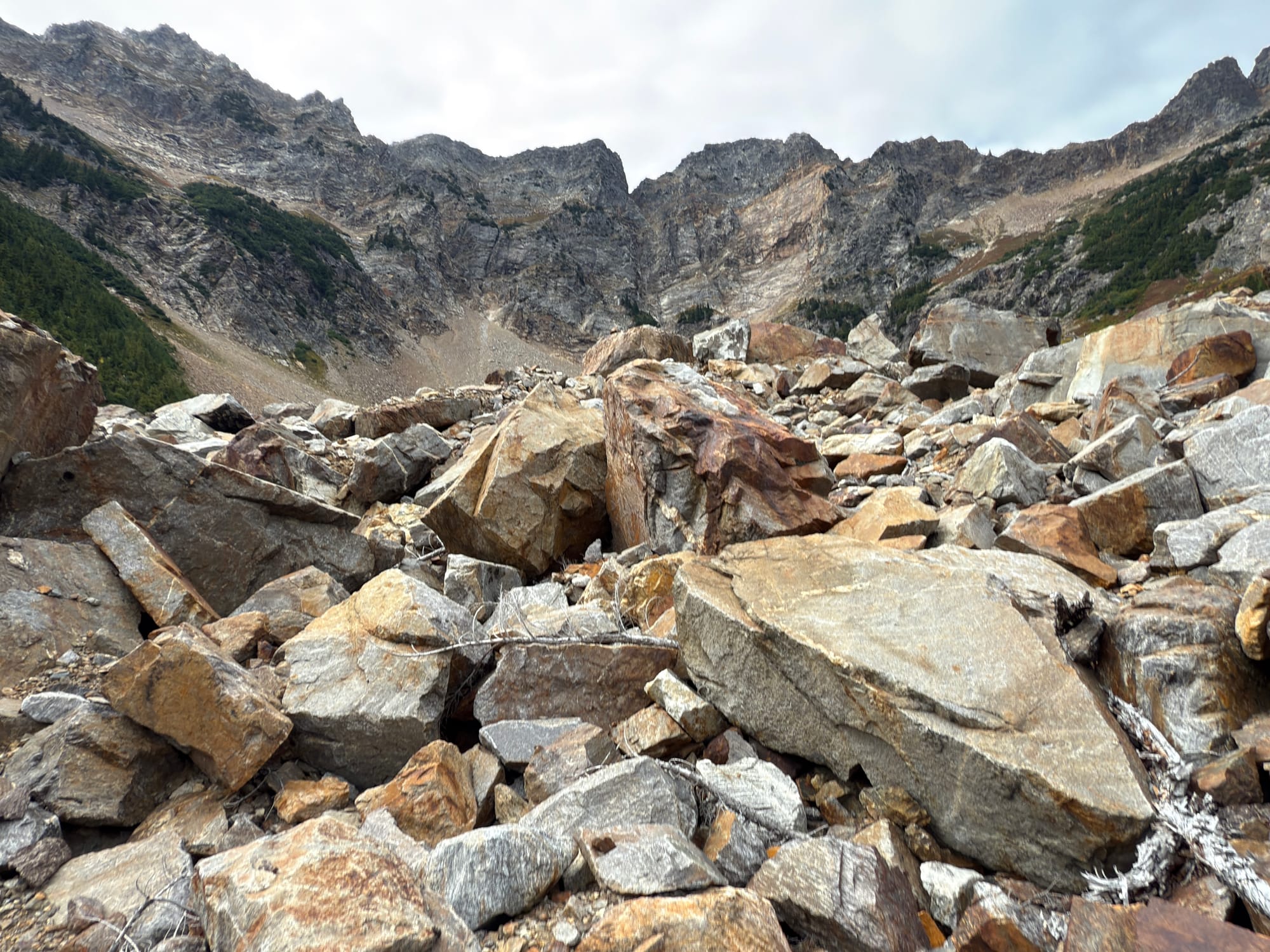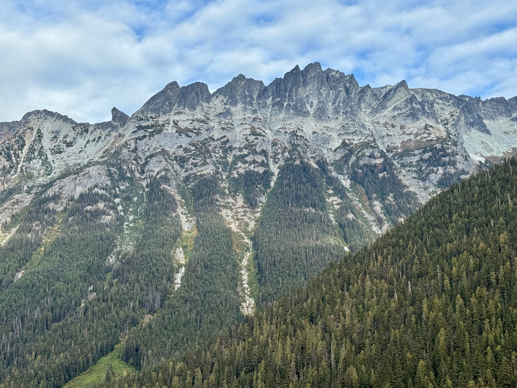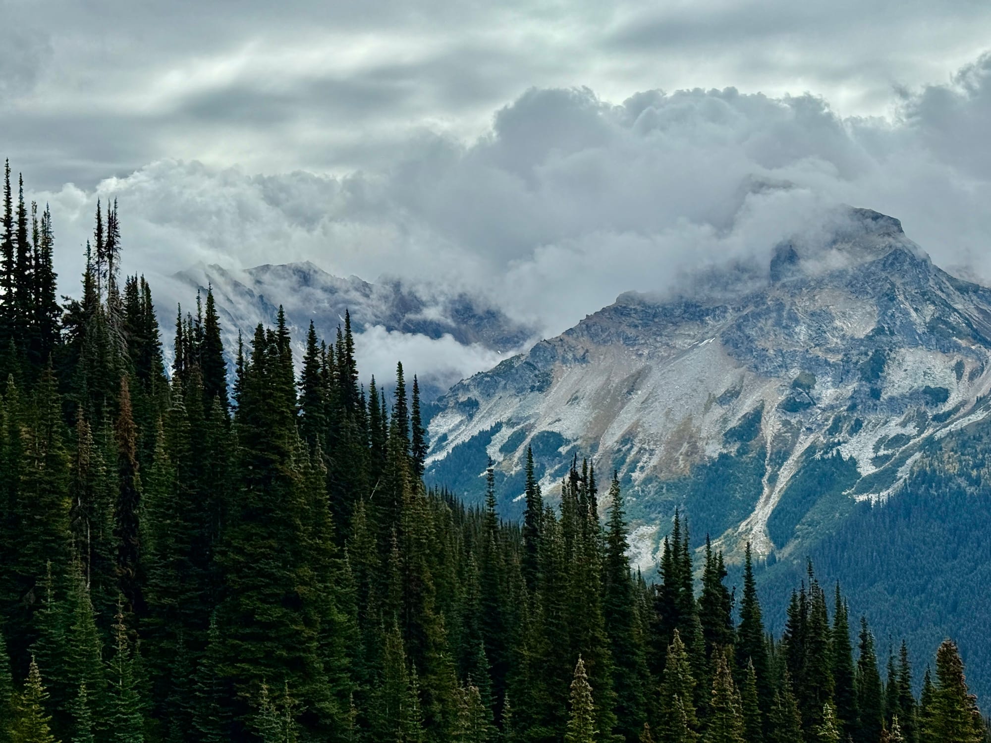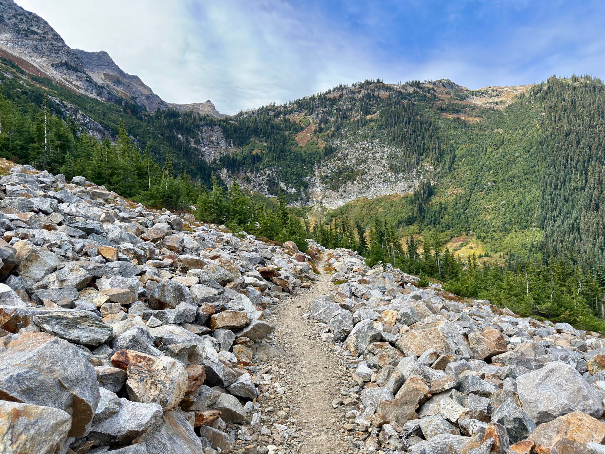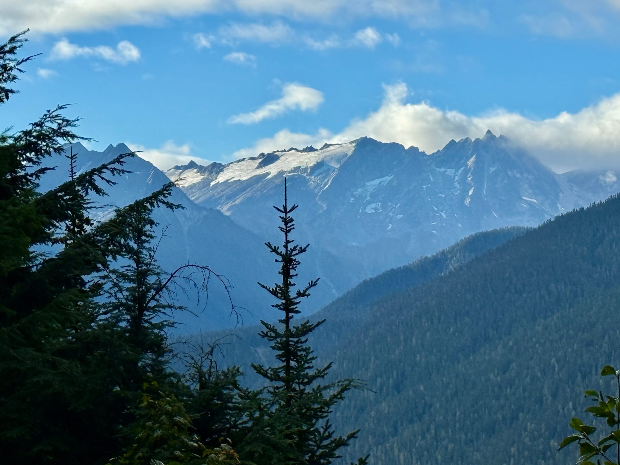 Views from the crest of Suiattle Pass looking North. Mountains ahead, to the surprise of no one.
