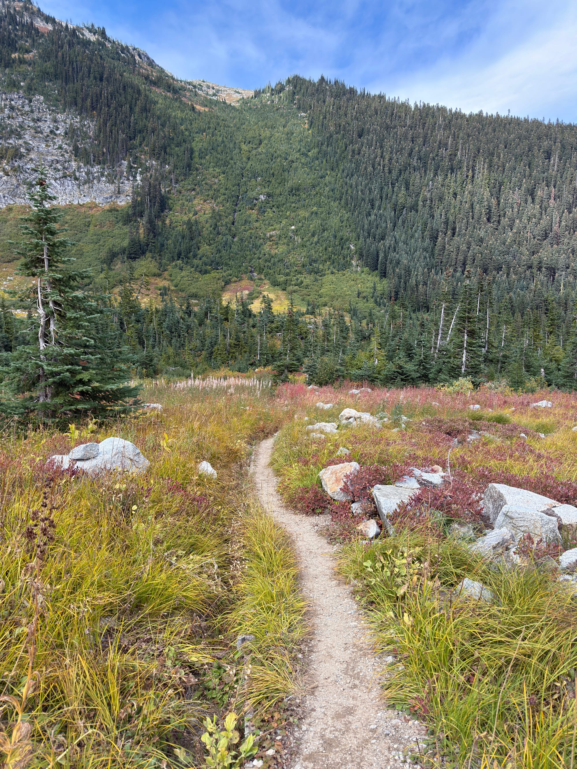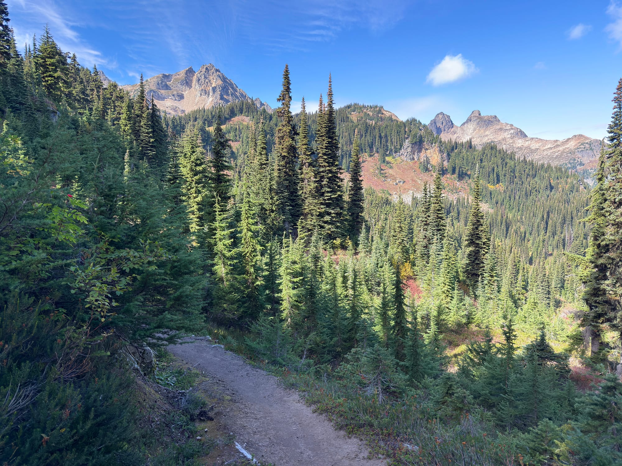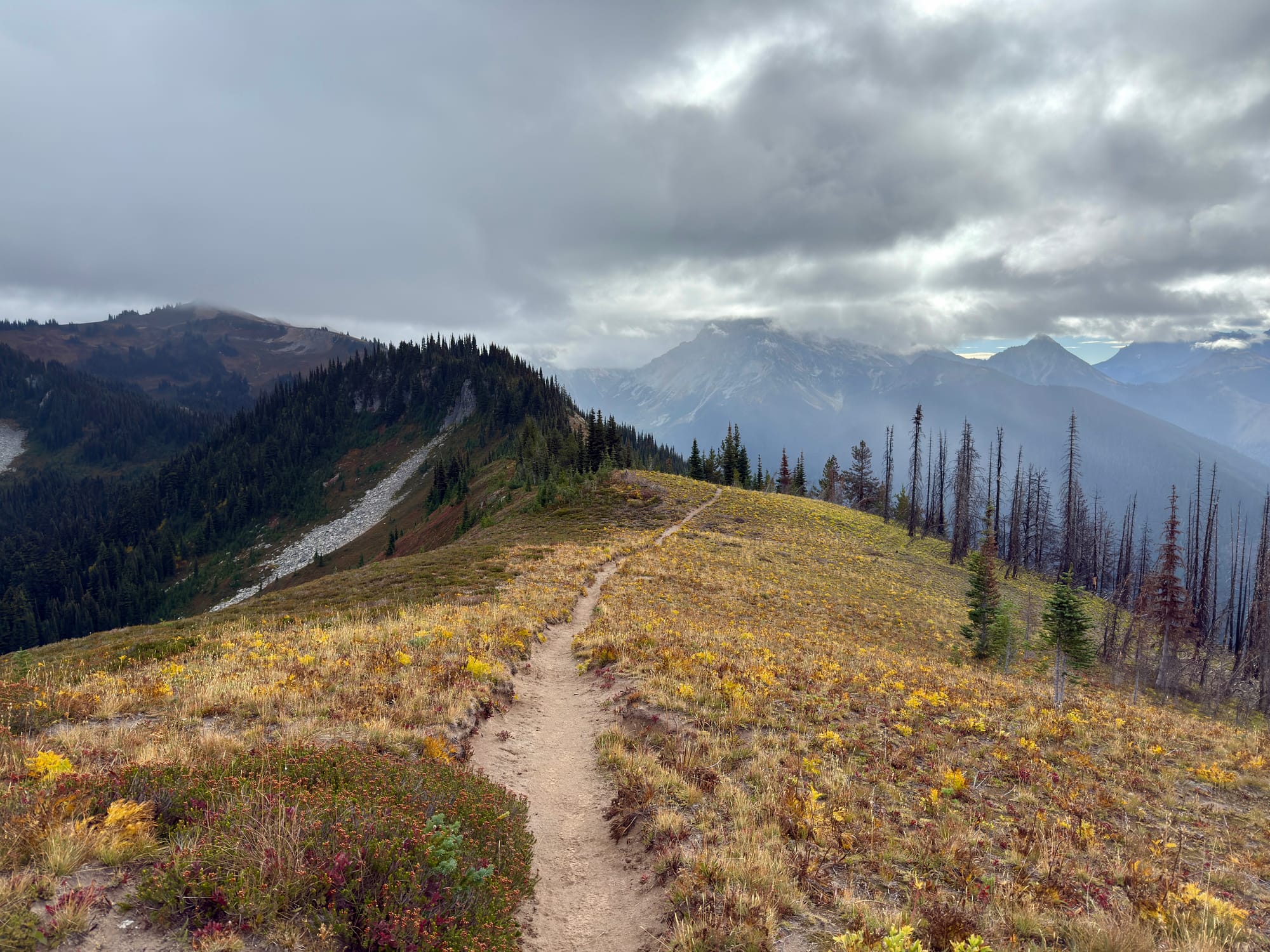 We wound up hiking into the dark (the days are much much shorter!) to a campsite about 5 miles south of North Cascades National Park where we can catch a 9am shuttle into Stehekin to grab our last resupply!
