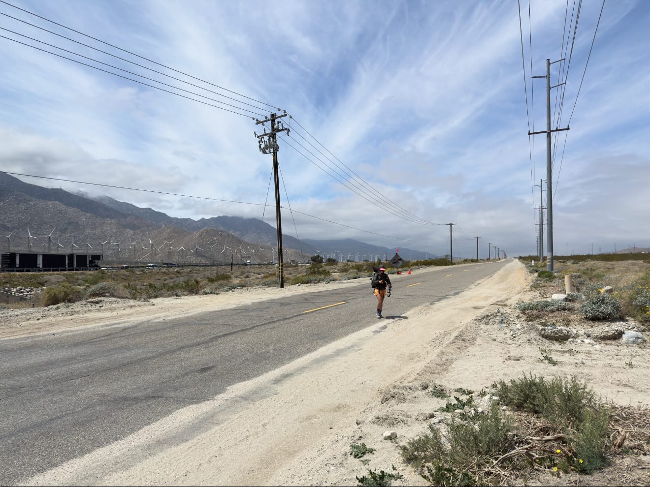 Getting back on trail off I-10 in windy conditions in one of the windiest places in the world was rough. The first miles up the hill from the freeway outside the community of White Water were definitely a test of perseverance.