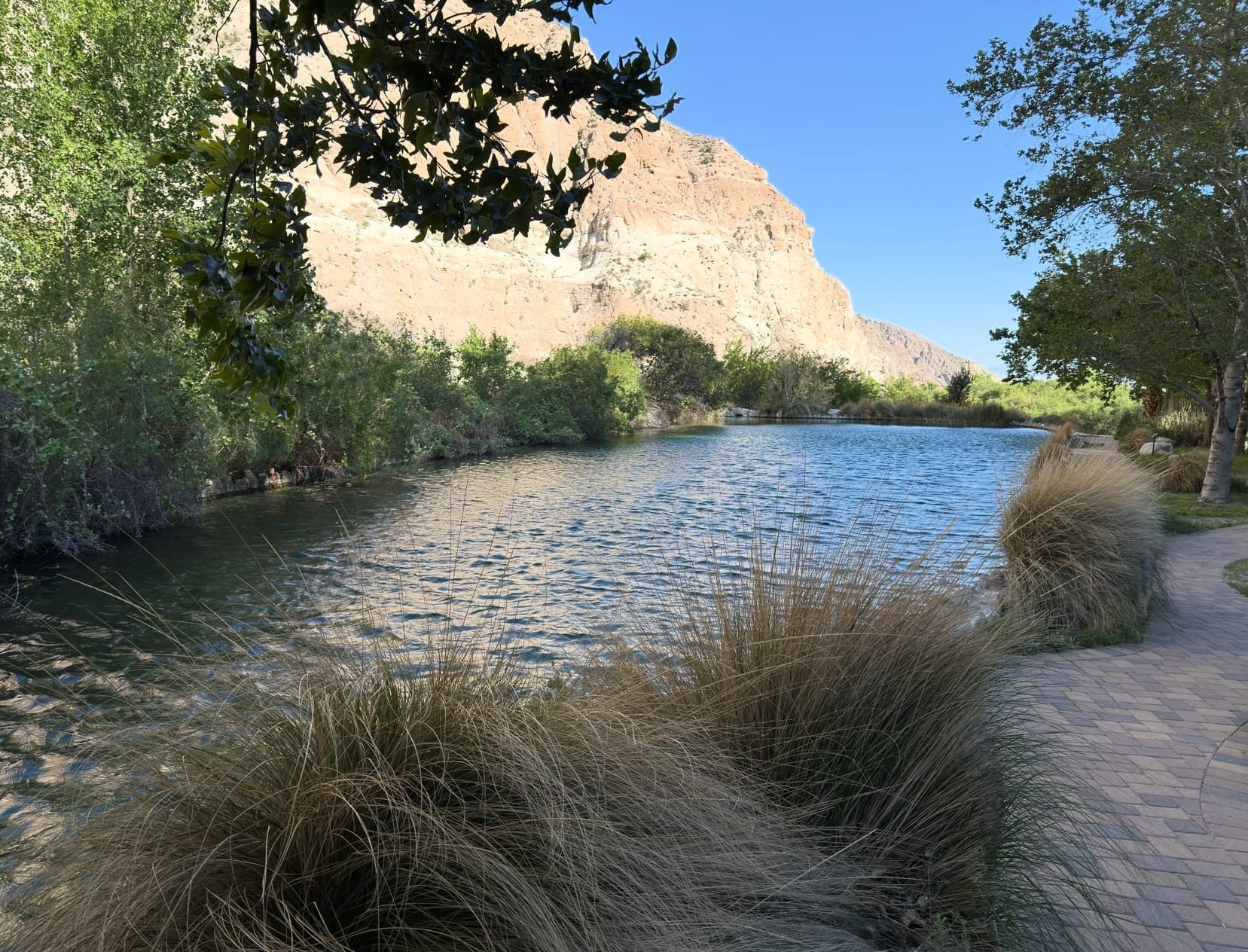 A lush green oasis in the desert. Probably a spring, and I should have investigated, but after getting blown around all afternoon, we passed through.