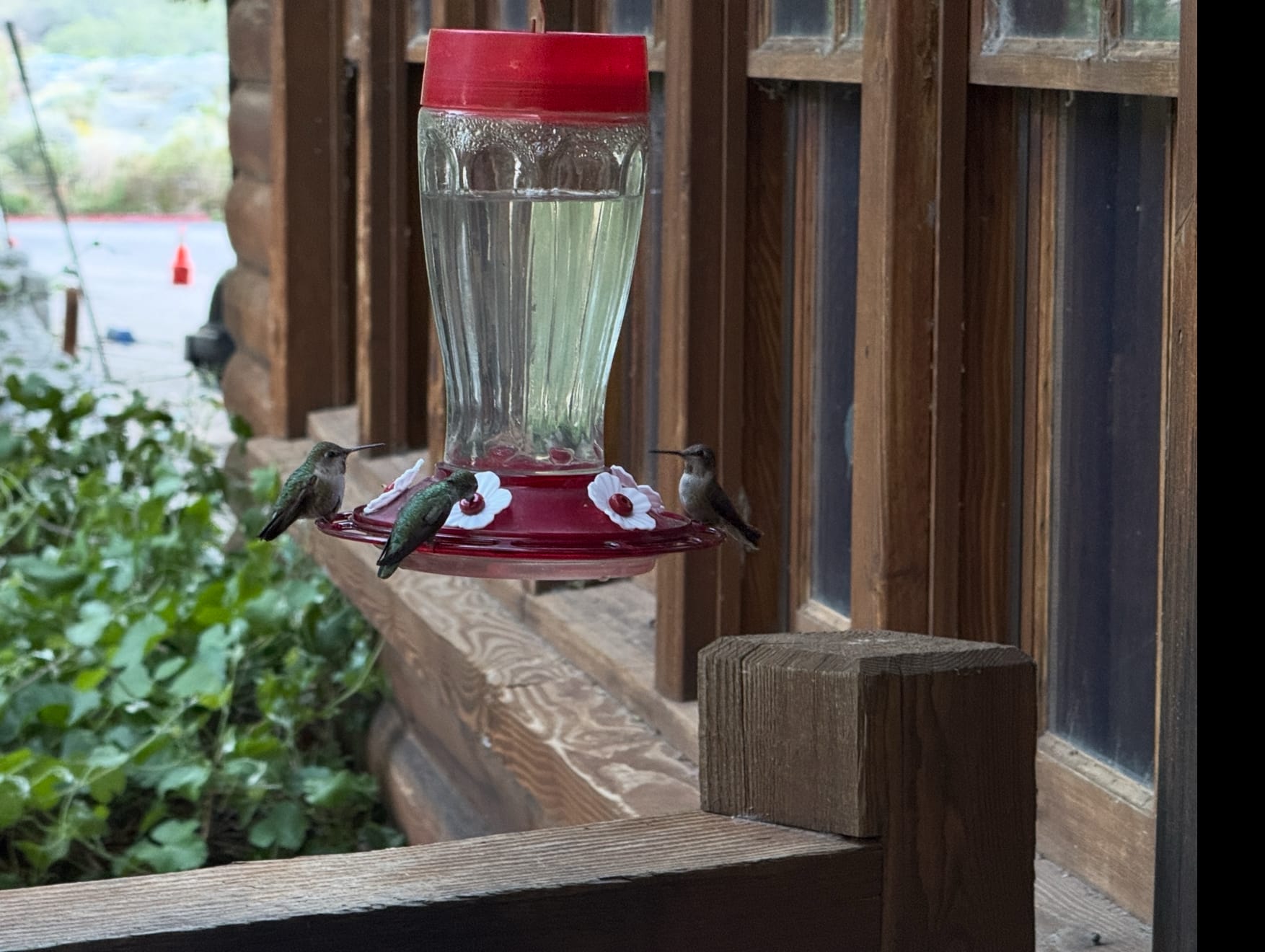 The hummingbirds weren‘t phased by the wind at all. It’s pretty incredible watching them zip and flit and hover. We could hear the beating of their wings.