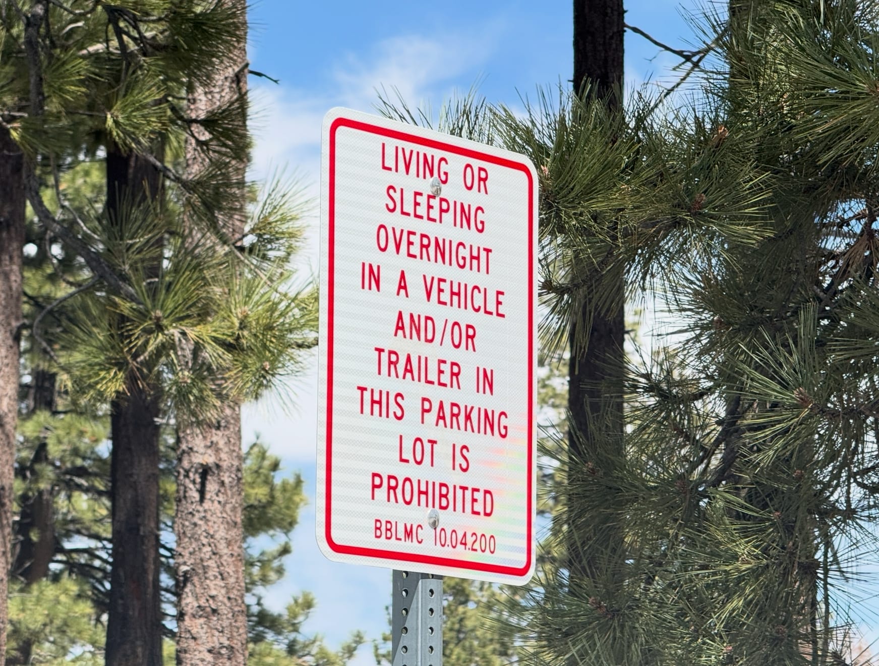 Big Bear is a ski town. It’s hilarious in a completely not-hilarious way how ski towns jack up housing prices to the point that the people who actually make the town function can’t afford to live there, then implement rules like this. See also: San Francisco, Boston.