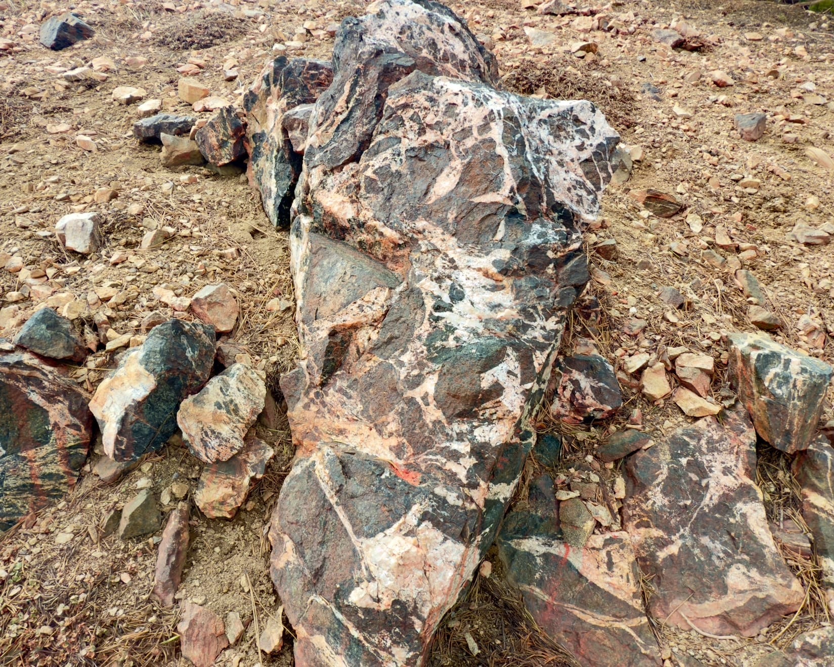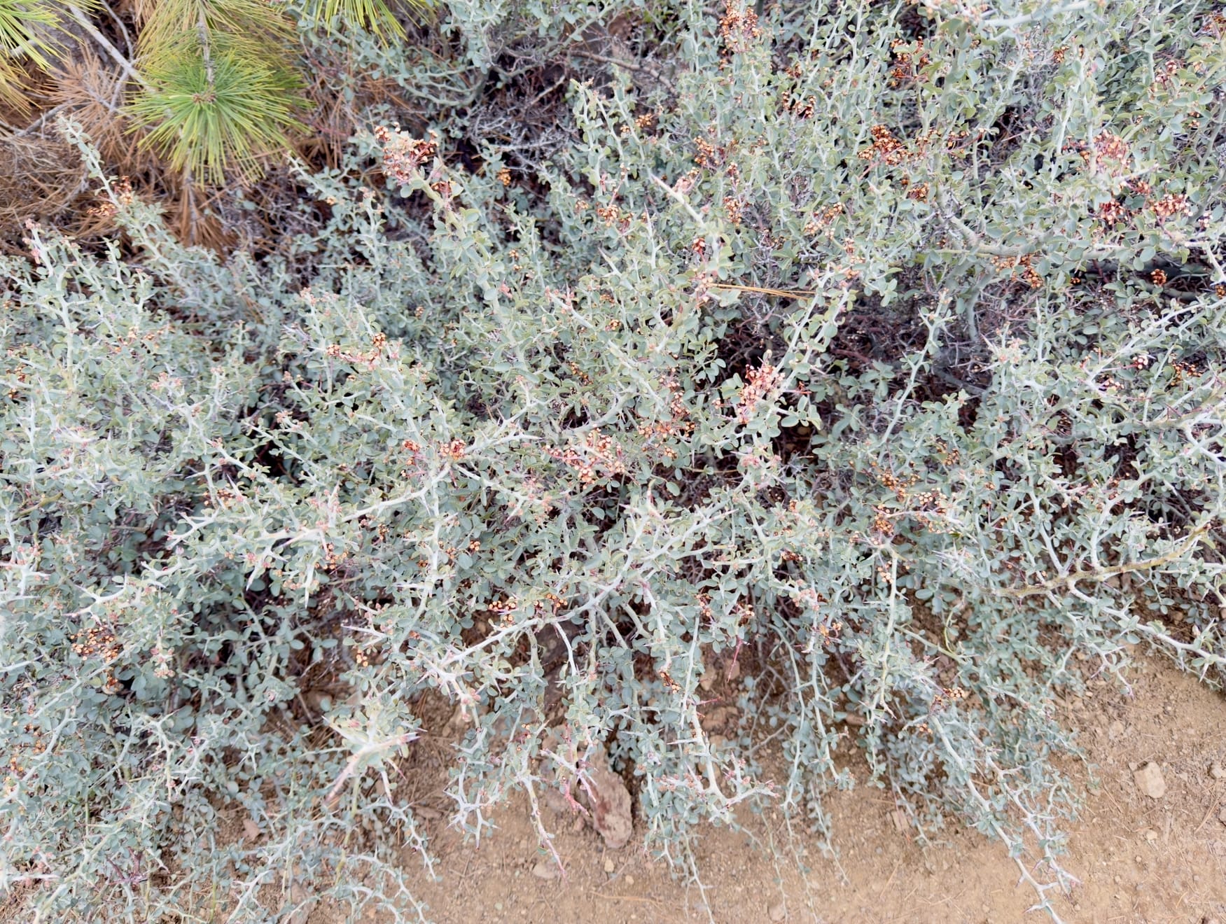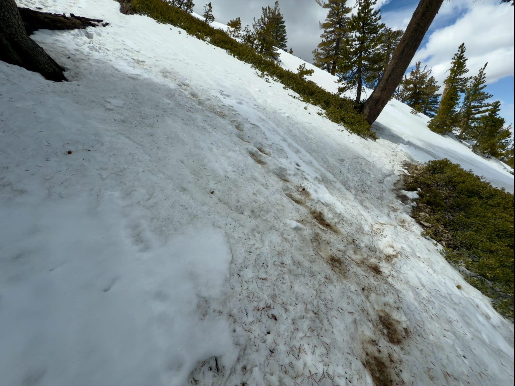 The red is fire retardant. The ridge was covered in it - probably during the Bridge Fire last year - although we weren’t particularly close to burned areas here.