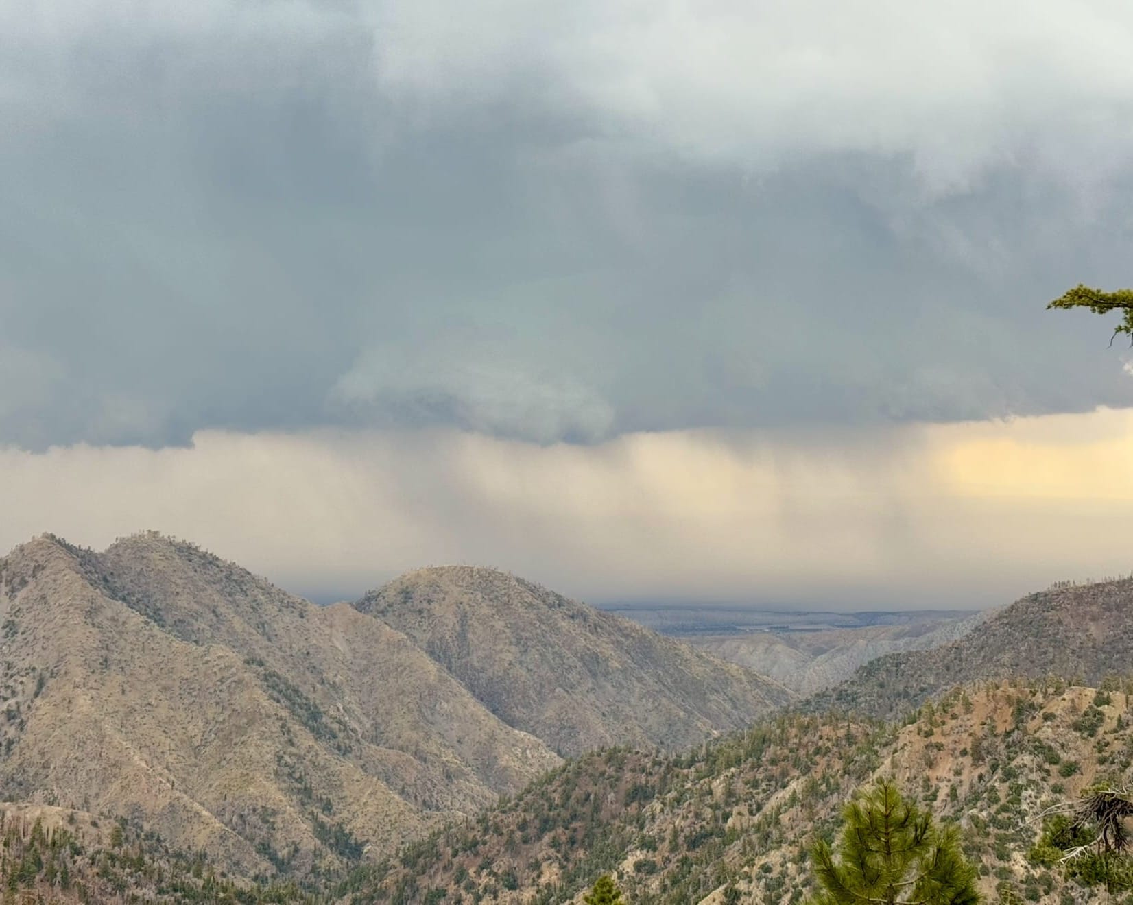 Watched a thunderstorm over the valley from Little Jimmy Campground. We got in the tent immediately before it started snowing during a thunderstorm. Wild.