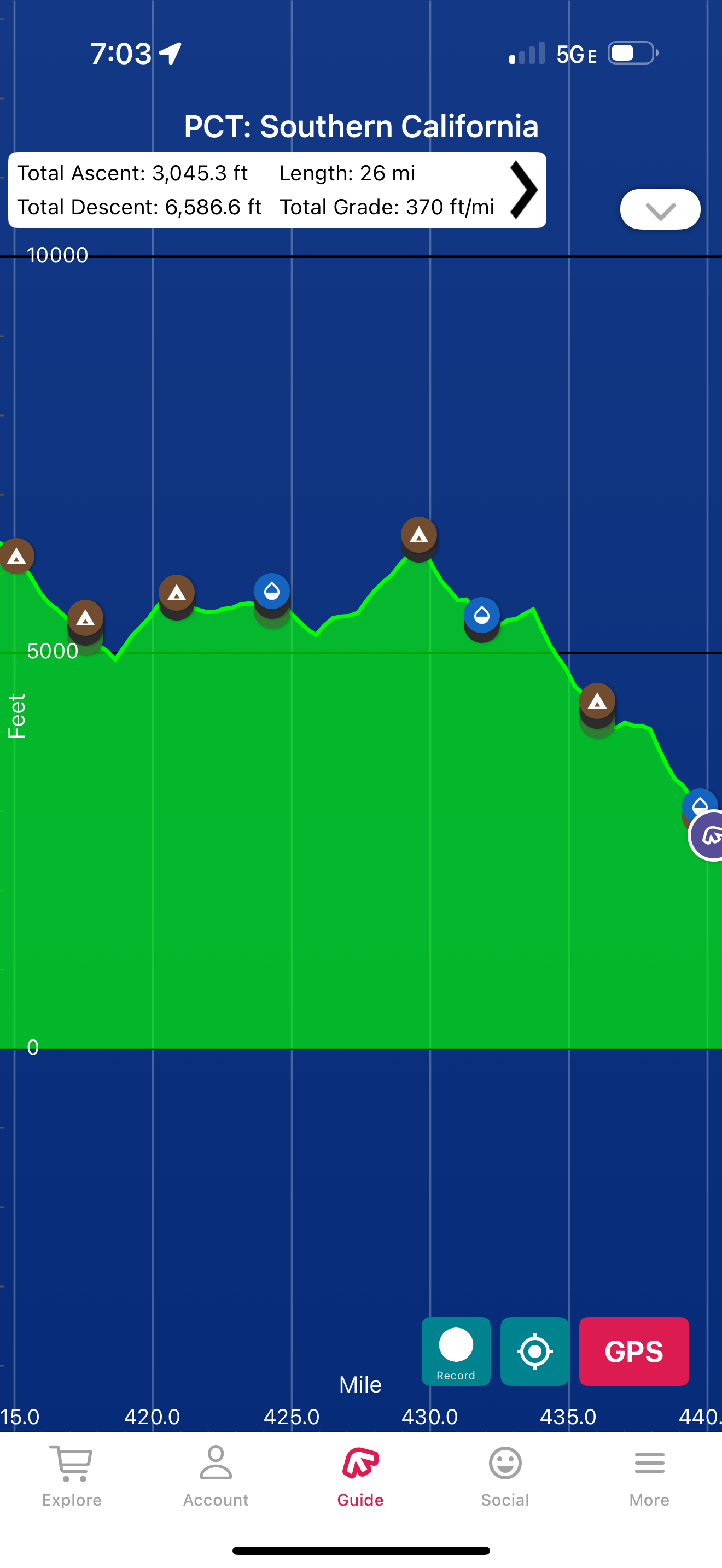 End: Mile 440.3 - Backcountry camp