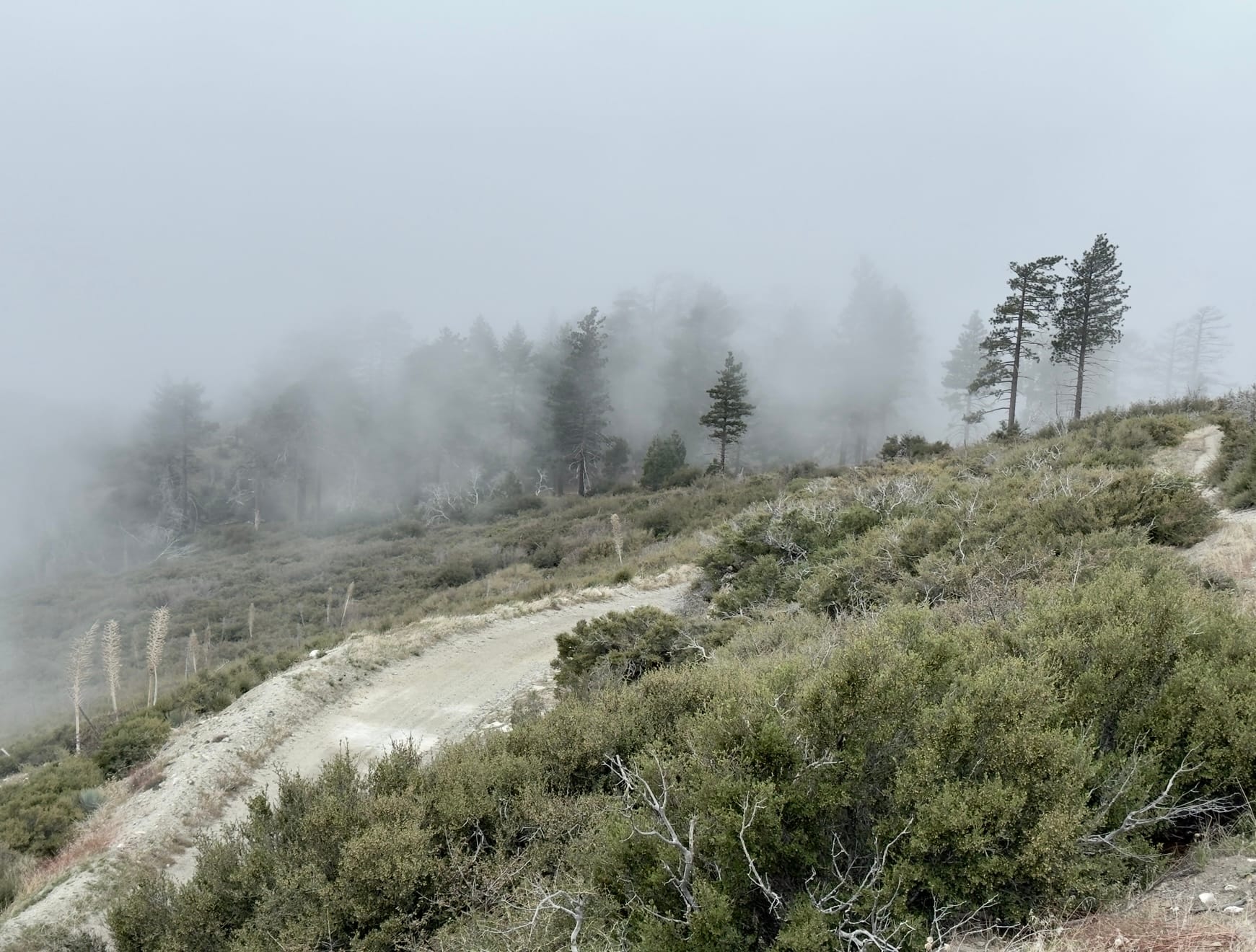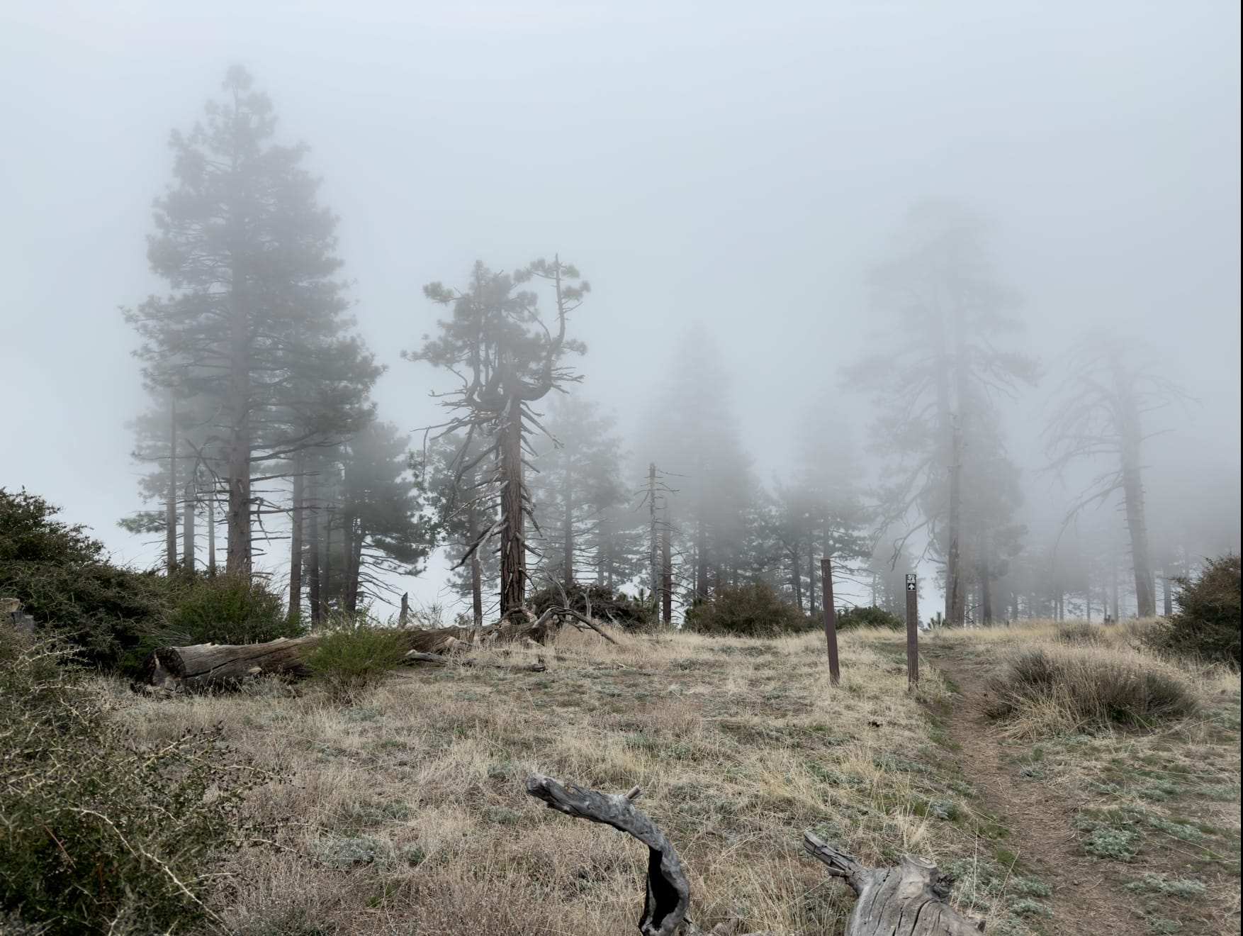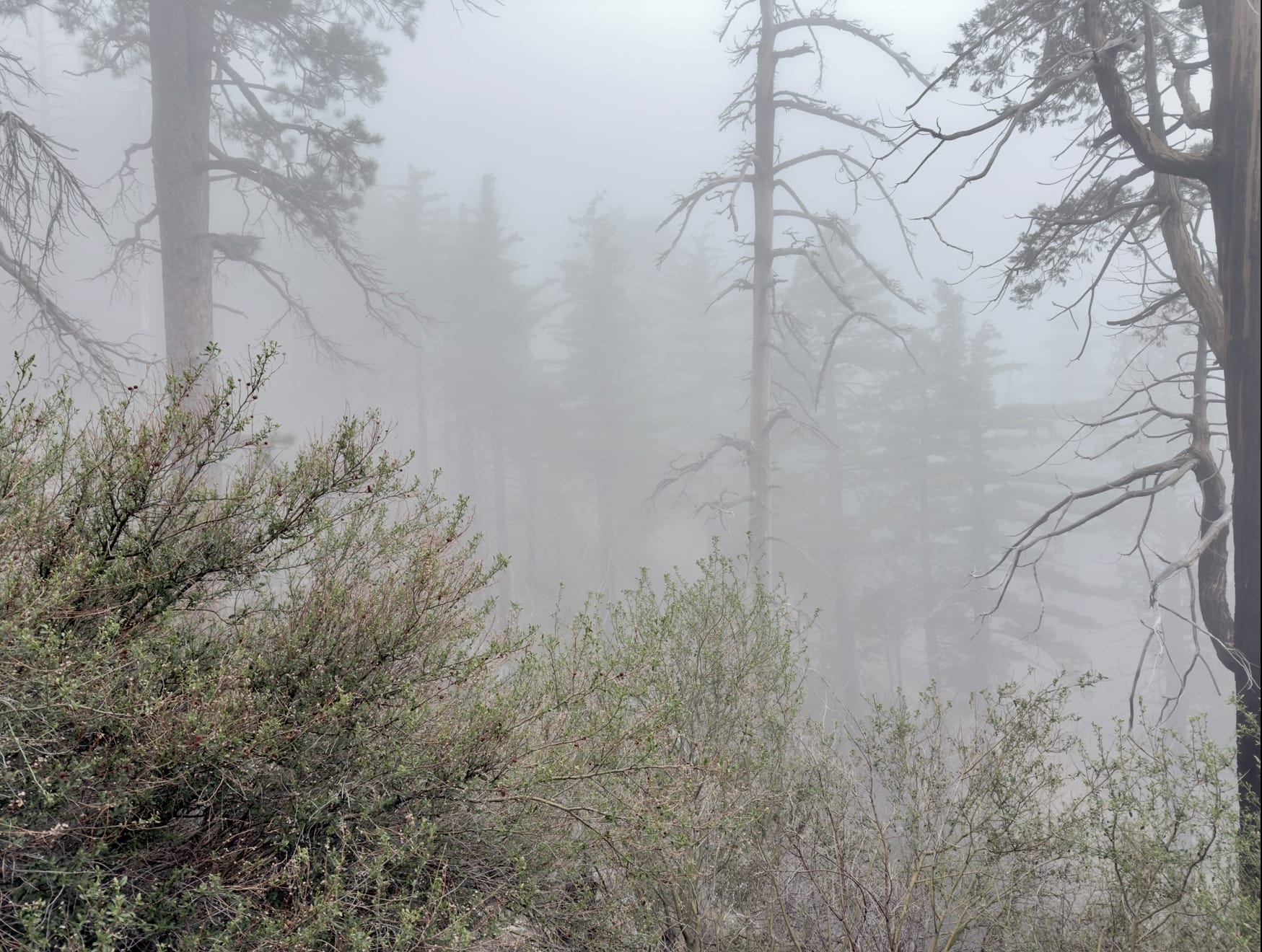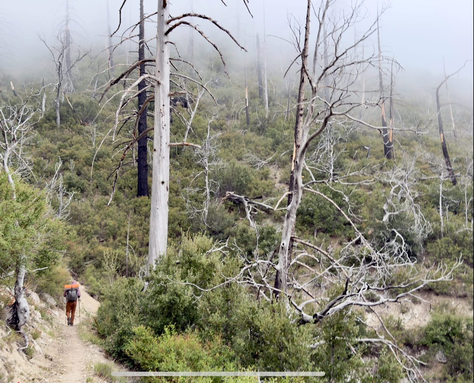 There were lots of spooky scenes walking through the aftermath of the 2009 Station Fire in the mist.