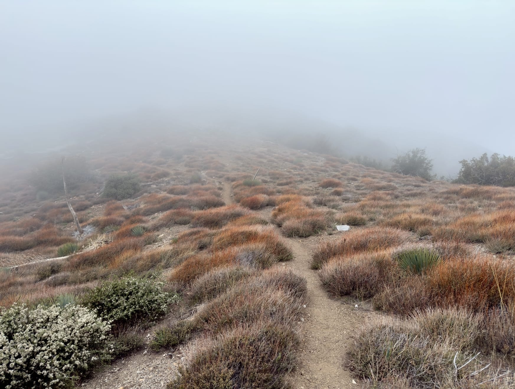 Our longest day yet took place almost entirely in the clouds with ~3000 ft of ascent and 6500 ft of descent.