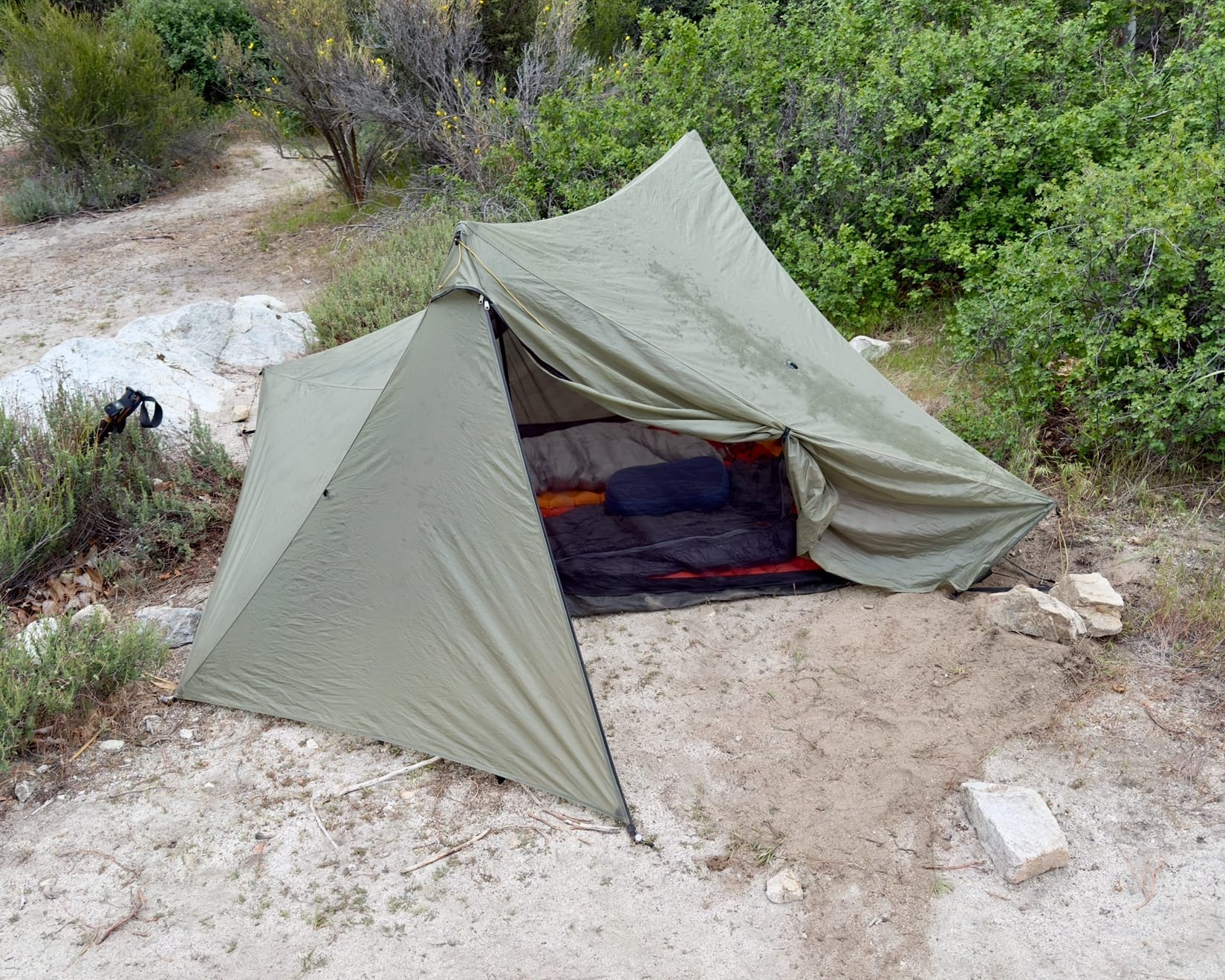 Like a glove. Lots of the tent sites on the PCT are only big enough to squeeze a 1 person tent in to - I dug out a few inches of dirt to make this one work with the Stratospire.