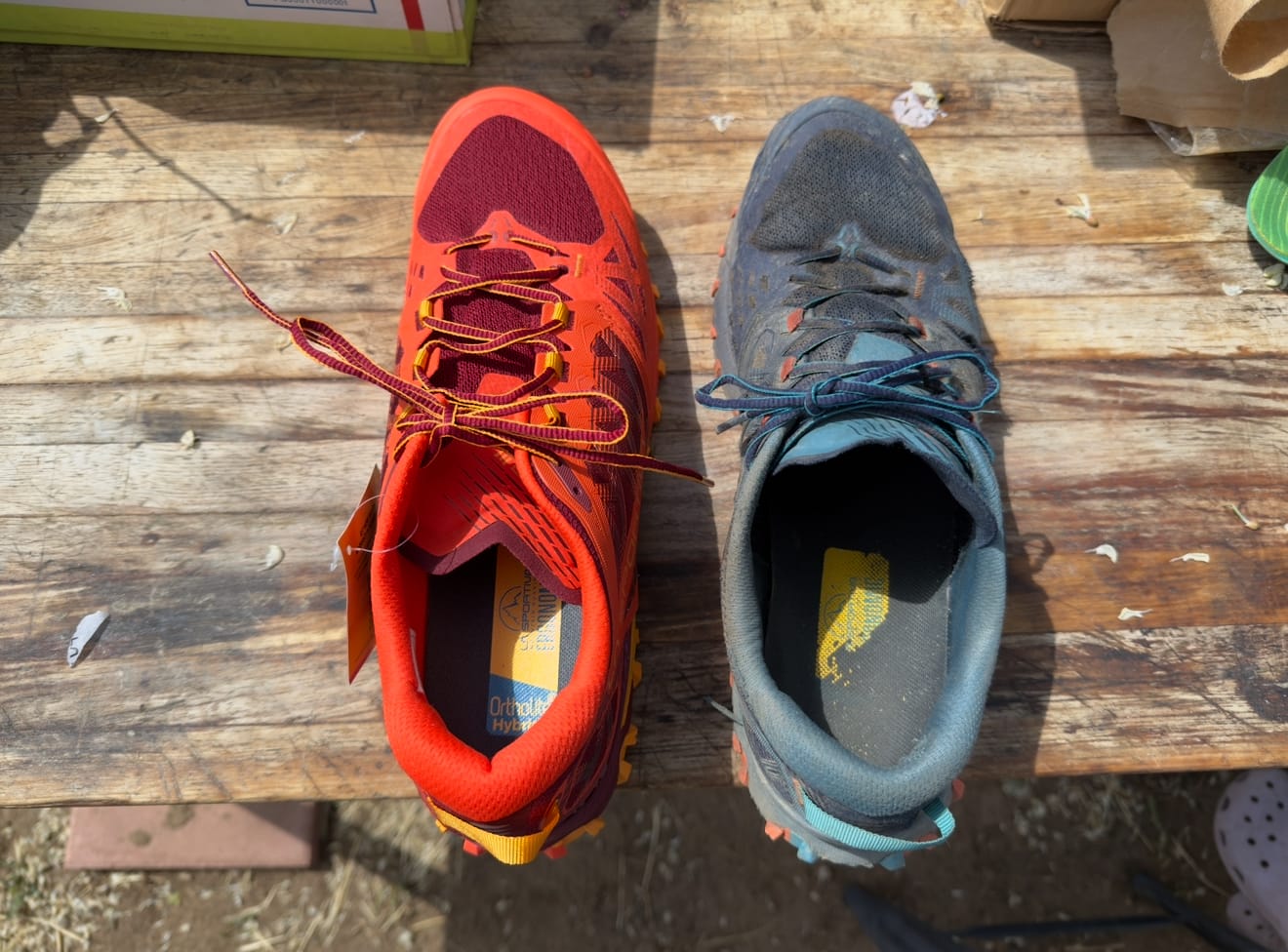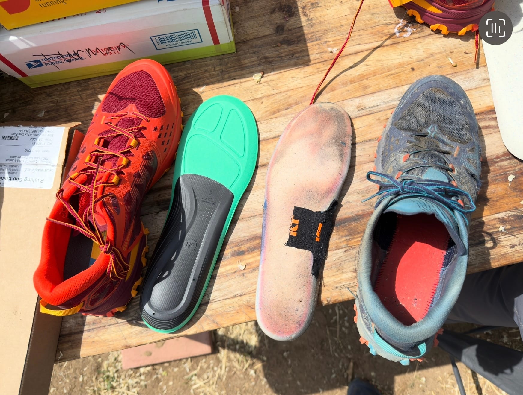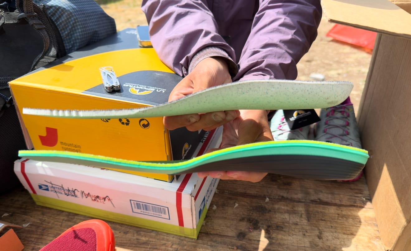 New tires! I have high arches and was experiencing heel pain presumably from plantar fasciitis surfaced by a lack of arch support in my original shoes. I attempted to remedy things a bit with some KT tape under the insole, which was surprisingly effective. I ordered high arch support SuperFeet insoles for my new shoes and they fit like a glove without trimming - pretty stoked to hike with better foot support.