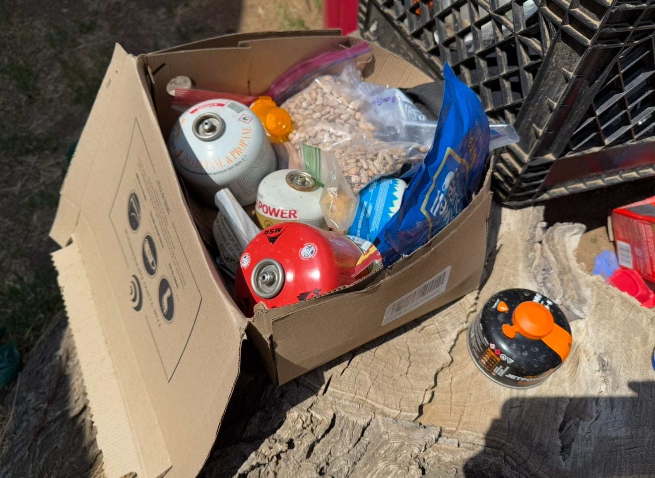 You can find some pretty interesting items in these things, like my new Talenti jar above! They make these little valves to empty the remaining fuel from one canister into another - essentially meaning you never have to buy fuel if you have one and check hiker boxes. We don’t have a stove so we aren’t carrying fuel, but it’s a good tip for those who do.
