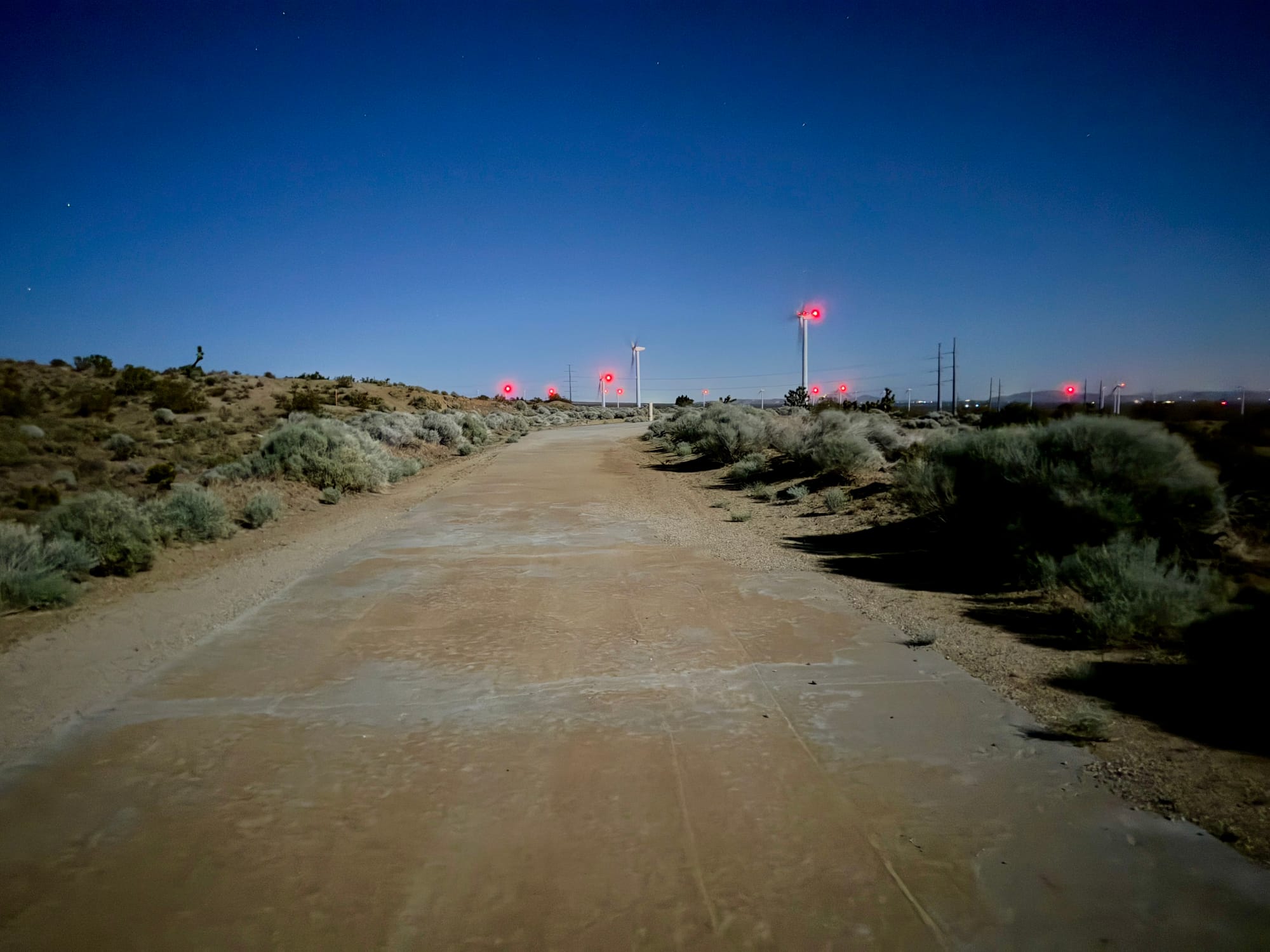 Walking towards the red blinking lights from the windmills in the night was very surreal.