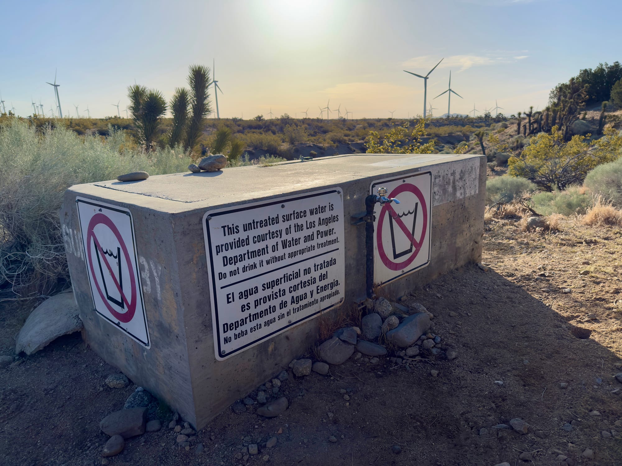 We started at sunset and walked ~17 miles into the early morning to a faucet generously provided “Courtesy of the Los Angeles Department of Water and Power”.