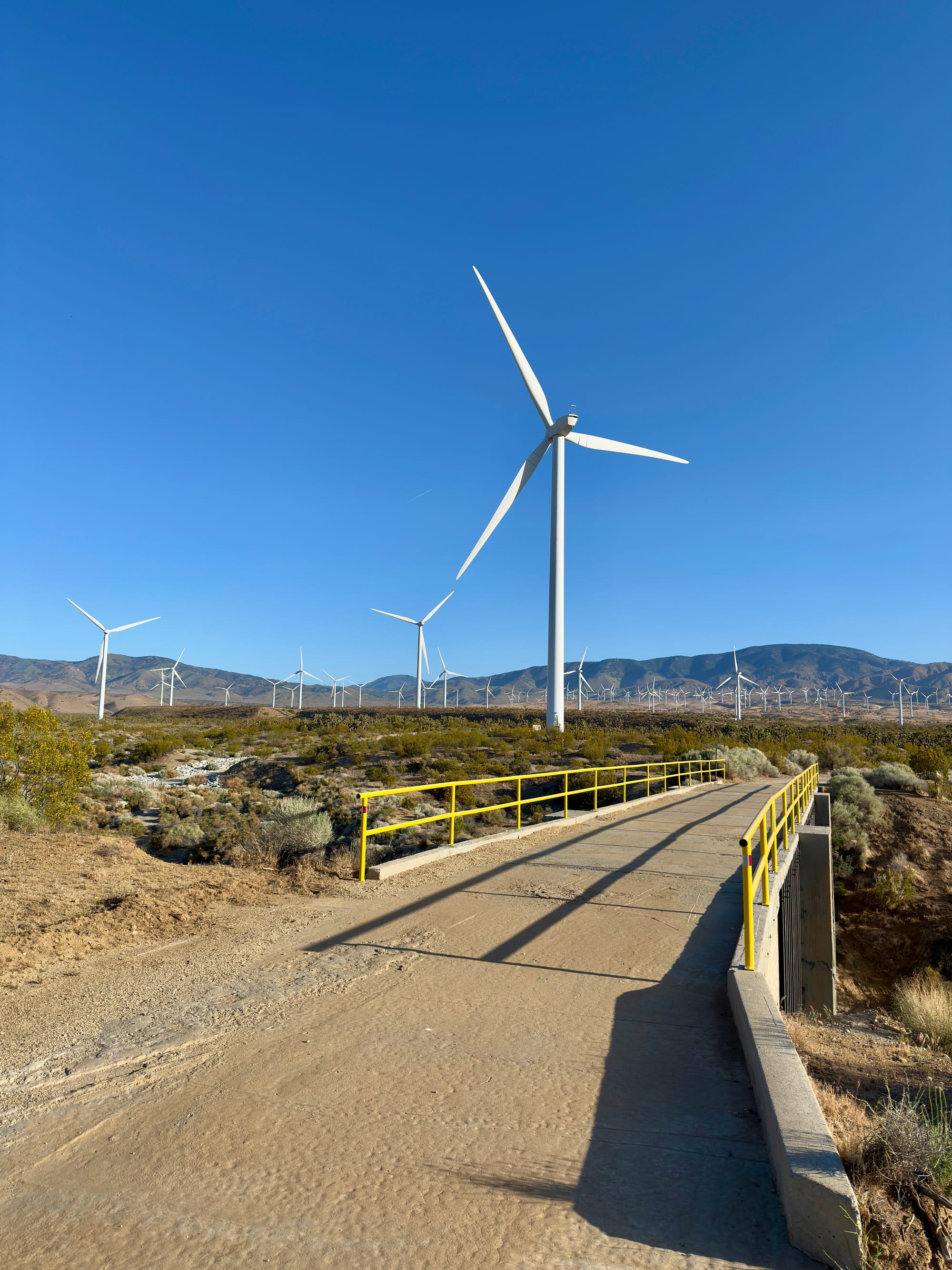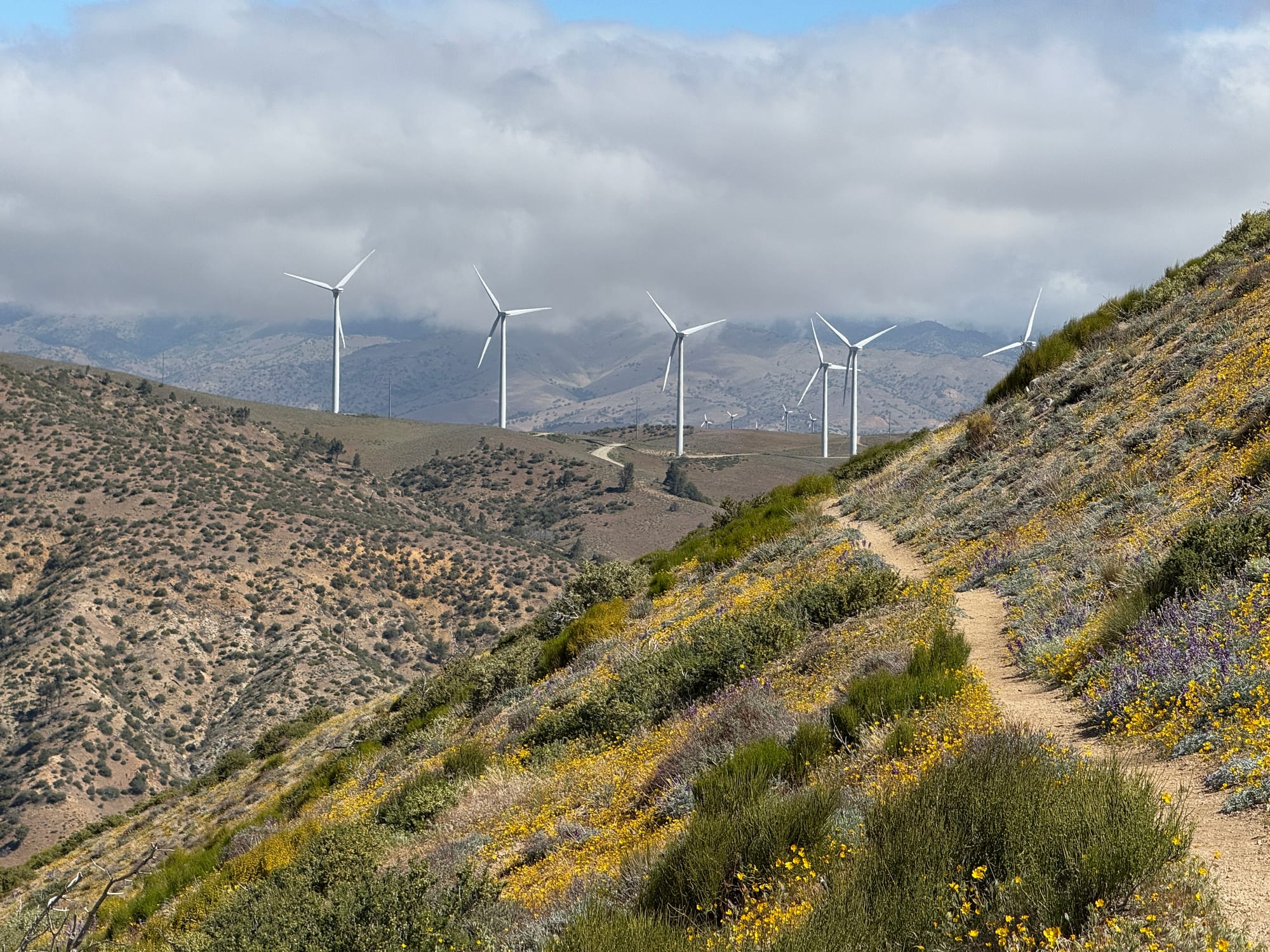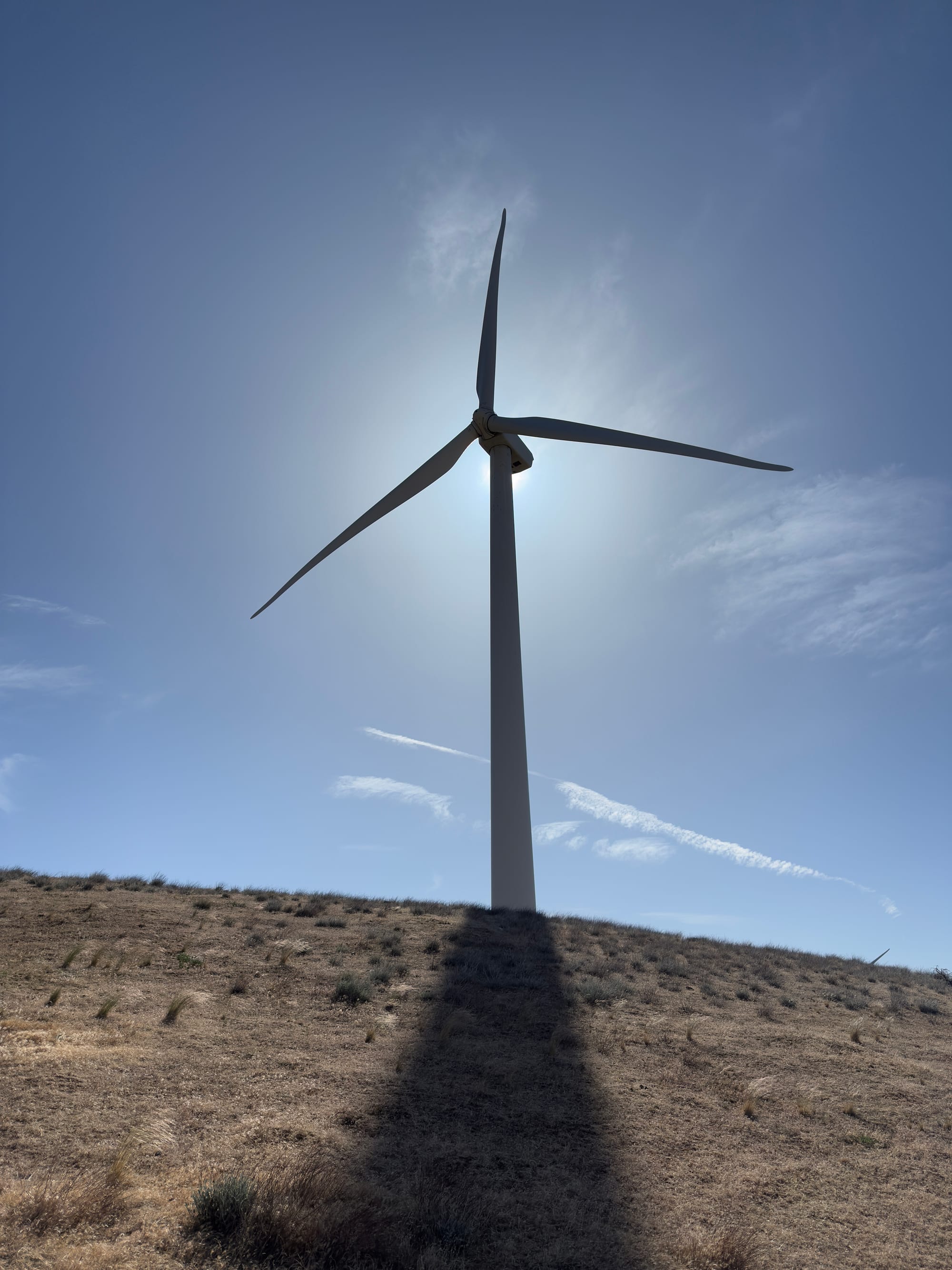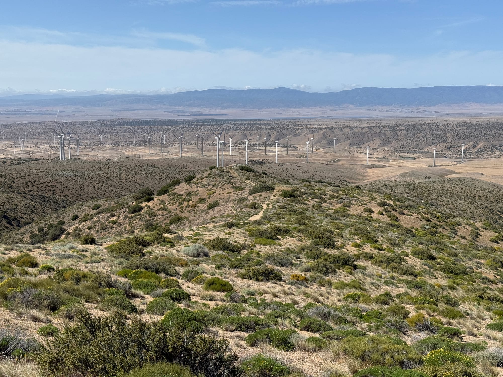7.7 miles of constant wind and the drone of windmills over an ever-steepening climb straight up the foothills may have been the hardest miles so far.