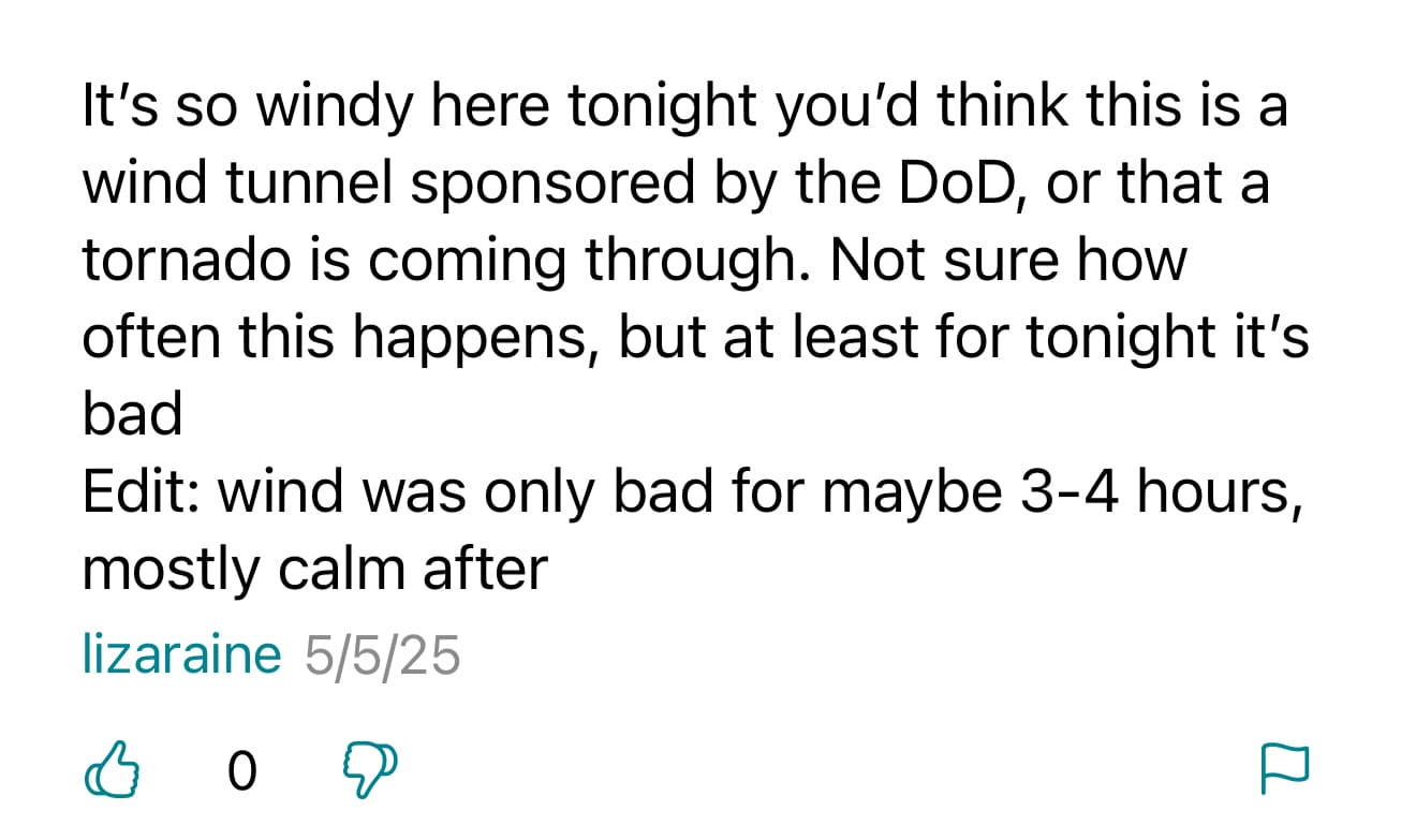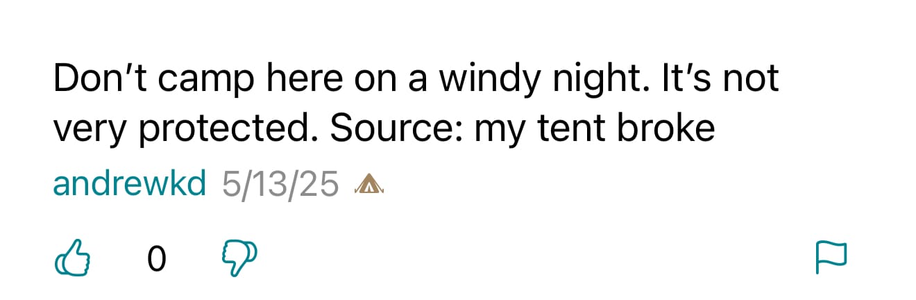 Probably should have heeded this warning about the tent sites in the ravine, but exhausted with 1600’ of climbing ahead, we hoped it would die down as the sun set. It didn’t.
