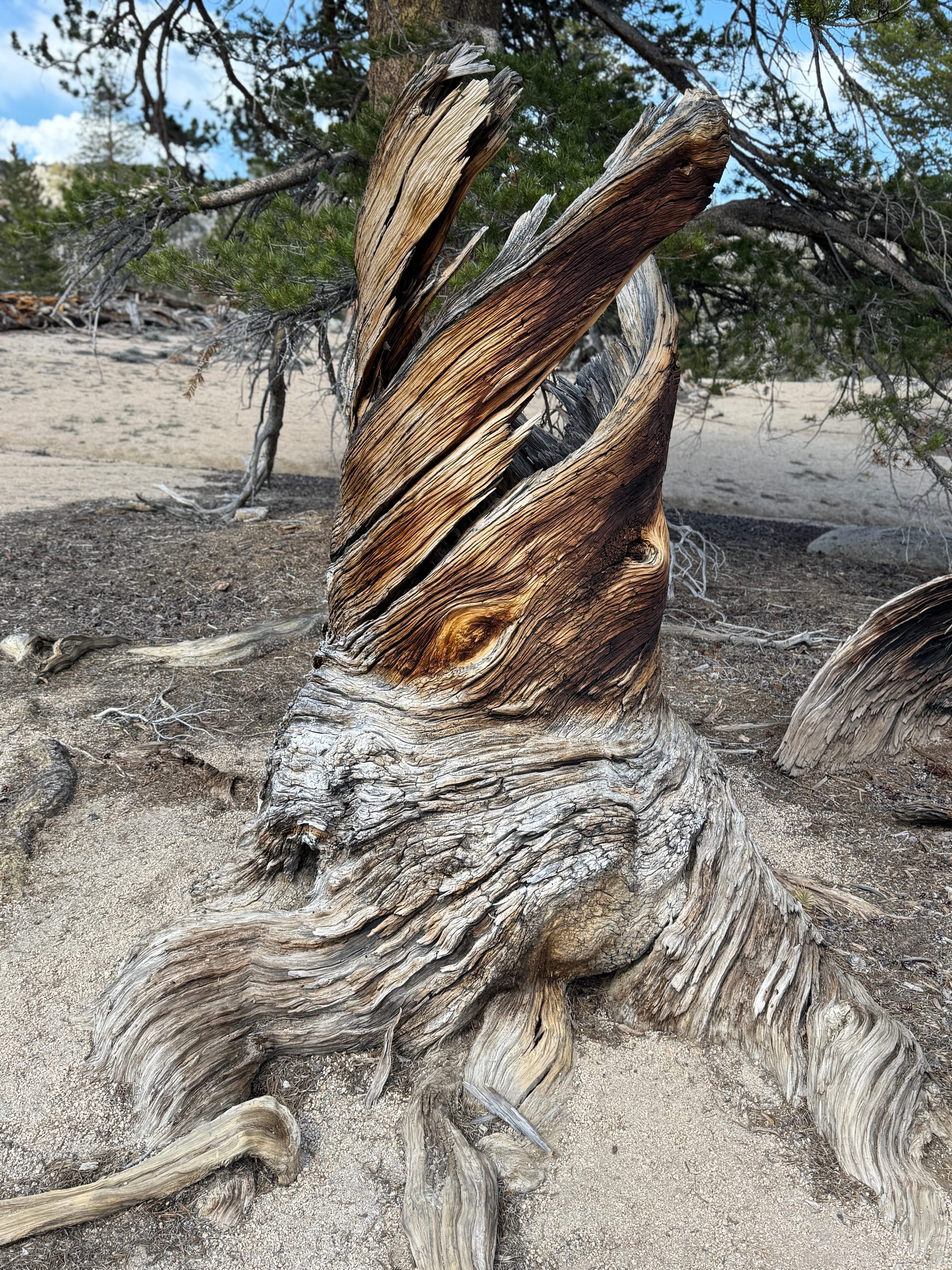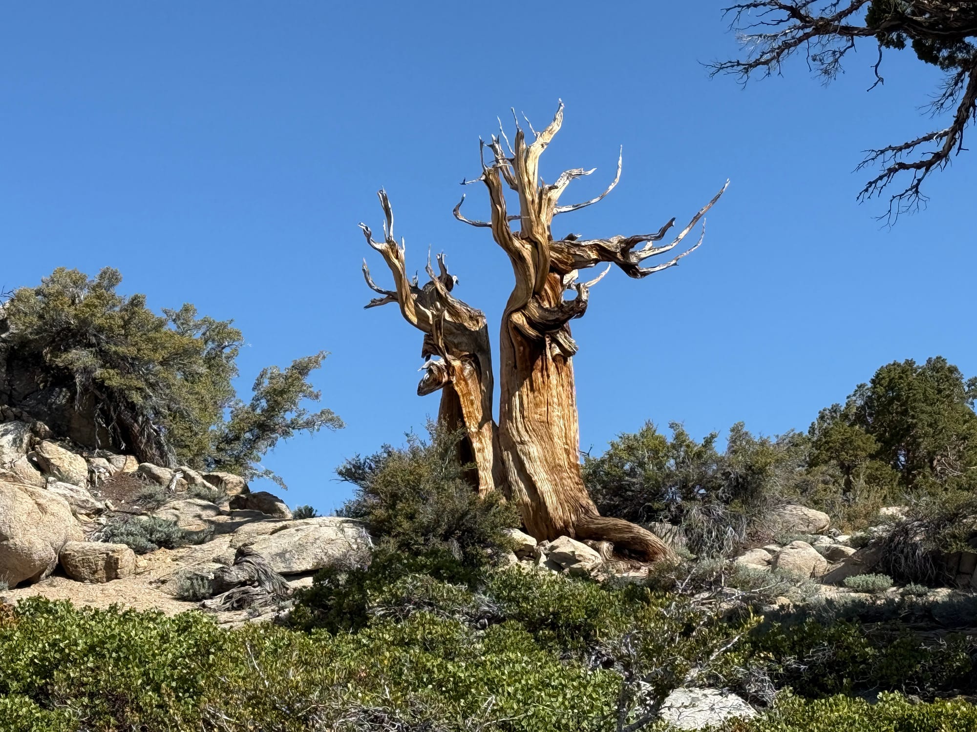 We had the pleasure to climb through a forest of them admiring their beautiful adaptive resiliency. In a modern world that largely equates beauty with fashionable conformity, the Bristlecone Pine thrives in harsh forms in harsh environments in harsh conditions. Beautiful.