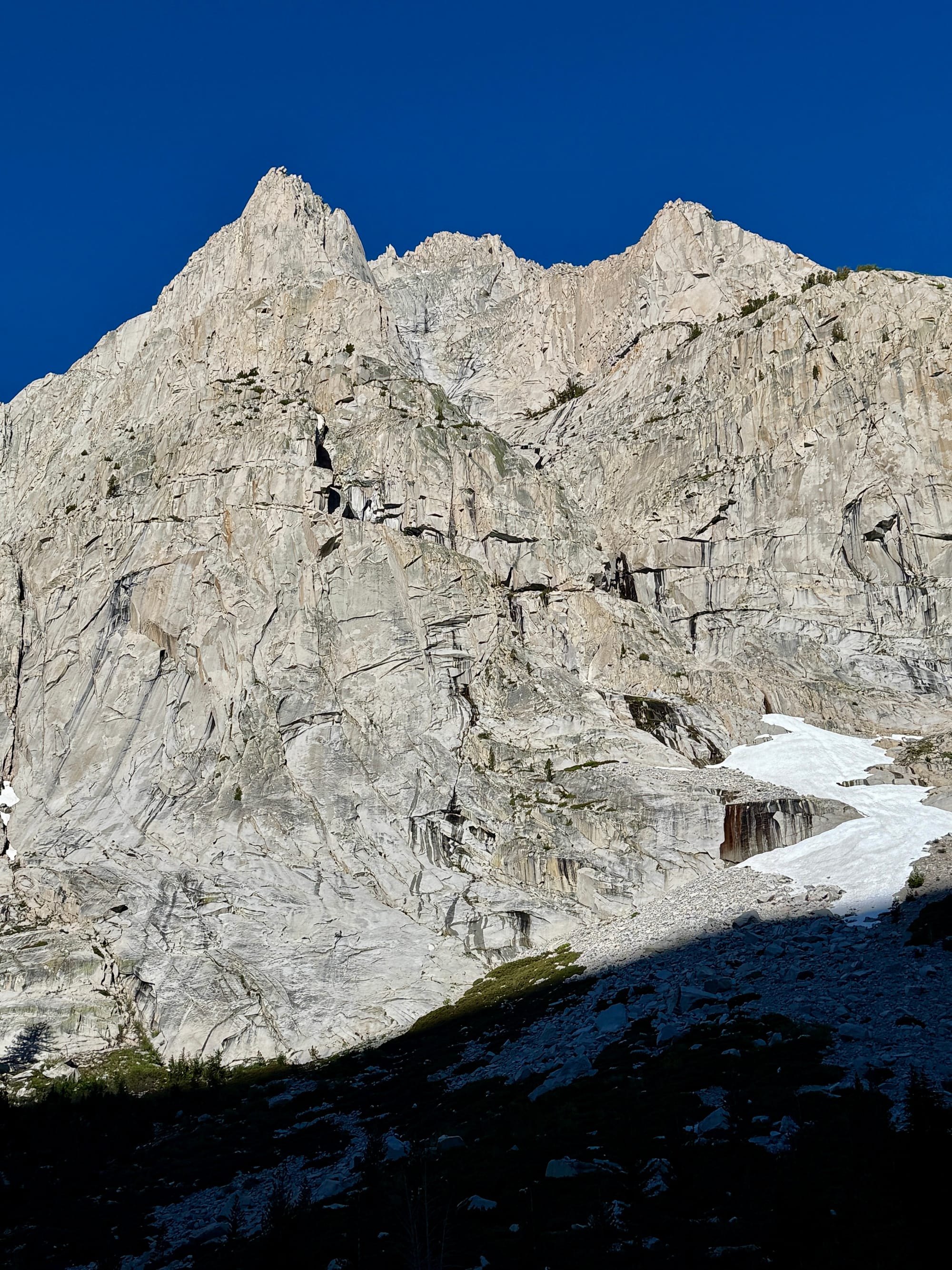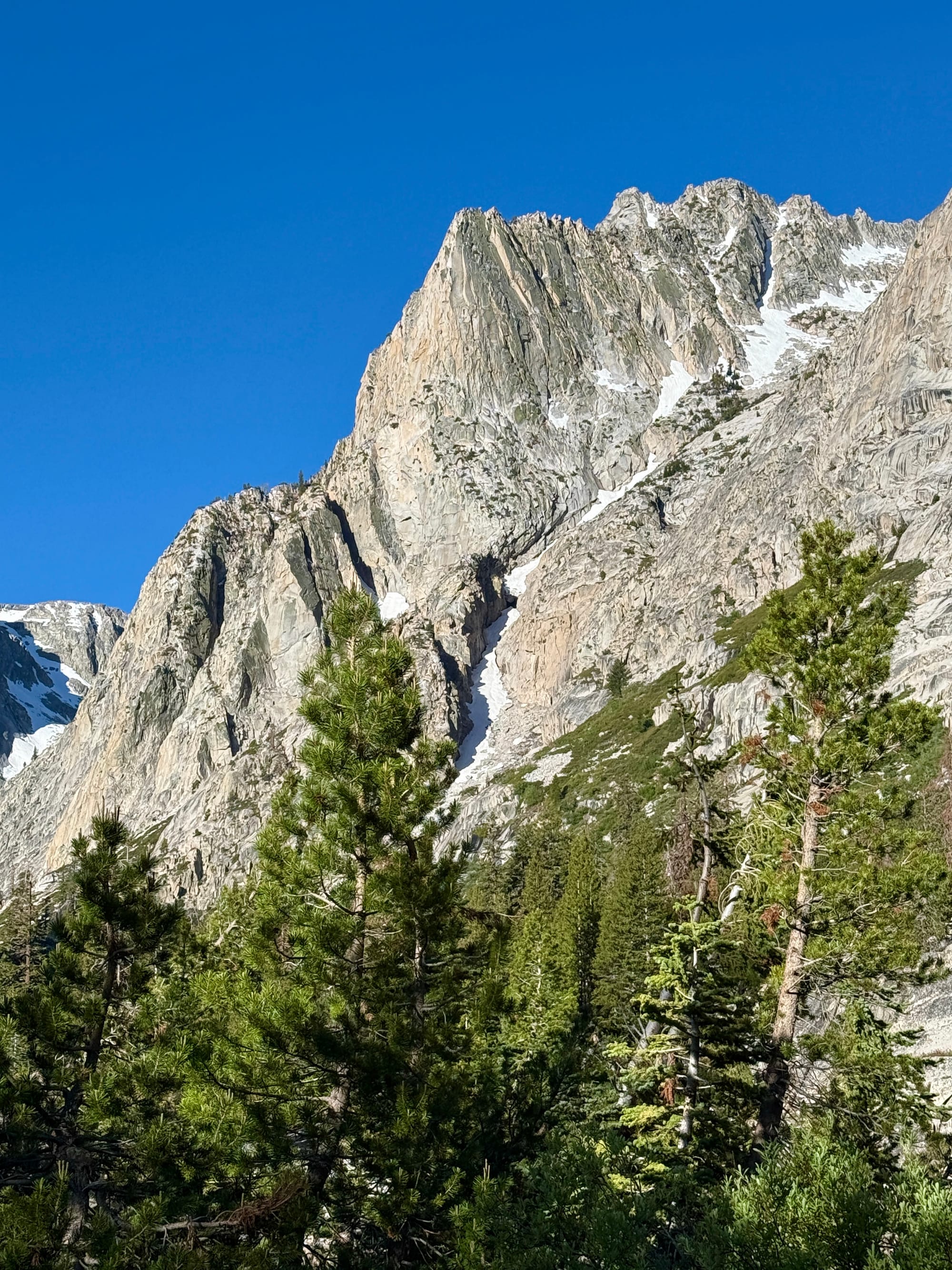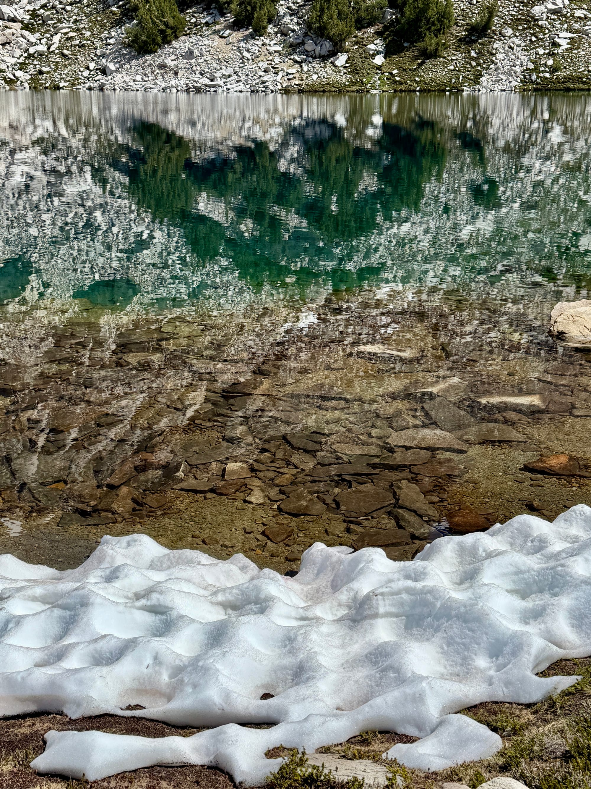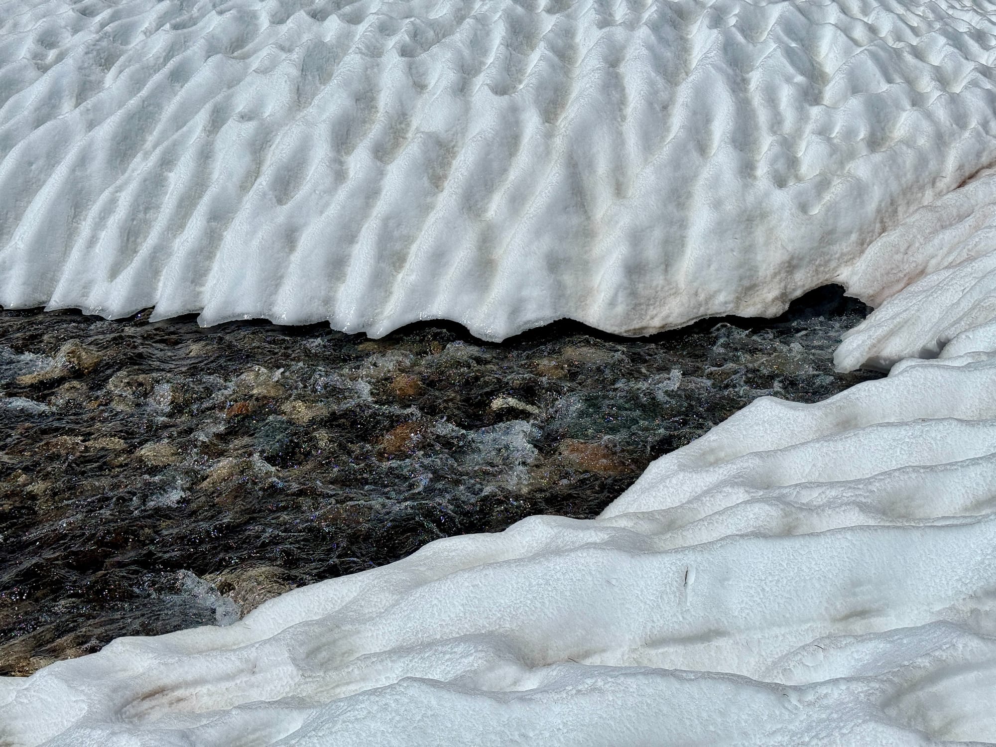We knew we’d find snow up there, but figured with the rapid snow melt that it would be relatively easy to traverse. We were very wrong as we found ~2.5 miles of snow covering the last miles of the ascent and ~3 miles covering the first miles of the descent. With 8 miles and a pretty late AM start, the boot-packed snow was traversable but soft and a slog to get through.