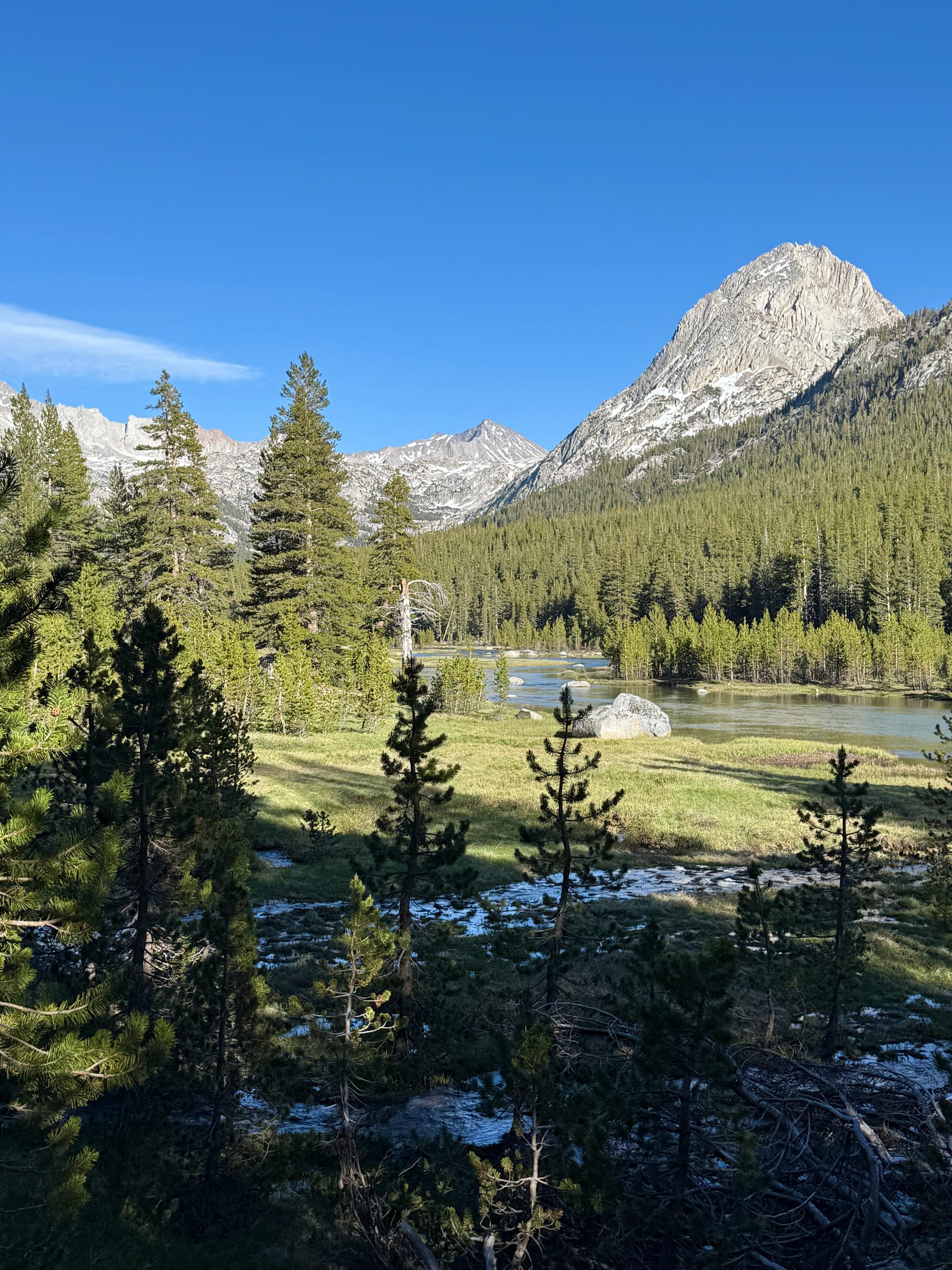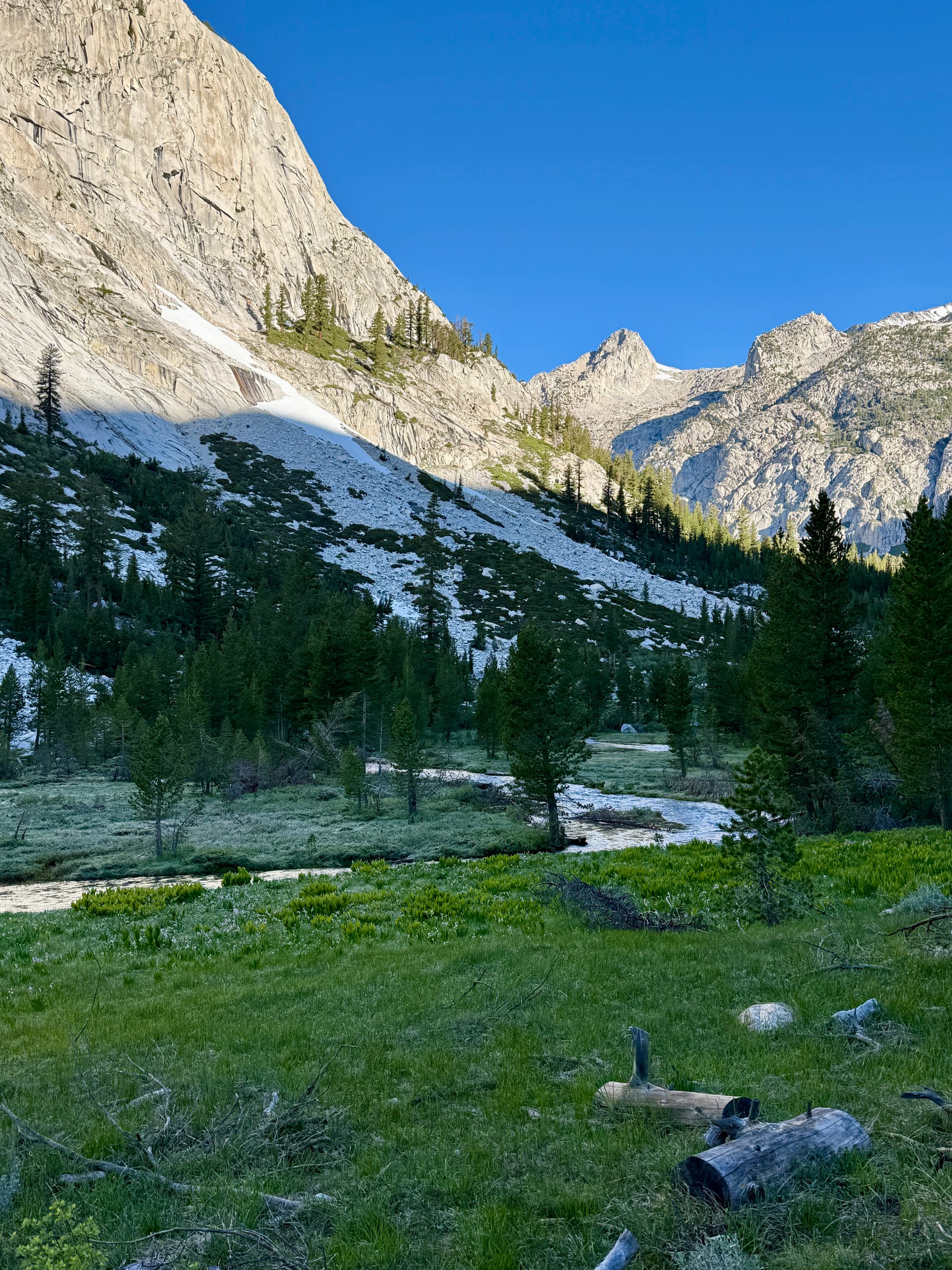 The granite king wasn’t guarding a holy grail, but he was watching over a spectacular meadow with waterfalls pouring into it from the granite cliffs above.