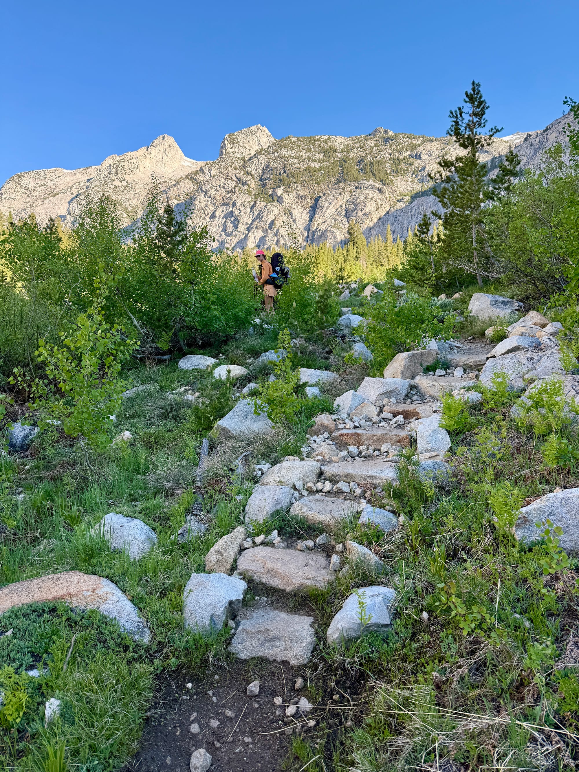 With nearly 22 miles between Mather and Muir Pass, we left ourselves 8 miles and 3,300 feet of ascent to reach the top of Muir Pass.
