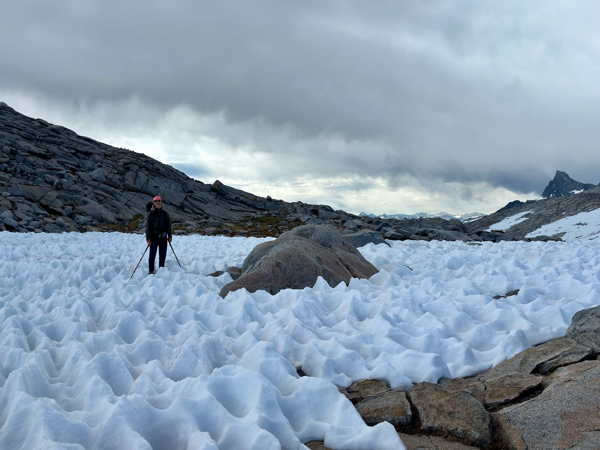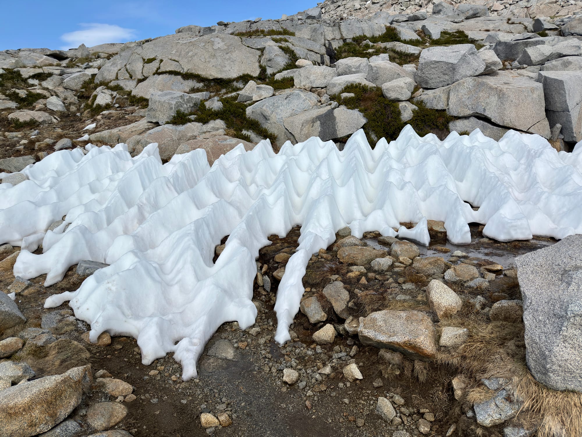Waterfalls everywhere. We’ve gone over enough passes and along enough ridges to understand that there are massive mountains with huge snow fields hiding just out of sight above.