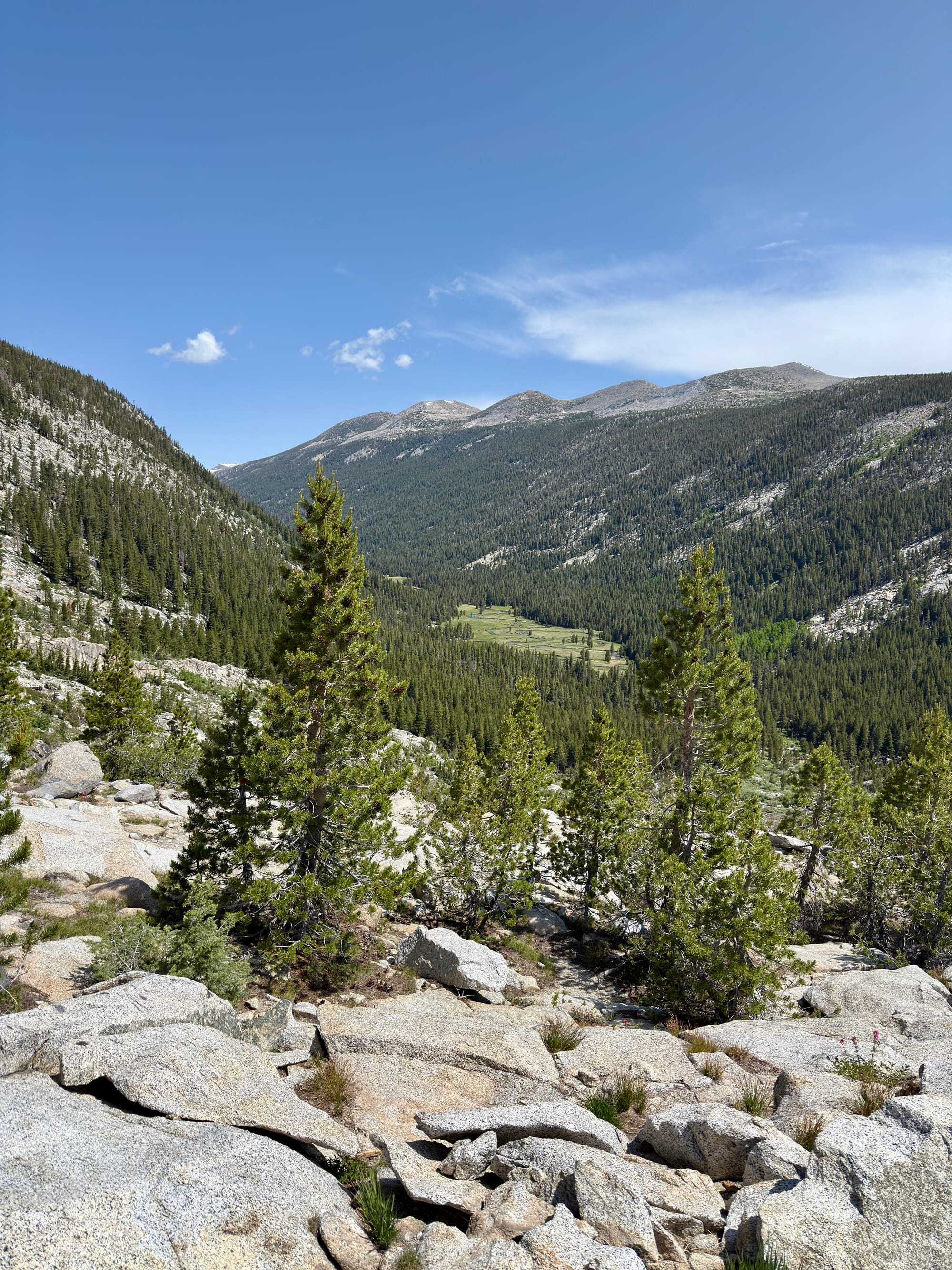 Connor at the Tuolumne Meadows Campground issued us wilderness permits for an overnight hike from Tenaya Lake up and over Clouds Rest into Yosemite Valley - exactly what I had in mind when we walked in. He told us he had three available and had been trying to convince people to take them all day. The trail provides!
