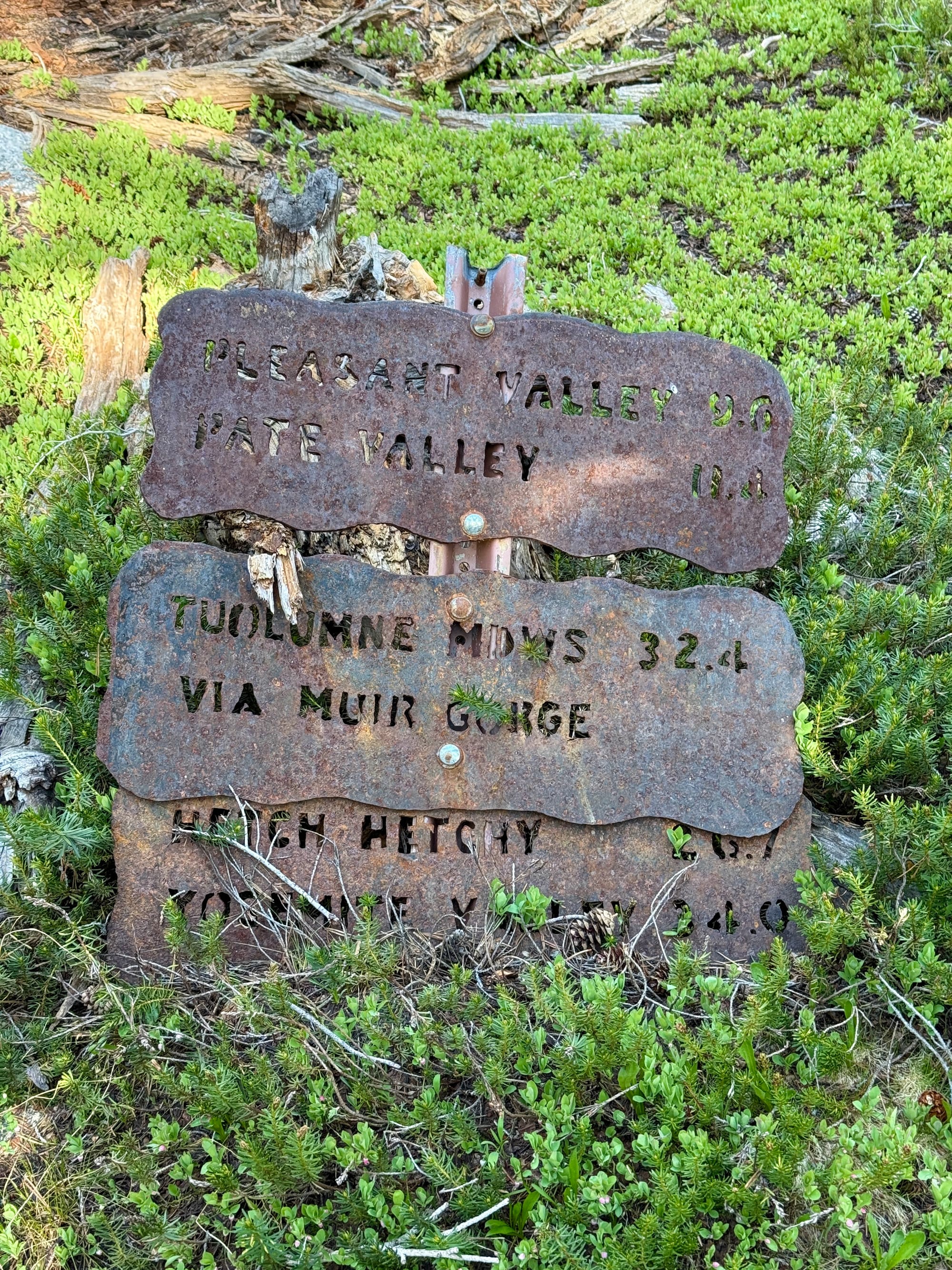 This metal Pacific Crest Trail sign has seen better days. Nature is unbelievably efficient at restoring itself given a chance.