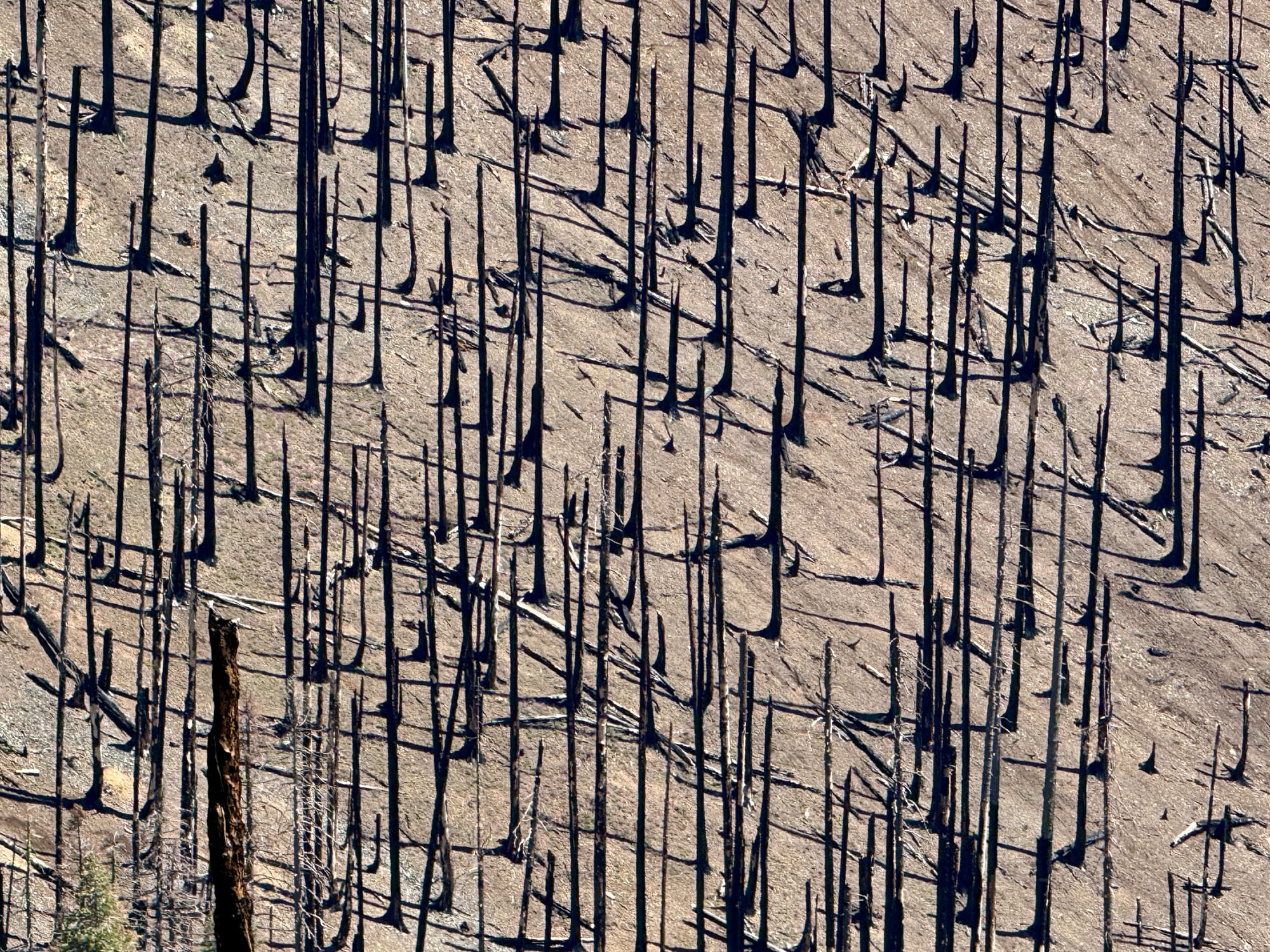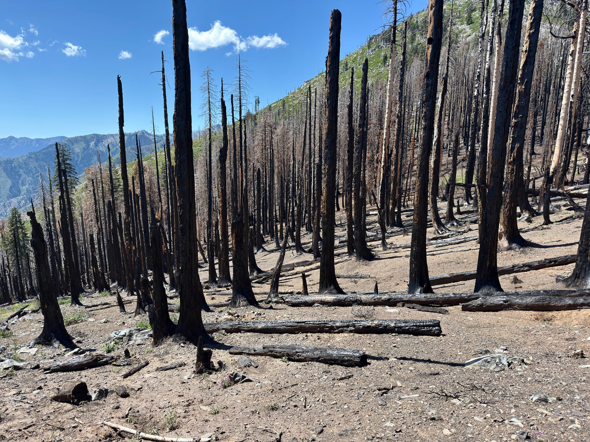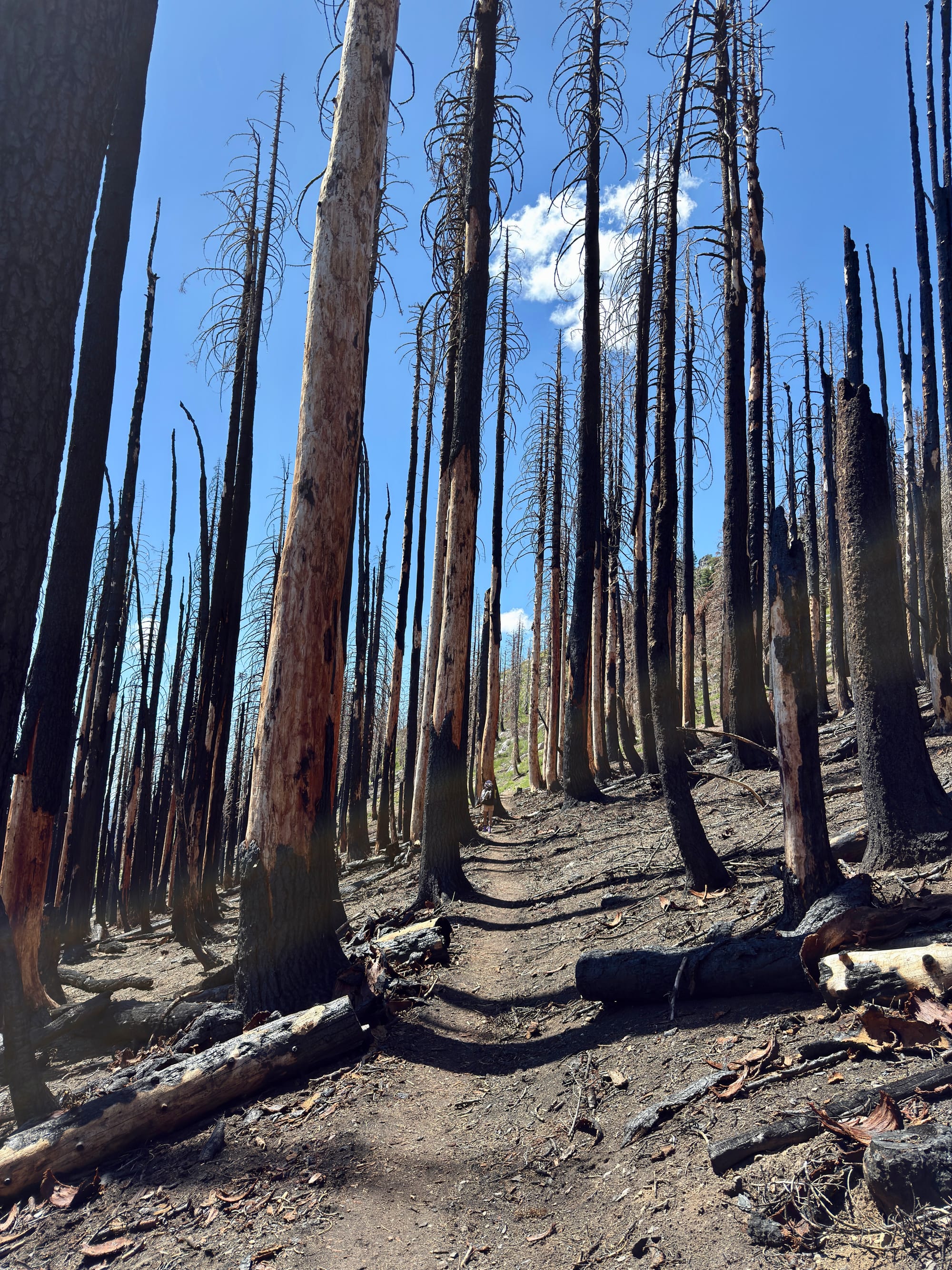 These forests have been through half a dozen different fires in recent years. You can see the different ages of burn scar and post fire brush, but not many trees are growing back.