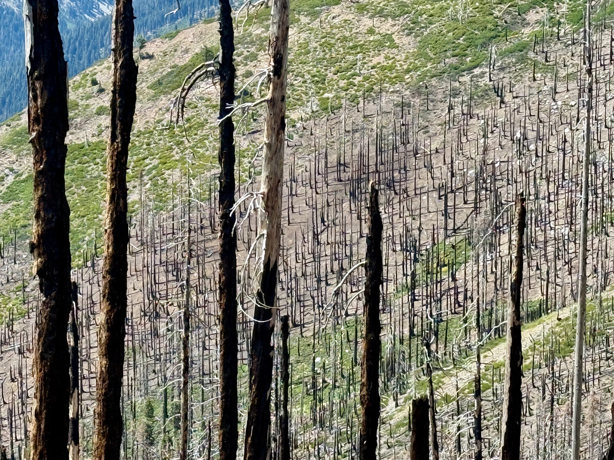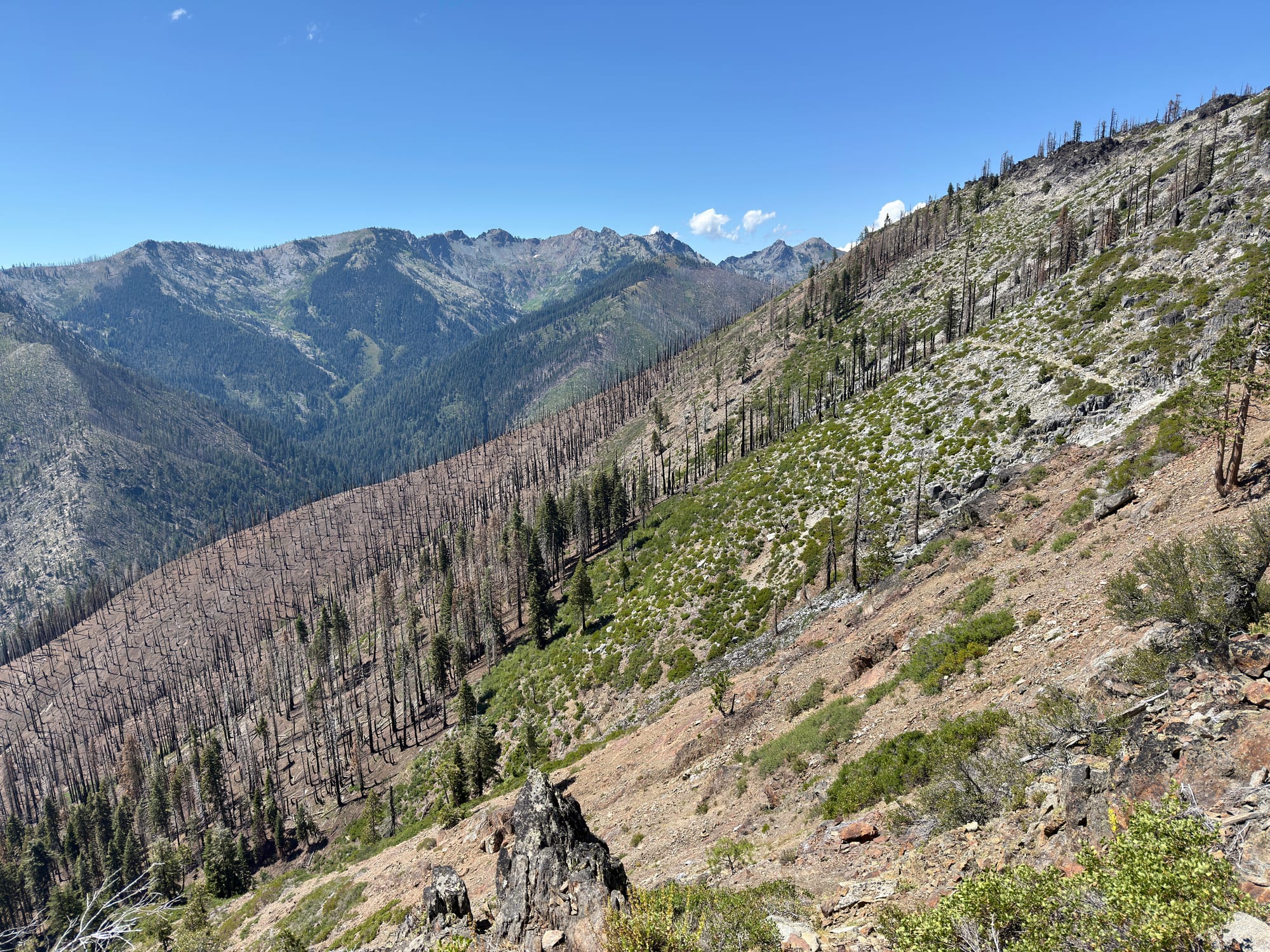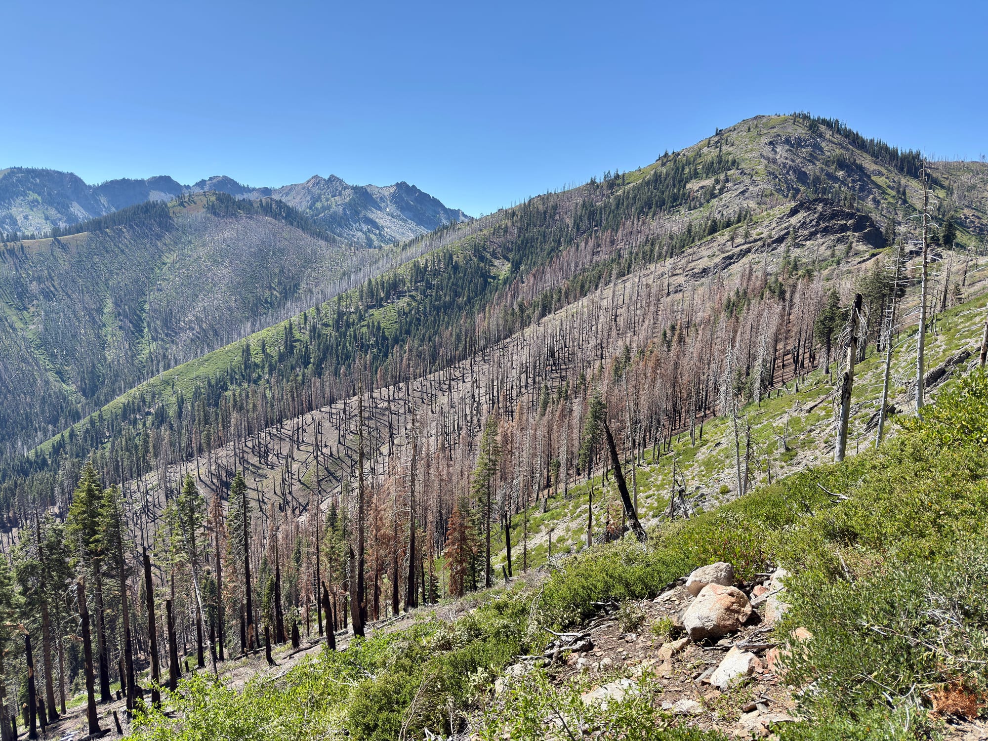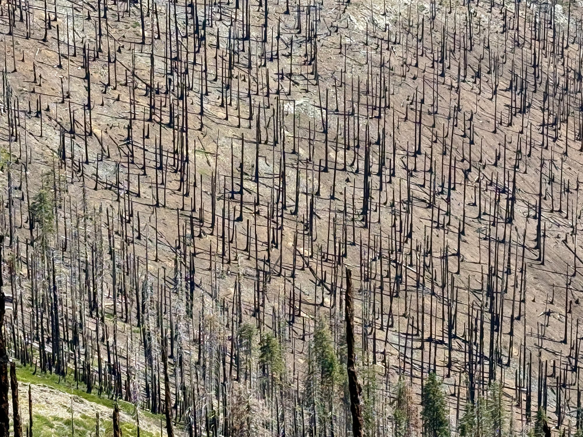These forests have been through half a dozen different fires in recent years. You can see the different ages of burn scar and post fire brush, but not many trees are growing back.