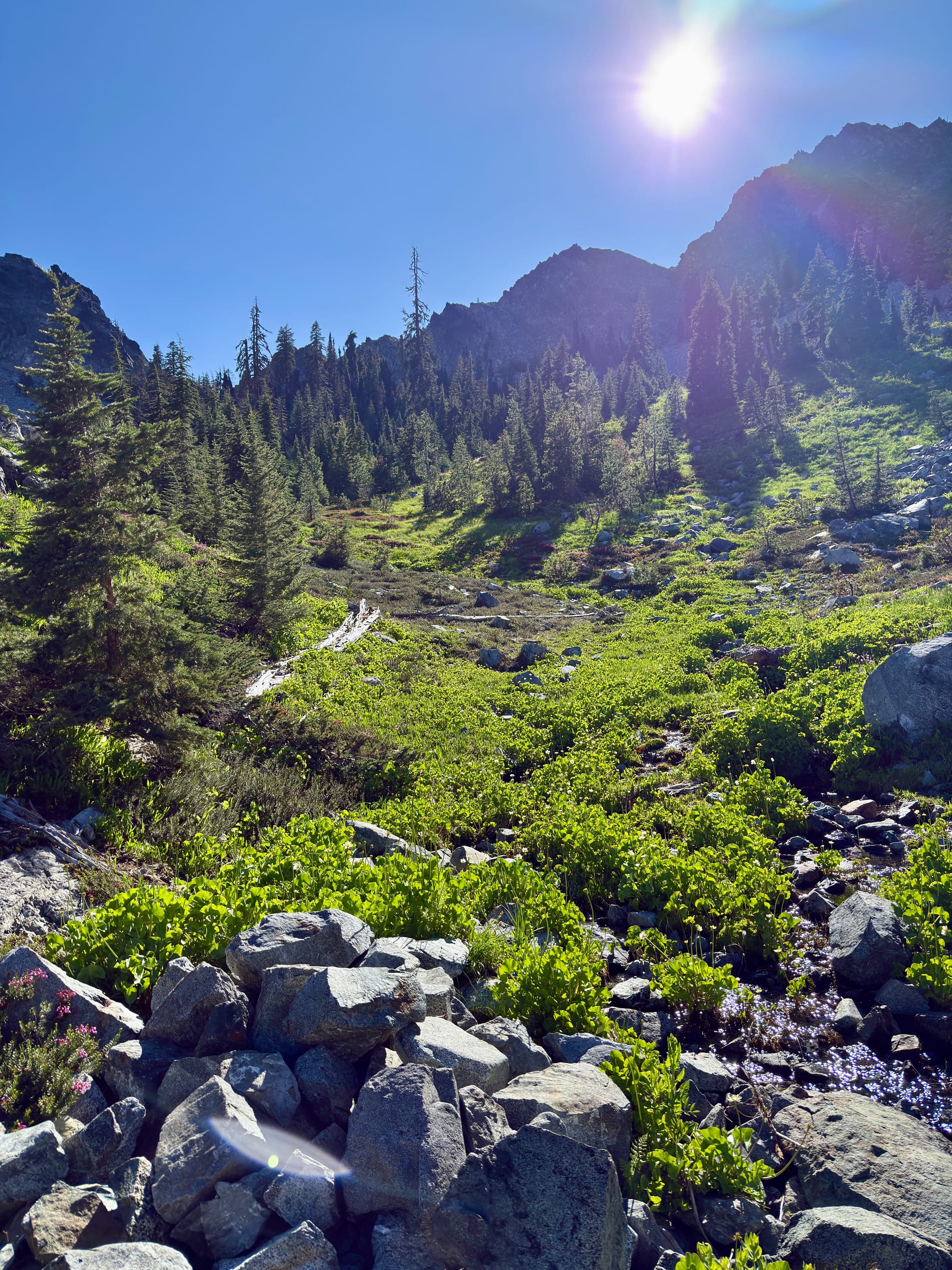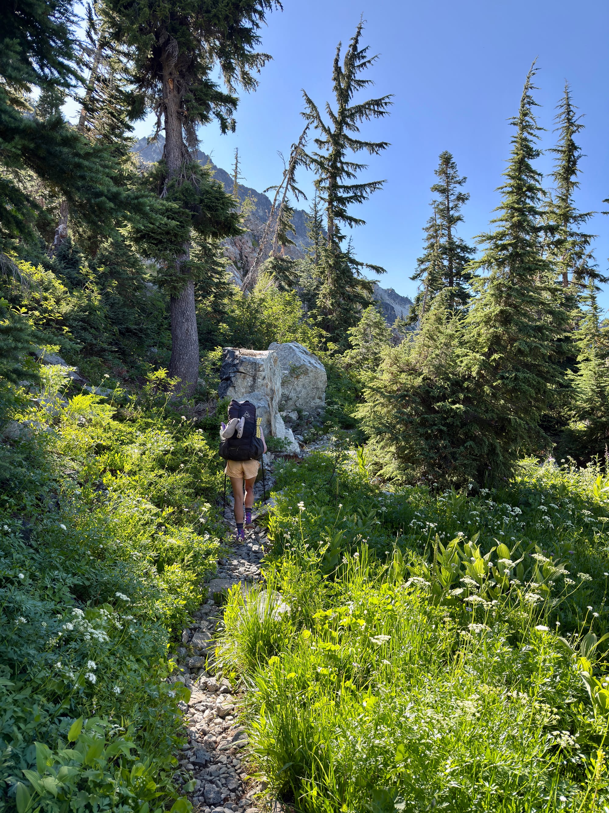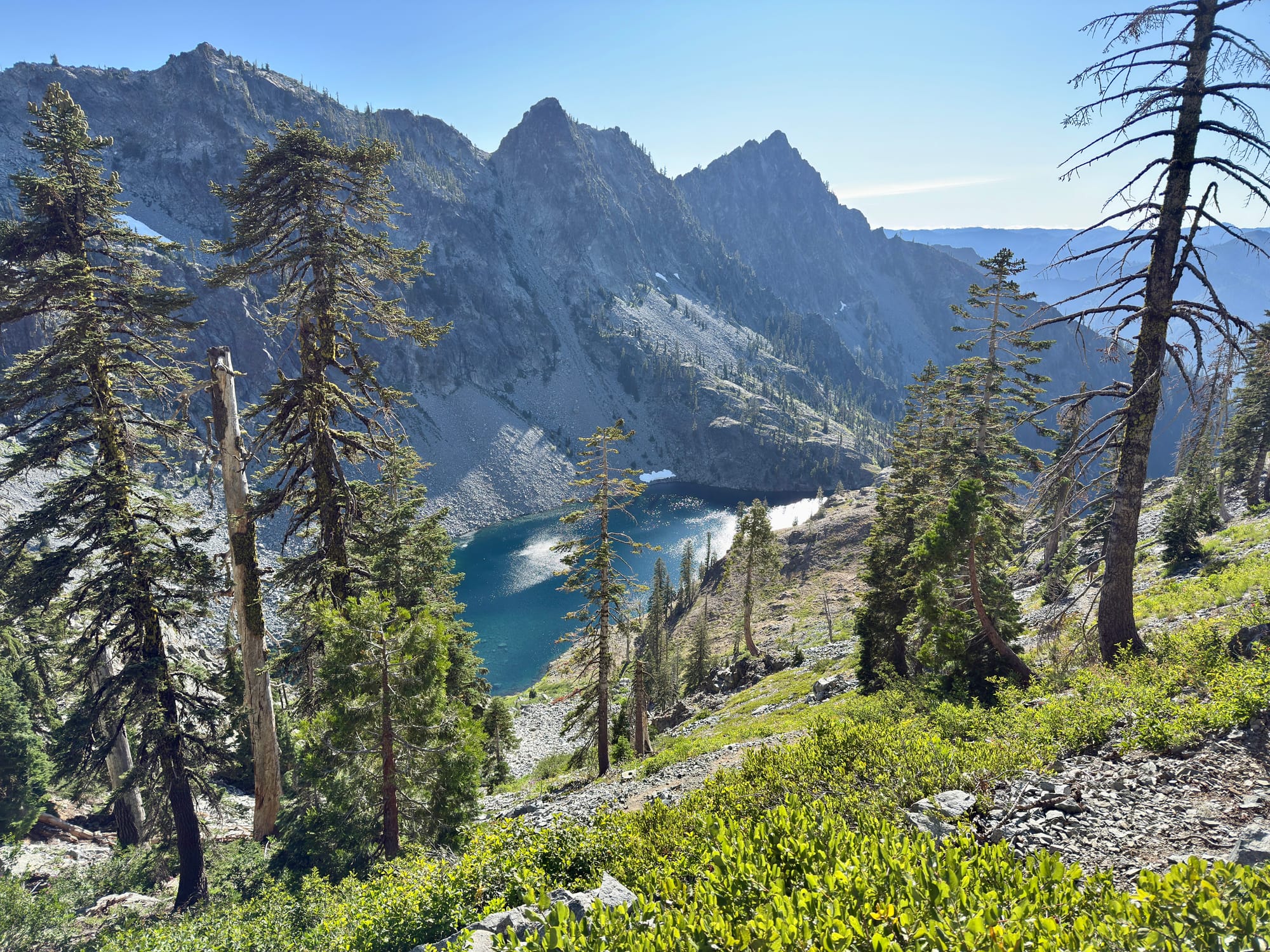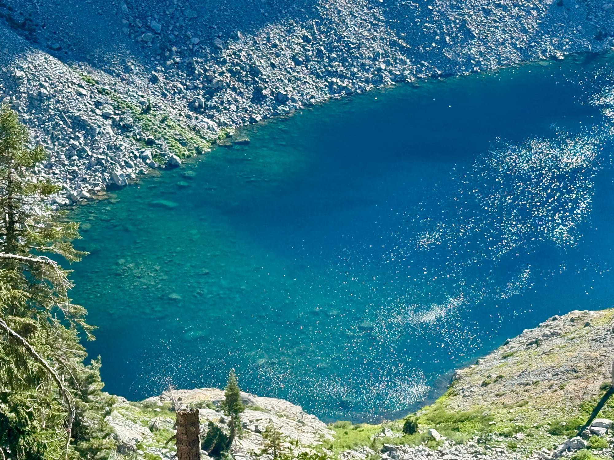 The trail brought us up through a keyhole in the ridge above this insanely clear blue lake.