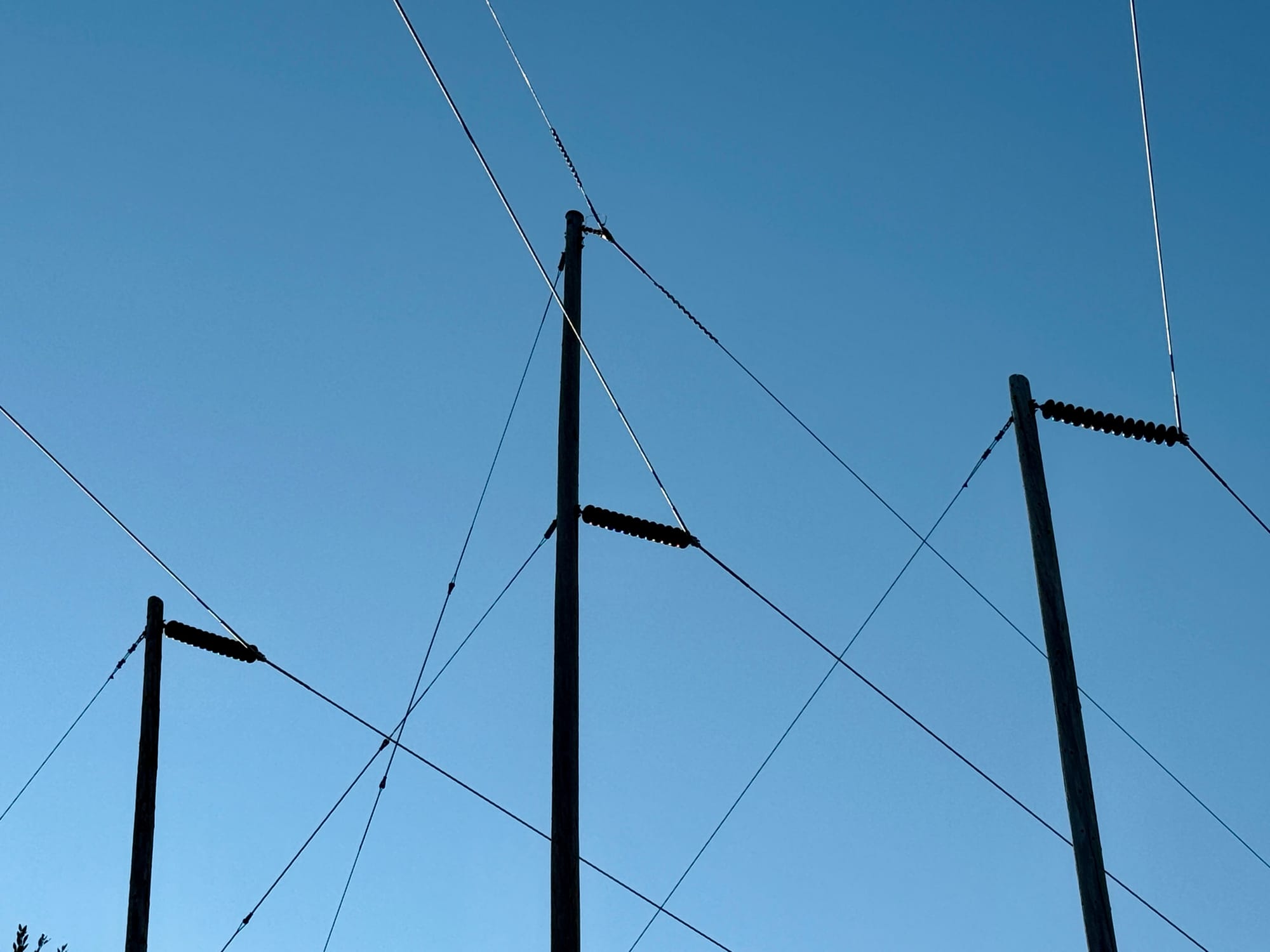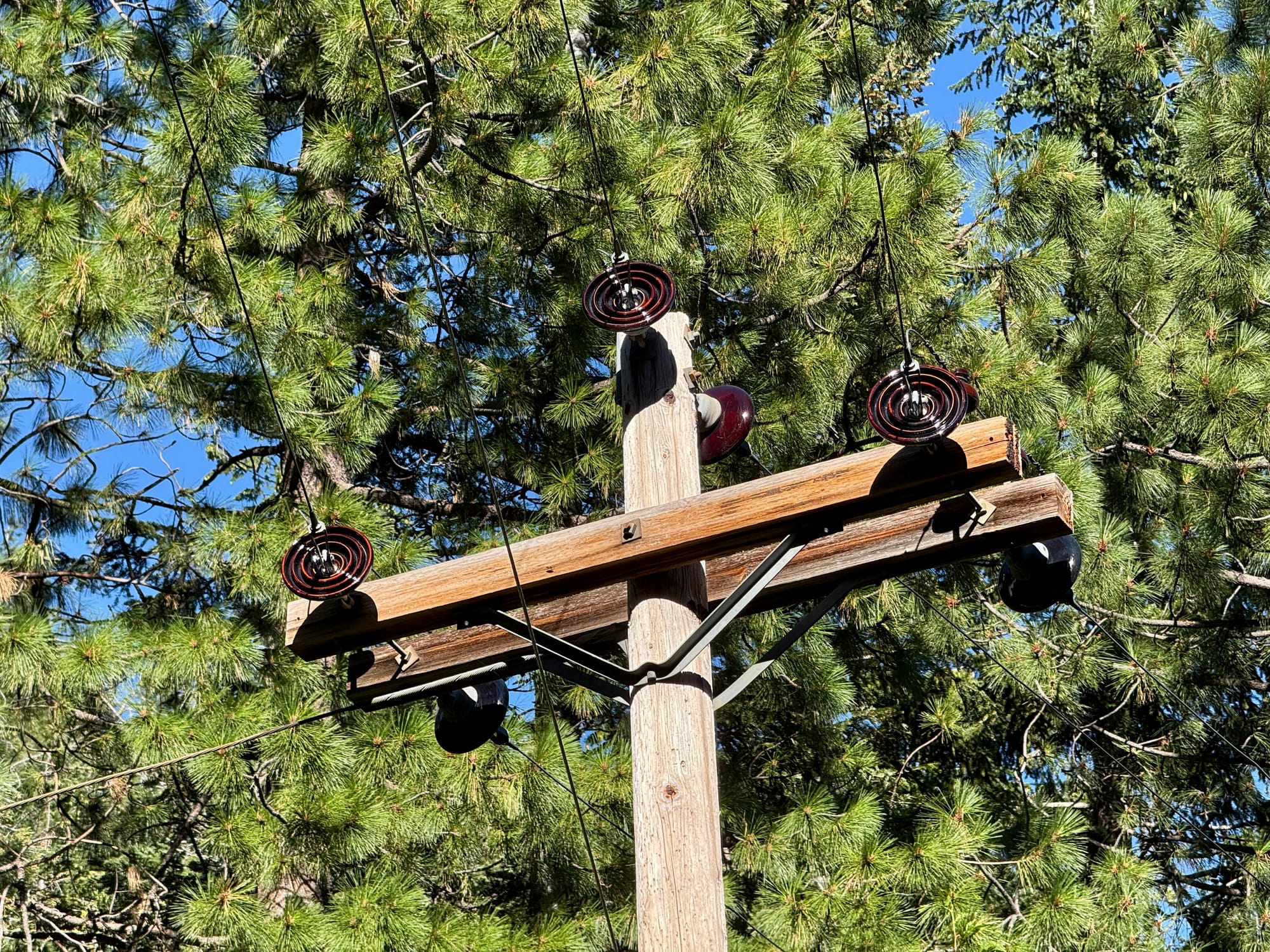 Interesting to see ceramic insulators on the power lines. It seems like most wild fires start from power lines at this point.