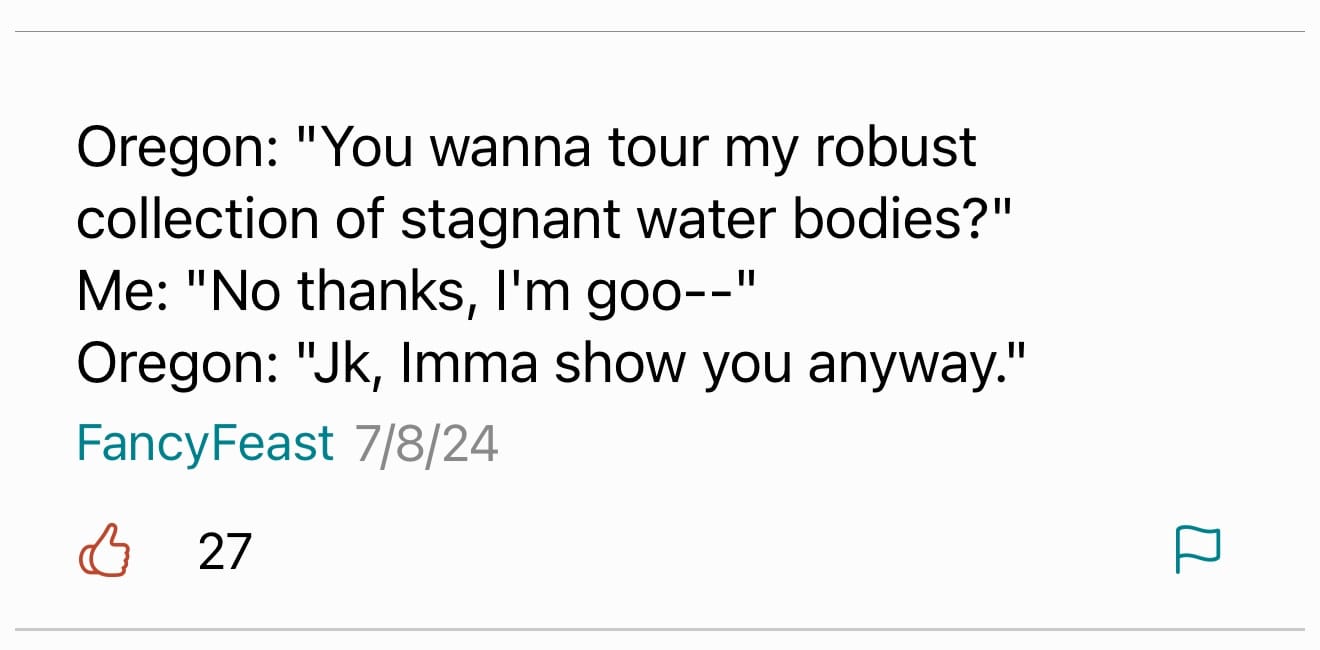 It was our first real break since Ashland a couple hundred miles back after we sort of blew through Crater Lake when the power was out. We leaned into it and relaxed while catching up on some chores.