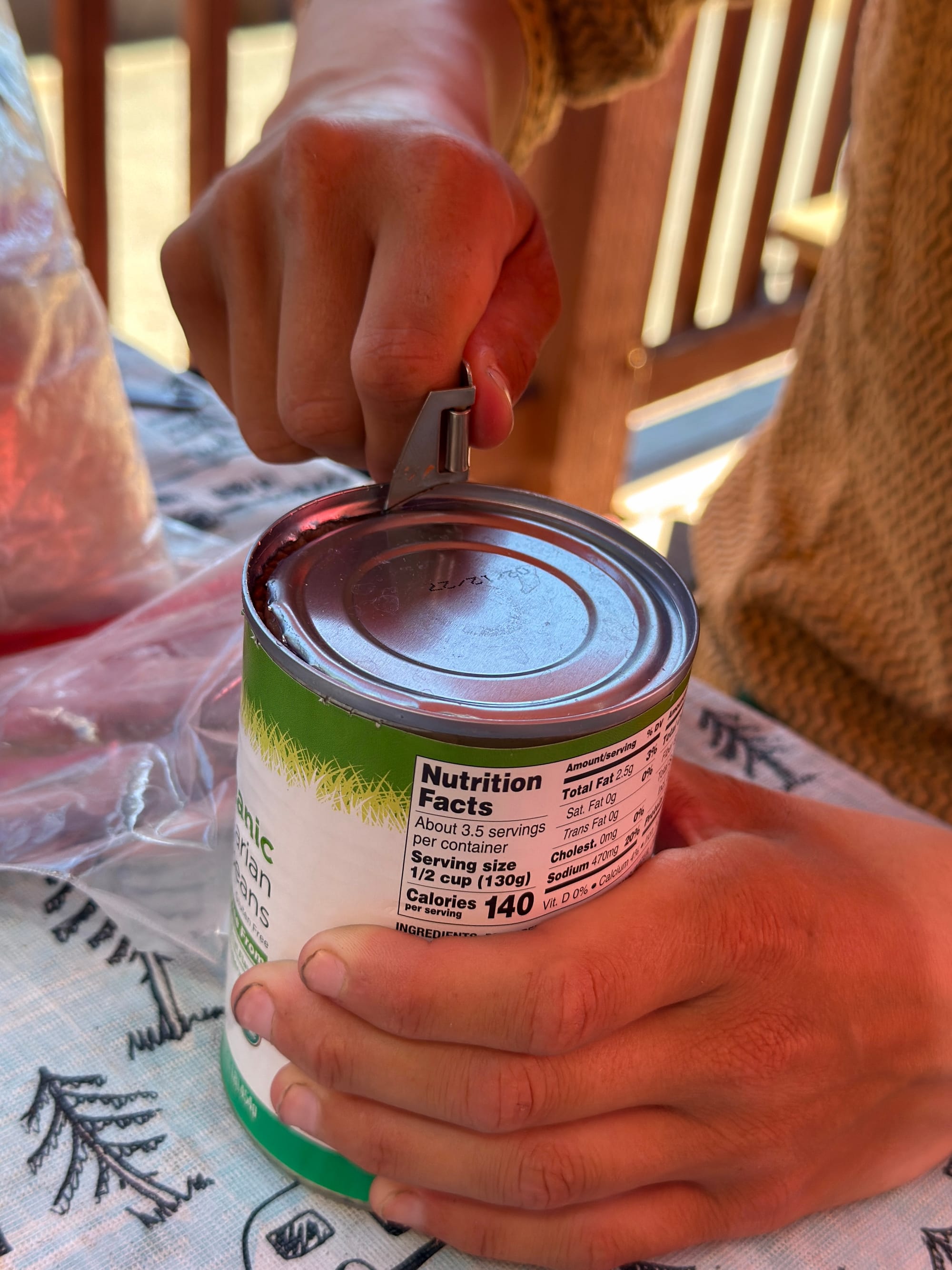 Our very sketchy manual can opener. We haven’t drawn blood yet. Knock on wood!