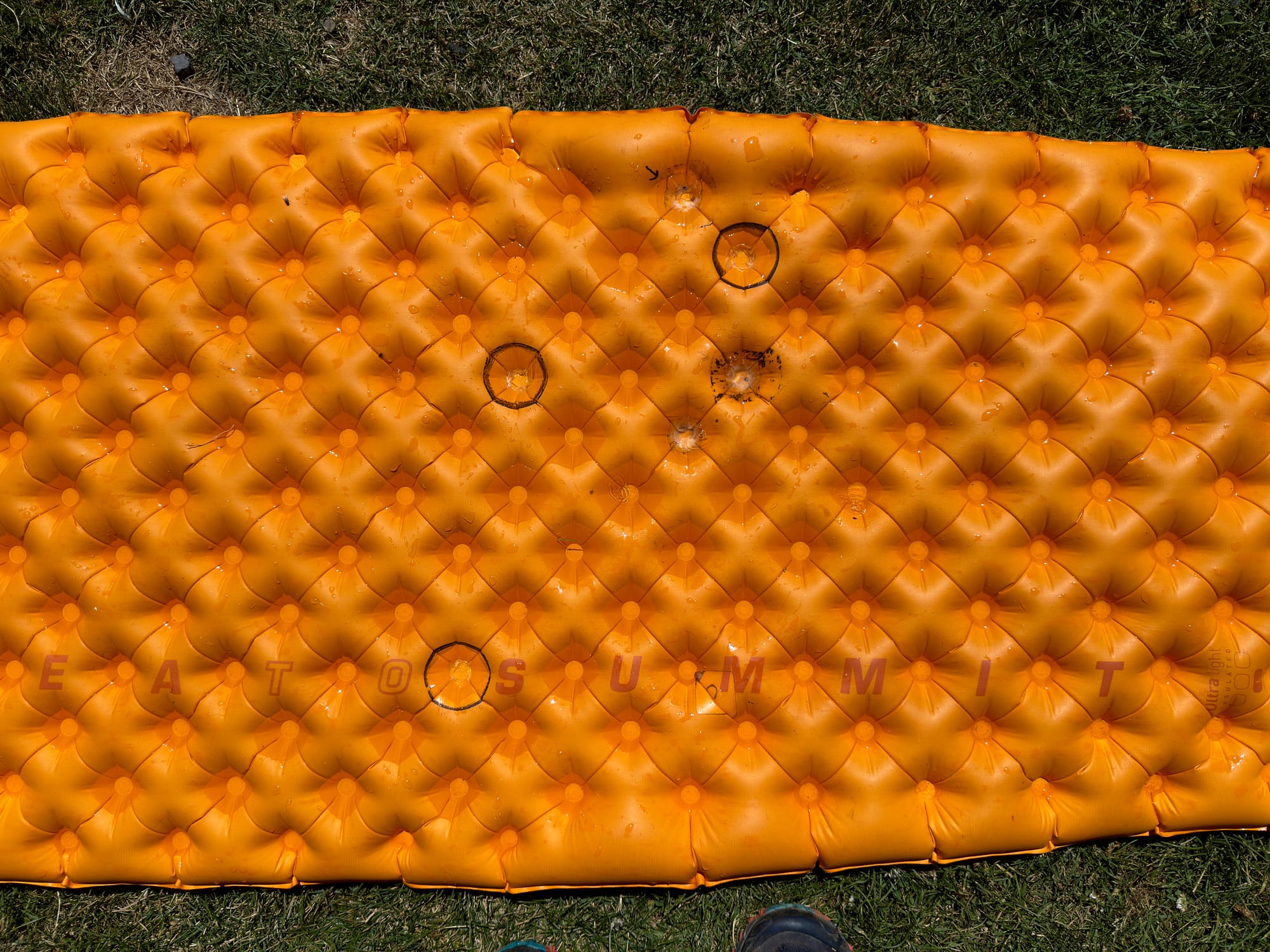 Our biggest chore was repairing our leaky sleeping pads. Kristin‘s pad already had 8+ repairs and we re-did 5 of them plus a couple of new leaks.