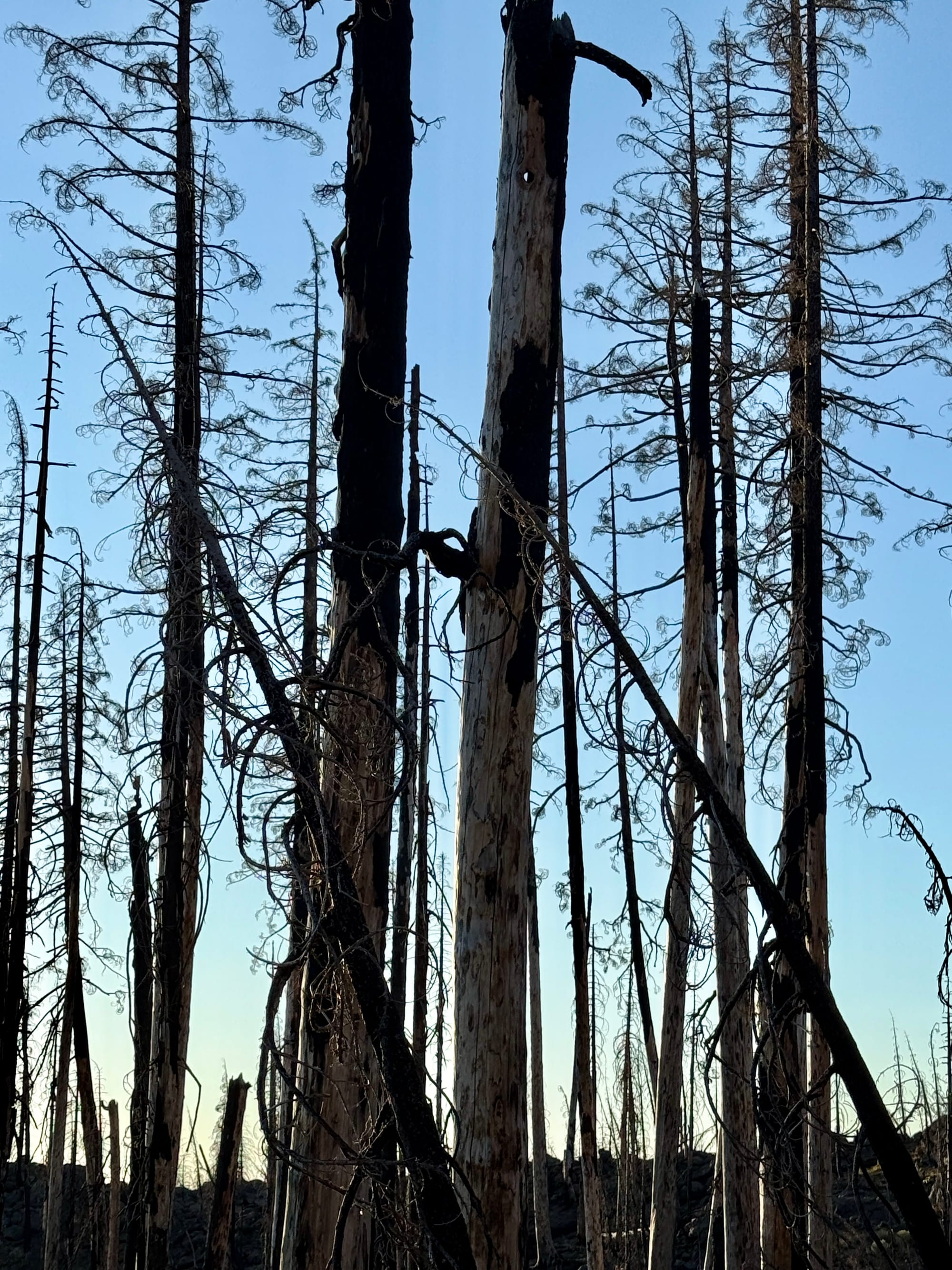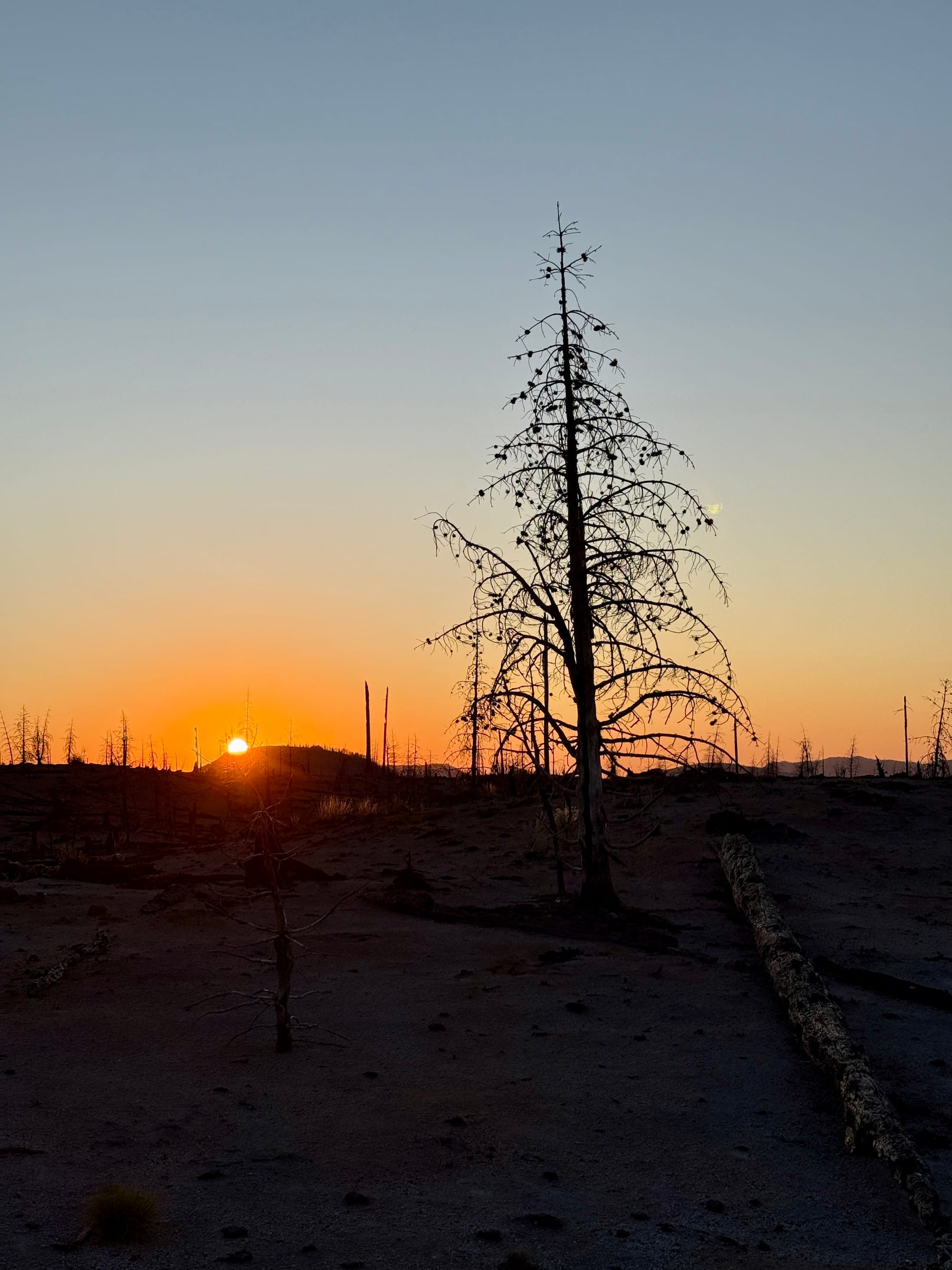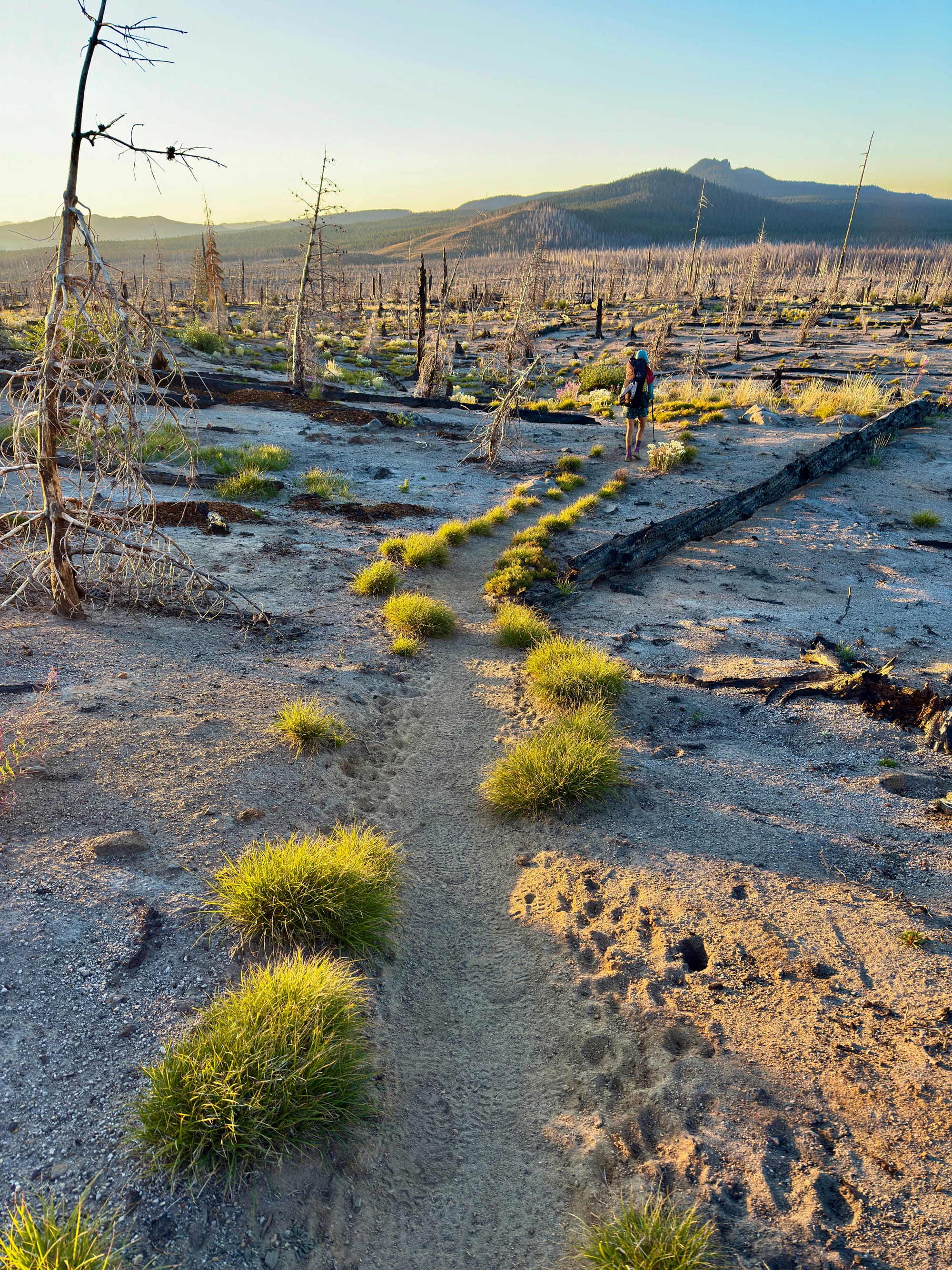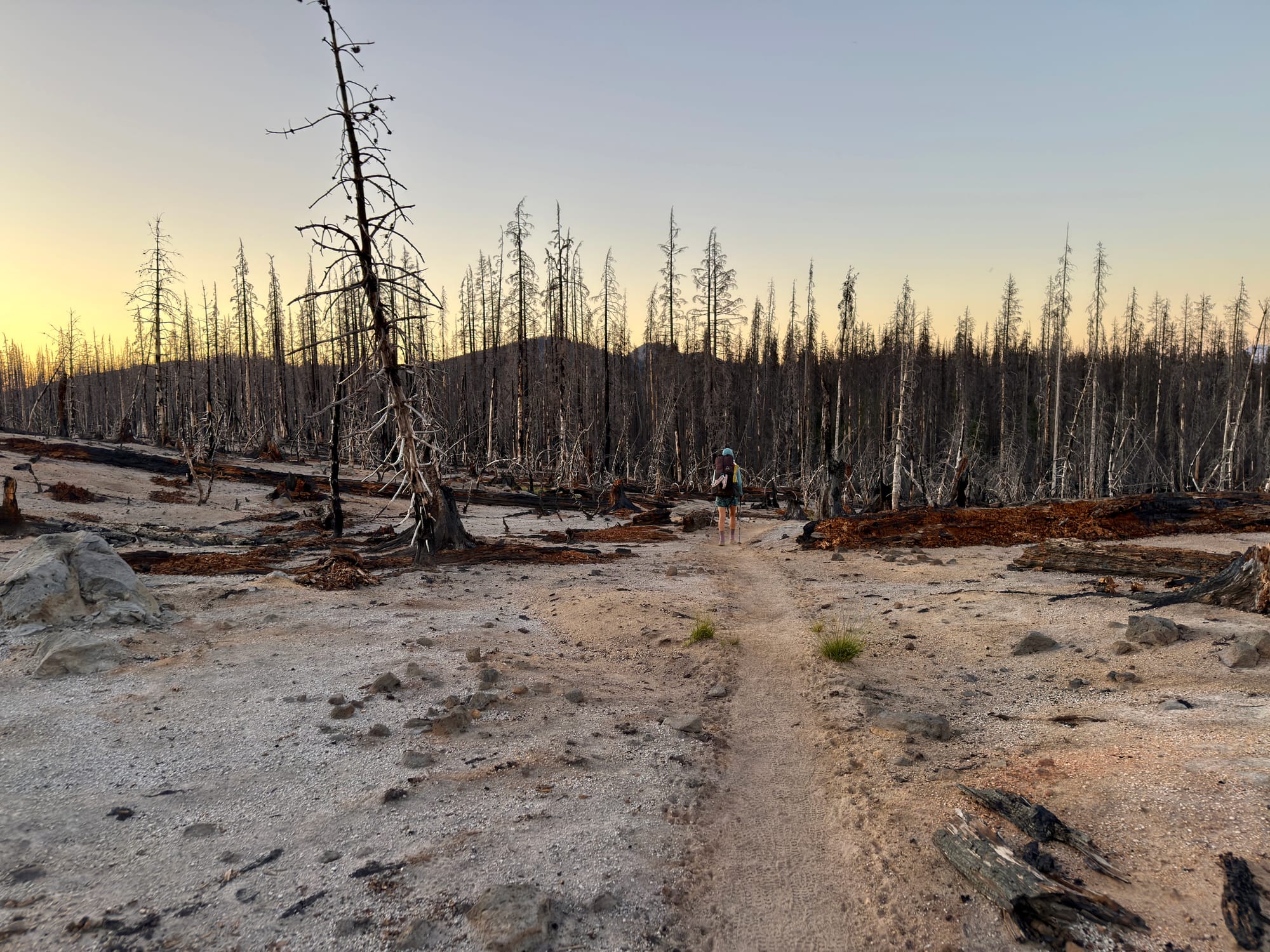 After a pretty flat walk through a forest to Charlton Lake, we set out to push 4-5 miles through a burned area while the sun was low in the sky. It turned out to be one of the most memorable evenings yet - Very Tim Burtonesque.