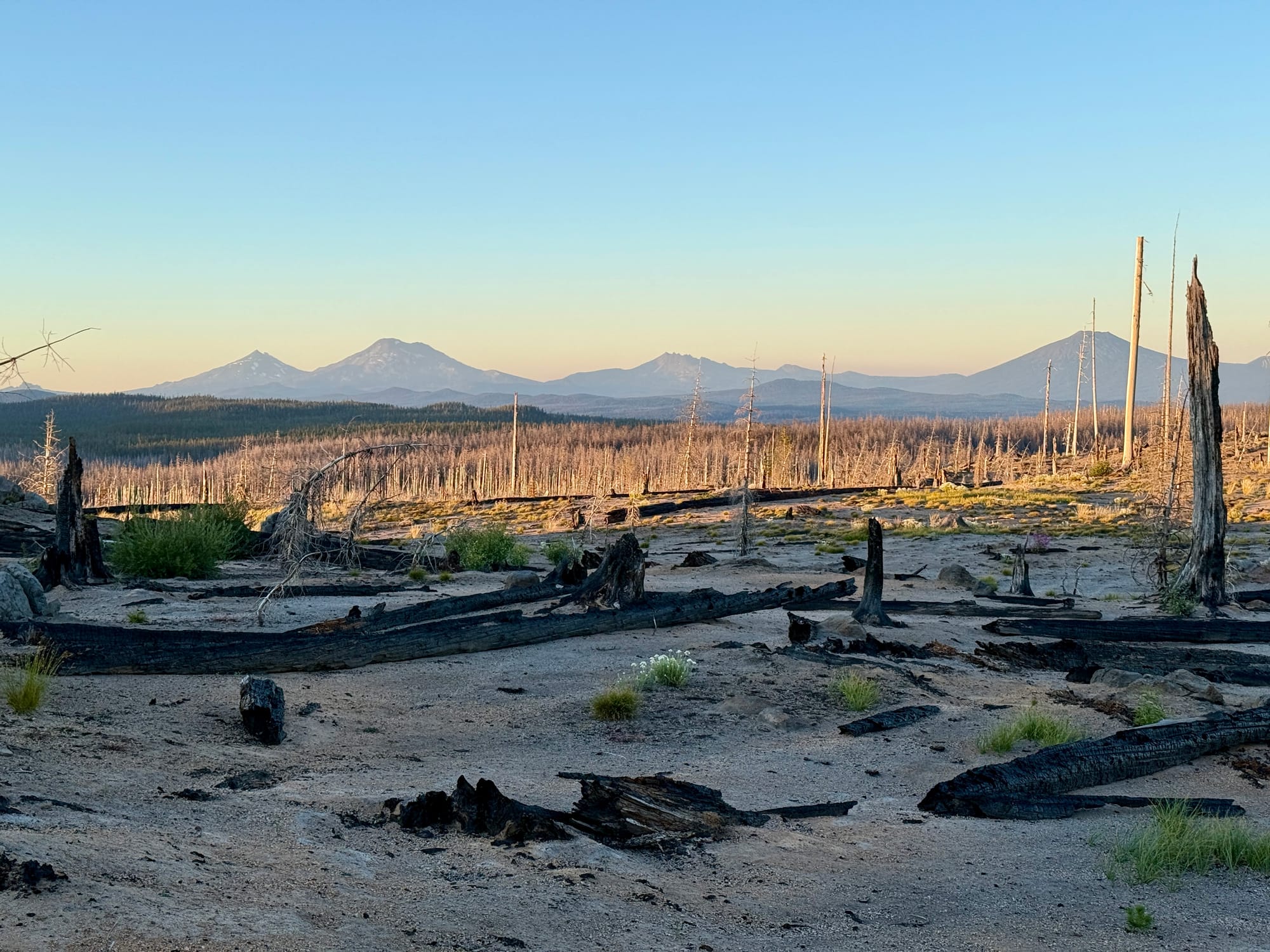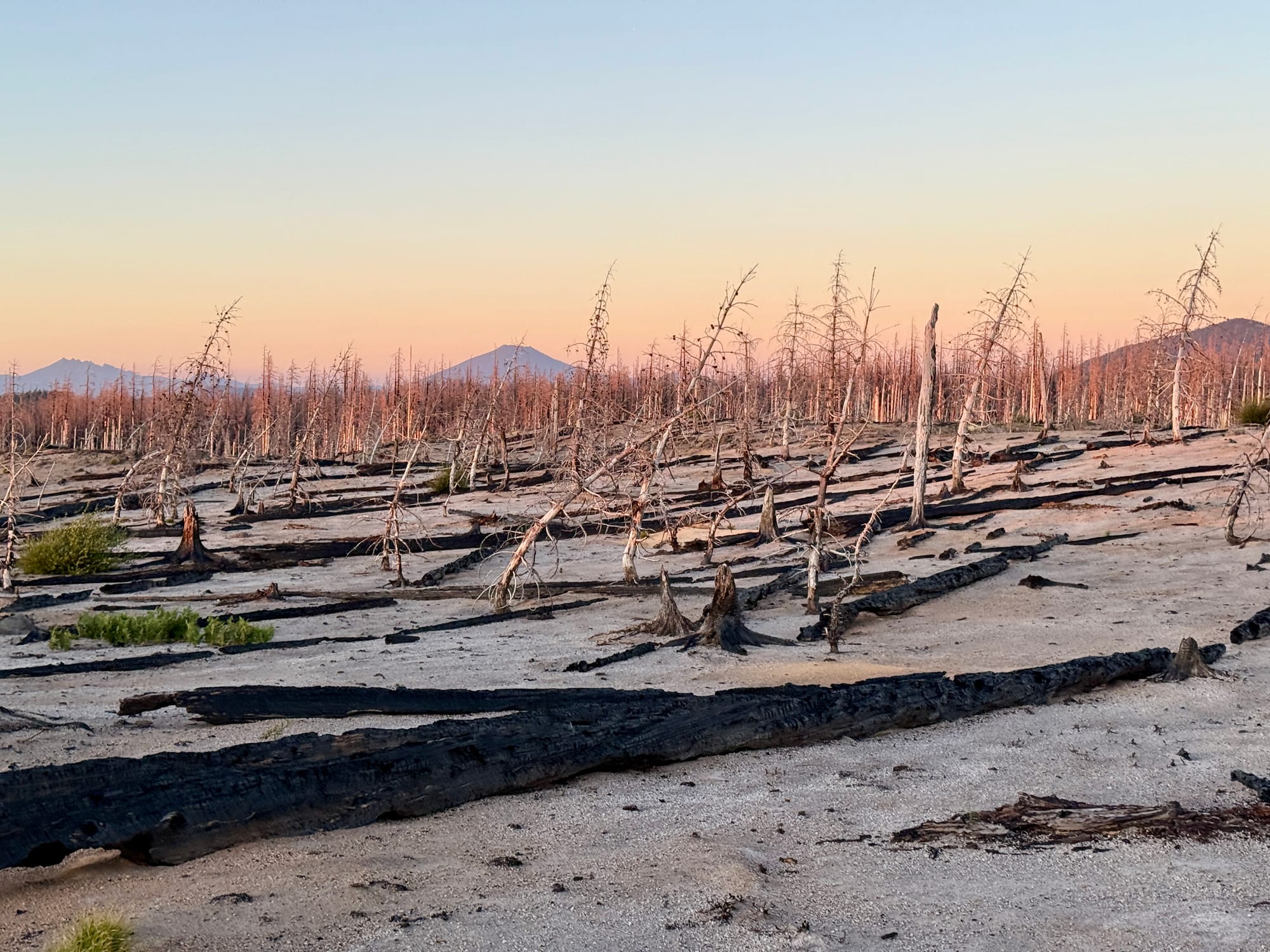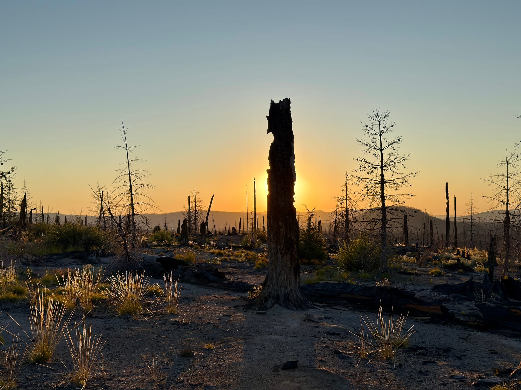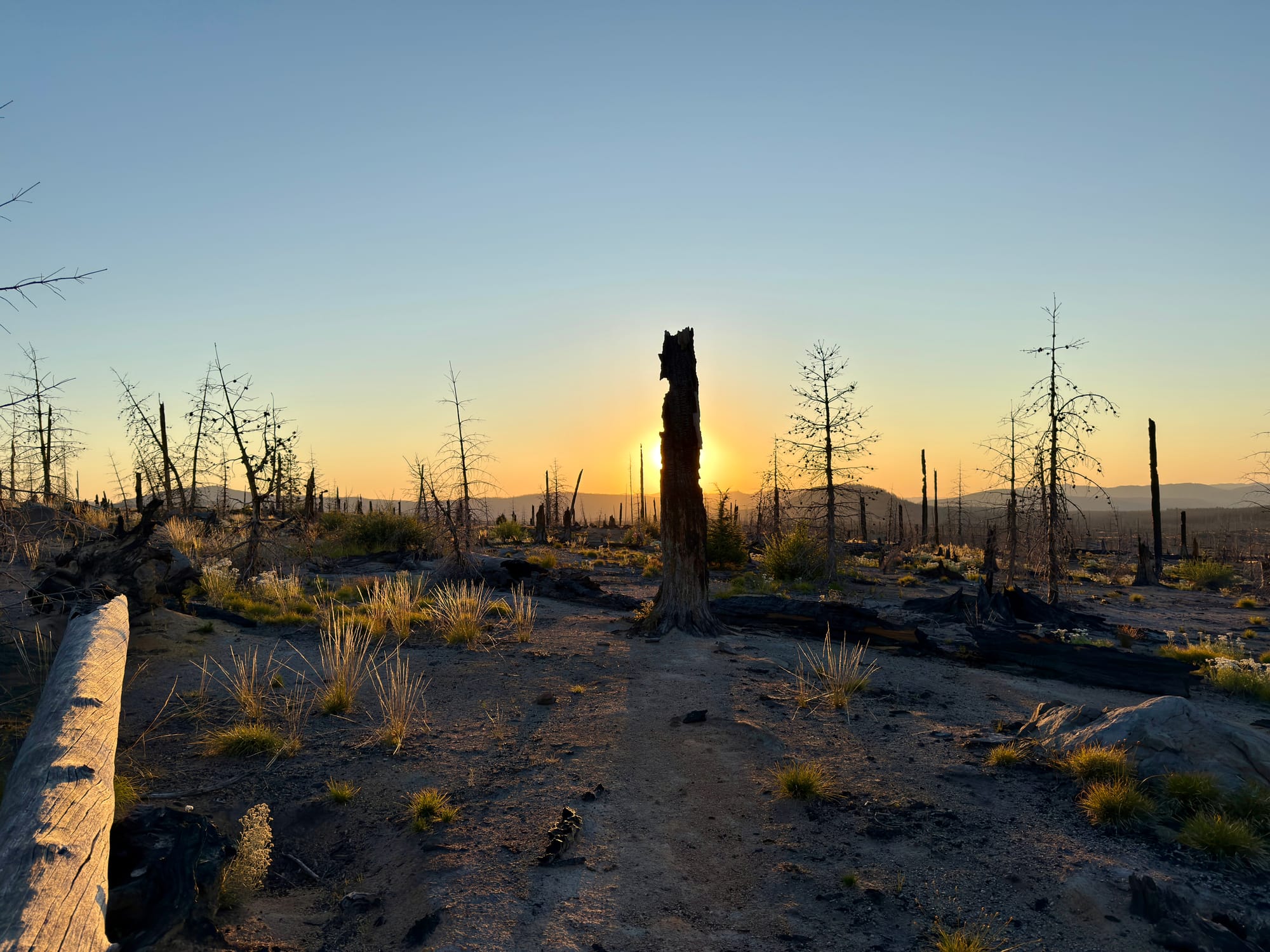 After a pretty flat walk through a forest to Charlton Lake, we set out to push 4-5 miles through a burned area while the sun was low in the sky. It turned out to be one of the most memorable evenings yet - Very Tim Burtonesque.