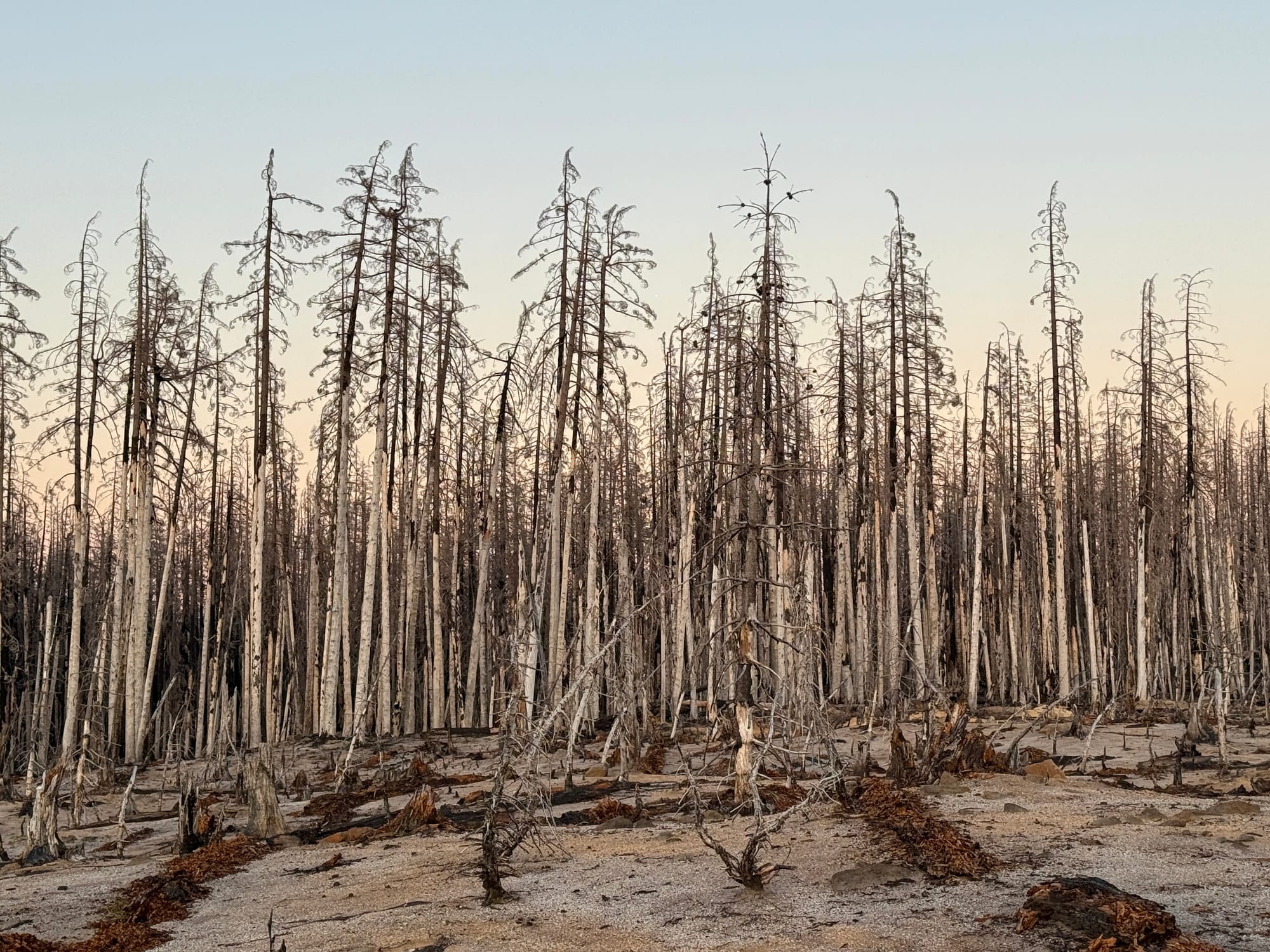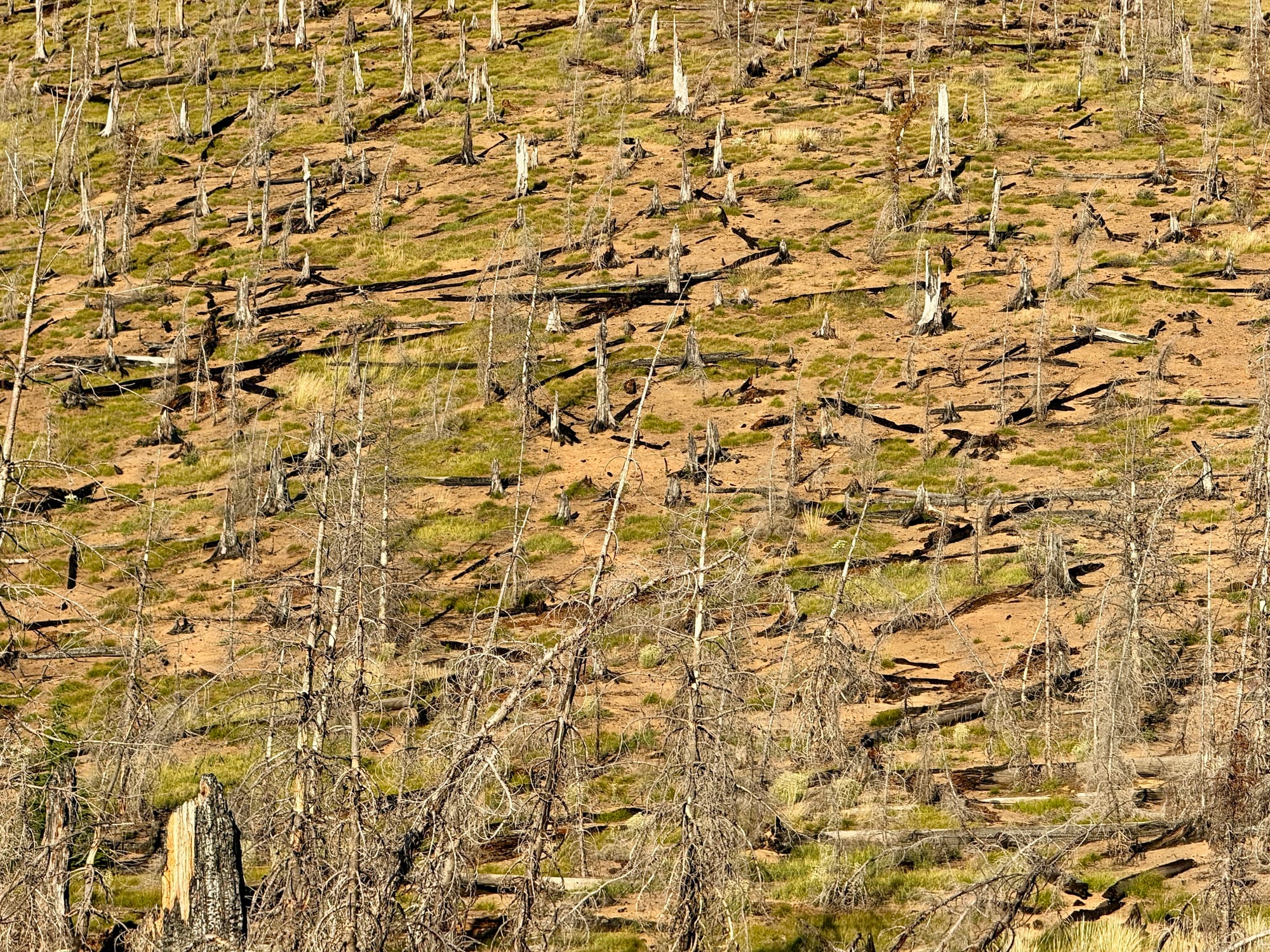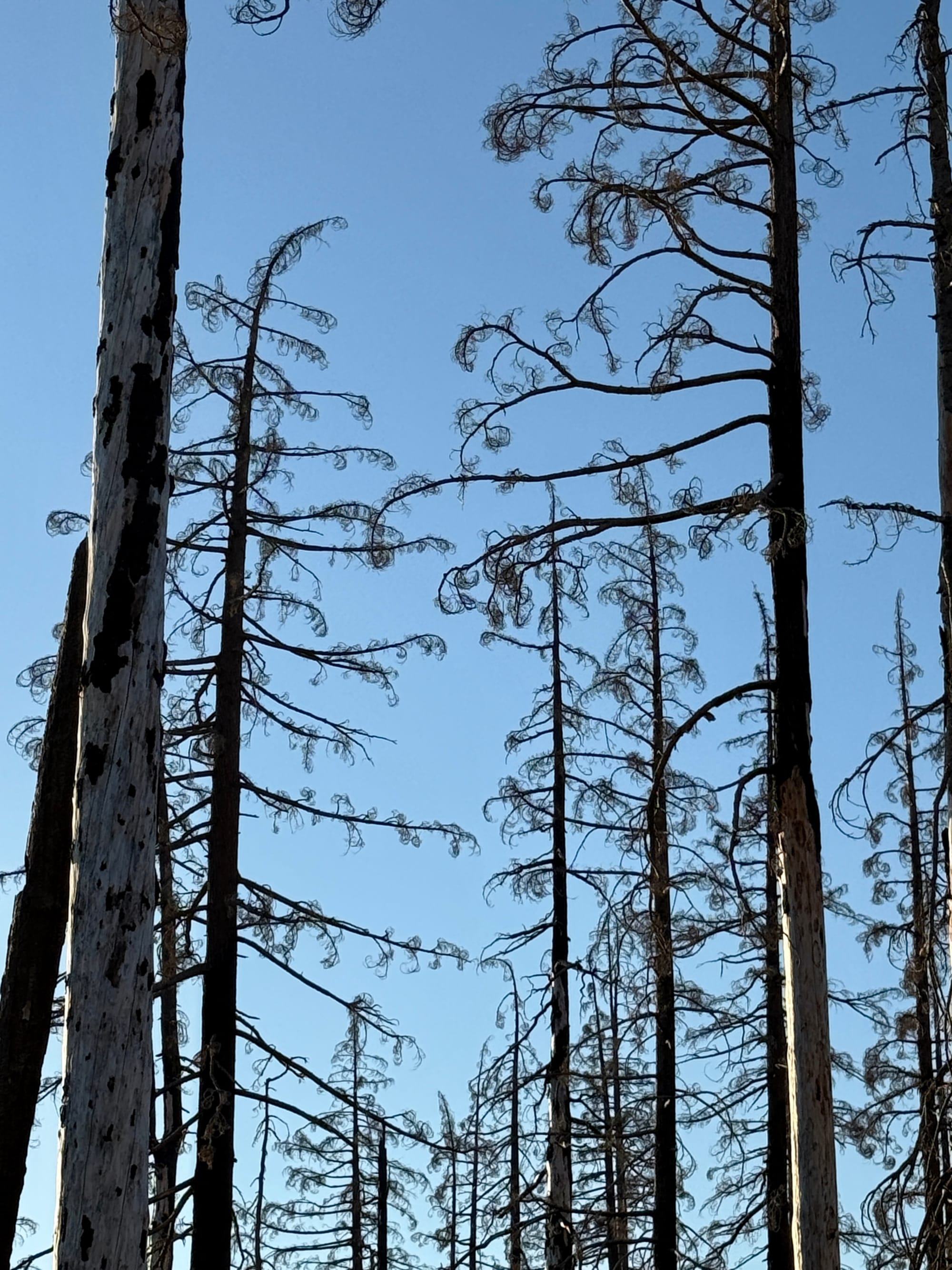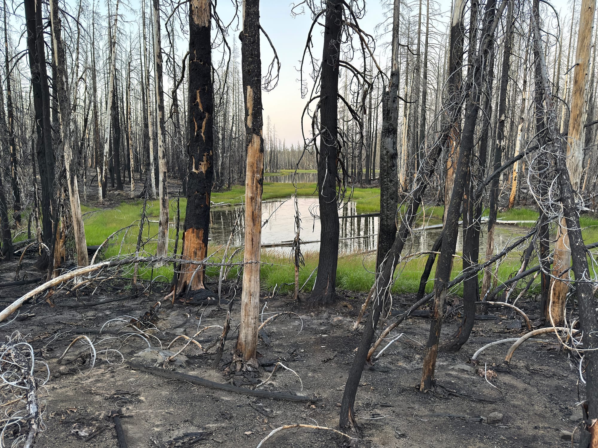 After a pretty flat walk through a forest to Charlton Lake, we set out to push 4-5 miles through a burned area while the sun was low in the sky. It turned out to be one of the most memorable evenings yet - Very Tim Burtonesque.