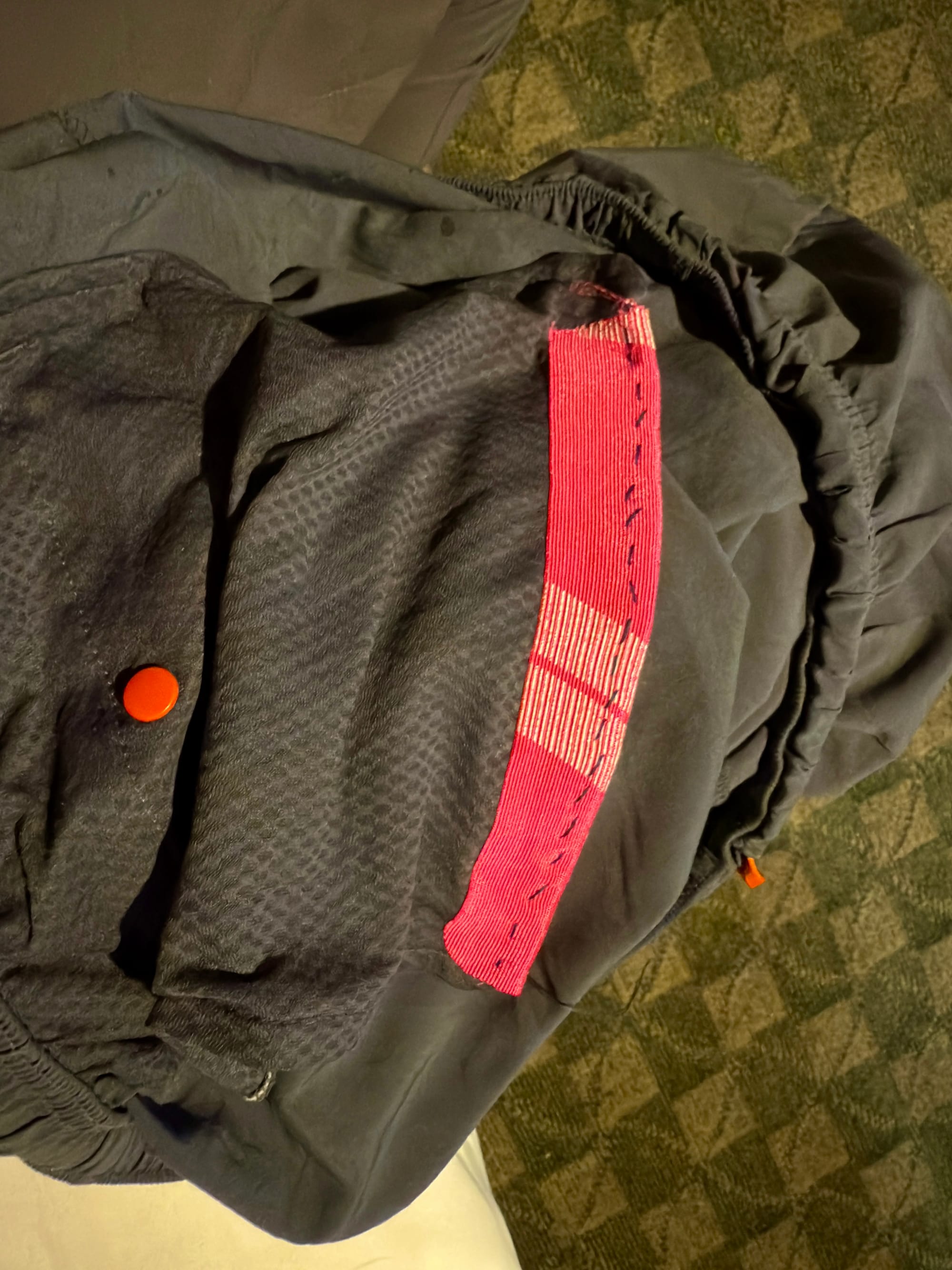 Kristin sewed up the one pocket of my shorts - which by default held my phone which would slip through the previous hole in my pocket if I put it in vertically.