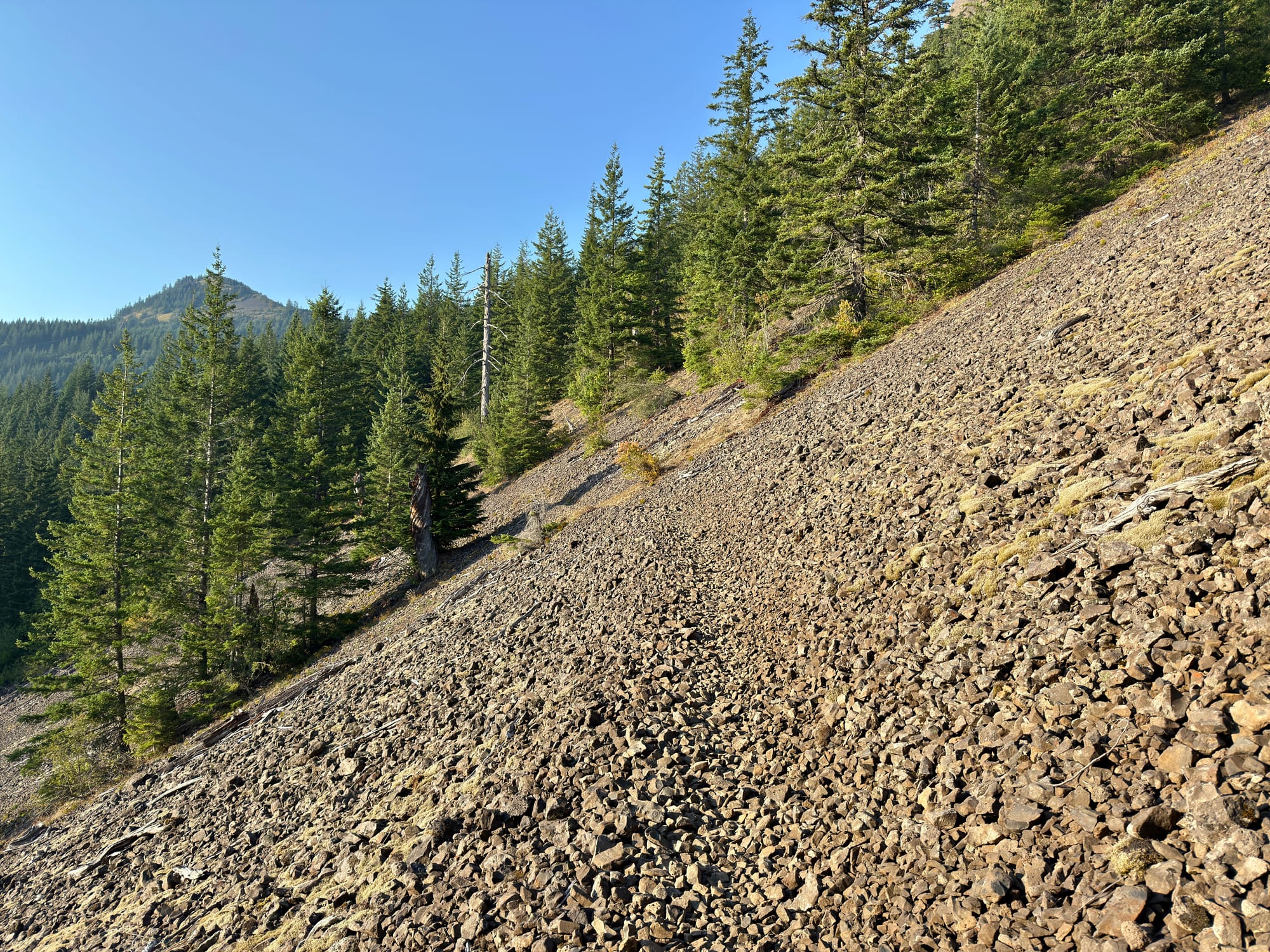 Somewhere through here we heard a bear breathing heavily in overgrown berry bushes. We assumed it was a bear because the only thing I’ve ever heard breathe that hard is an out of shape American, and there’s no way an out of shape American is hiking 3000 vertical feet in humid heat and eating berries to boot.