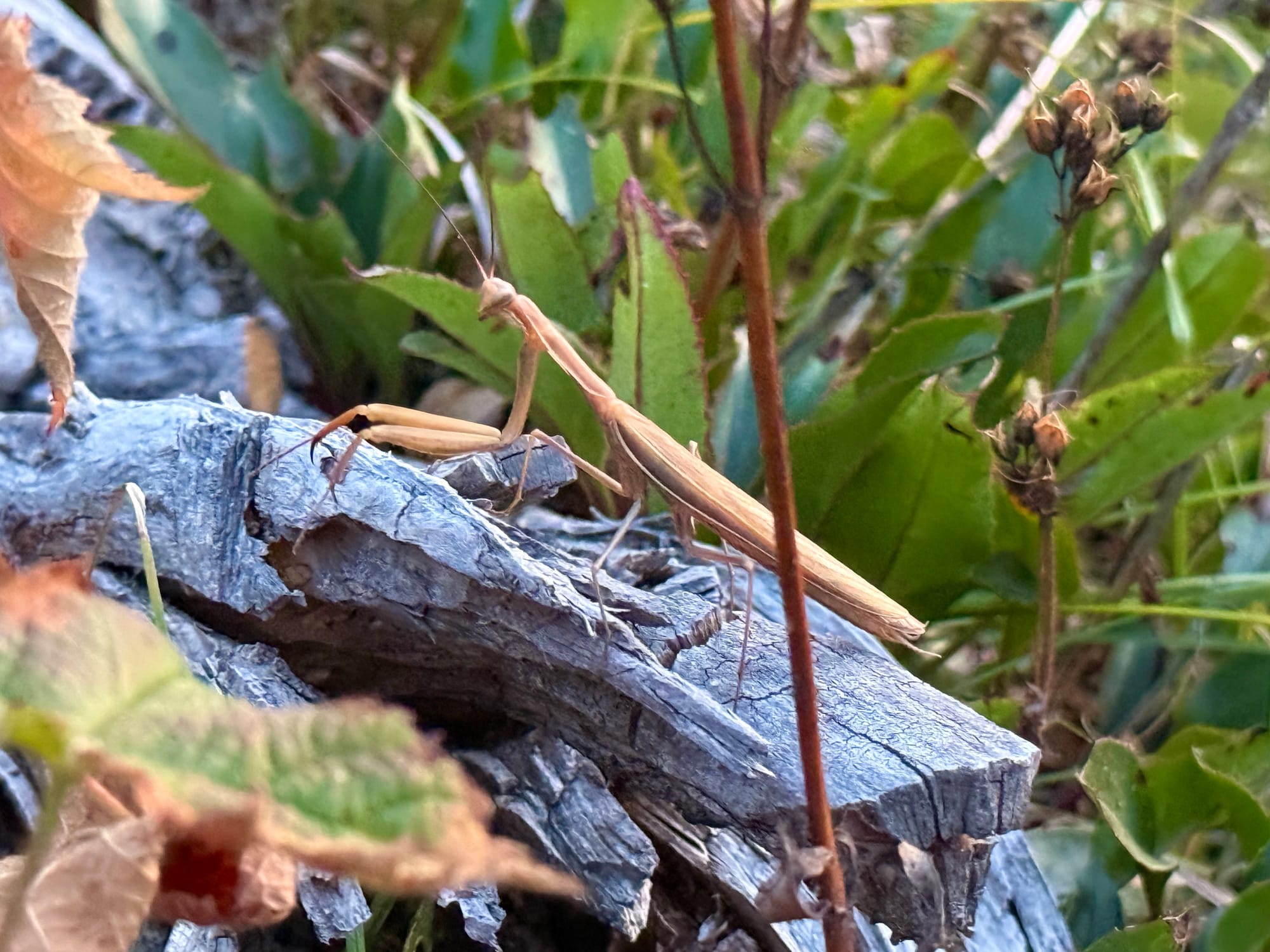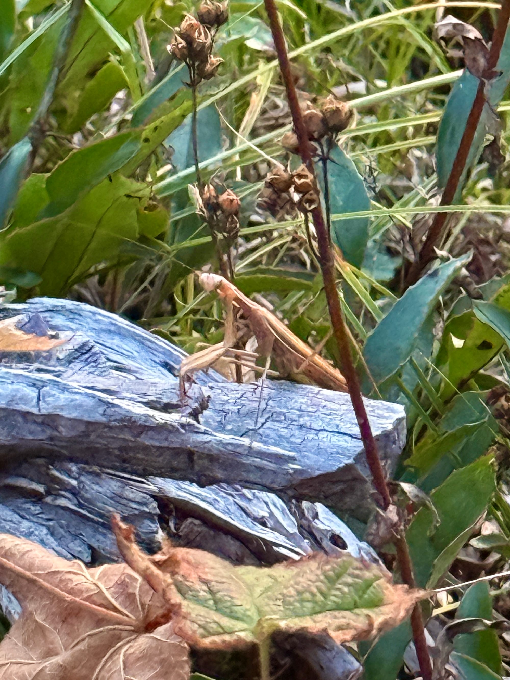 While watching the incredible sunset above, I swiped at an itch on my leg thinking I was brushing away grass. Kristin informed me that I flung a Praying Mantis off my leg and pointed this beautiful little girl out. You can tell it’s a girl by the gleam in her eye that says “I just bit my lover’s head off.” #girldinner